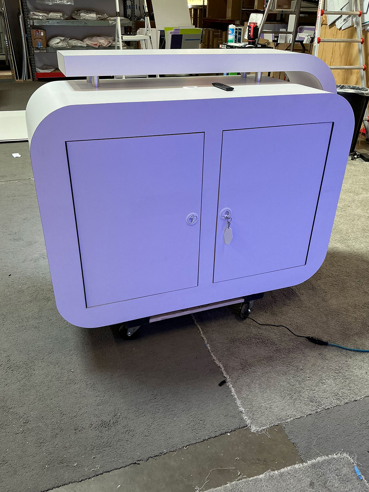 RENTAL: Custom Island Design with RE-1710 Gravitee Storage Closet at 42" Wide x 42" Deep x 95" High with Locking Door, (4) 55” Monitors, Gravitee Storage Tower at 96" Wide x 96" Deep x 142.5" High, with Locking Door, (2) RE-1600 White Laminated Counters RENTAL: Custom Island Design with RE-1710 Gravitee Storage Closet -- View 2 RENTAL: Custom Island Design with RE-1710 Gravitee Storage Closet -- View 3 RENTAL: Custom Island Design with RE-1710 Gravitee Storage Closet -- View 4 RENTAL: Custom Island Design with RE-1710 Gravitee Storage Closet -- View 5 RENTAL: Custom Island Design with RE-1710 Gravitee Storage Closet -- View 6 RENTAL: Custom Island Design with RE-1710 Gravitee Storage Closet -- View 7