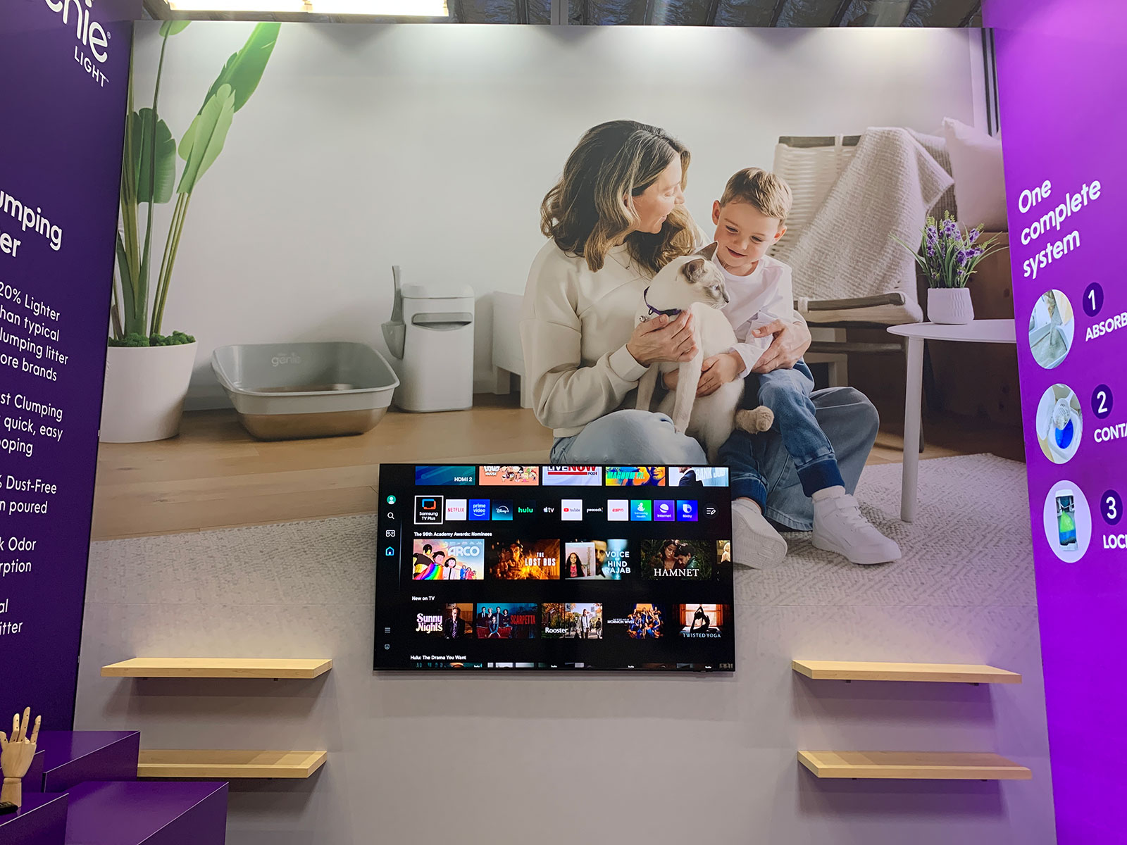 Modified VK-2400 Symphony Display with Curved Frames, SEG Fabric Graphics, (3) Shelves, Monitor Mount, SYM-407 Pedestal, SYM-407B Backwall Pedestal, and MOD-1717 Backlit Counter [ORD-70685]