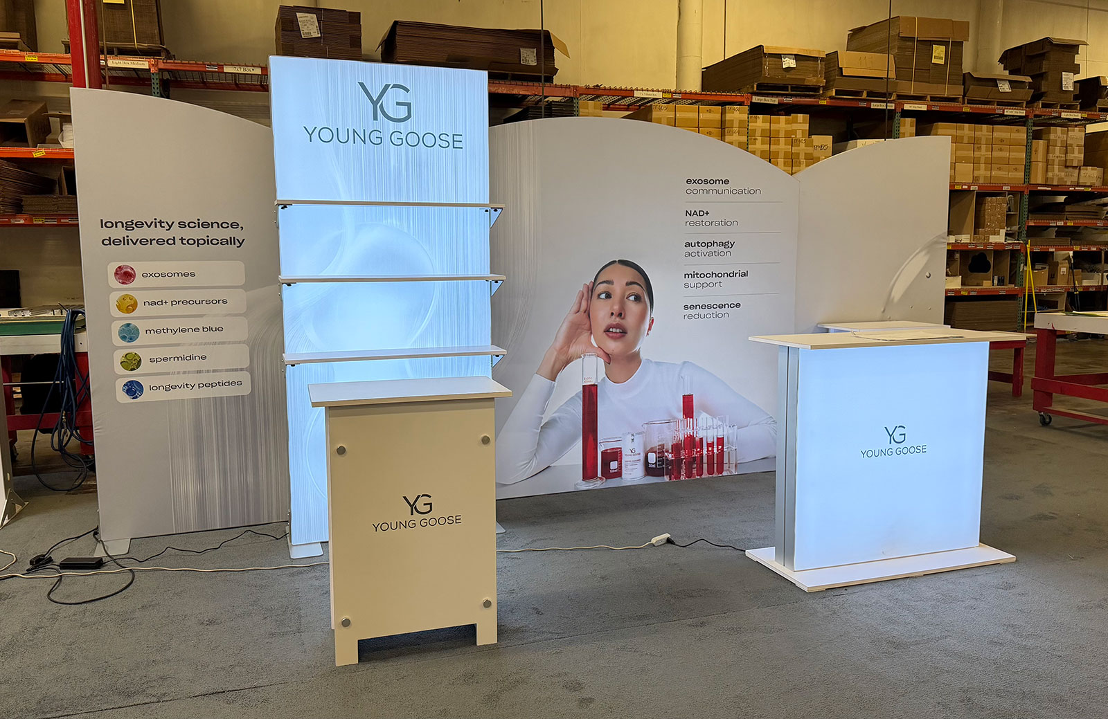 Modified VK-4028 SuperNova Lightbox with SEG Fabric Graphic and MOD-1716 Custom Counter with Backlit Graphic and Locking Storage [ORD-70449]