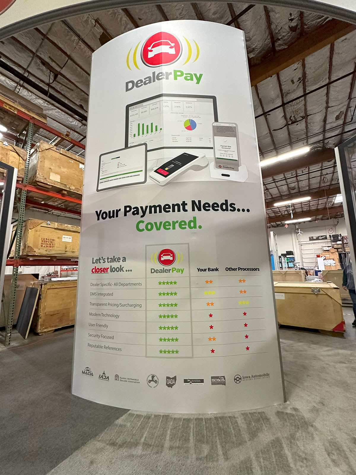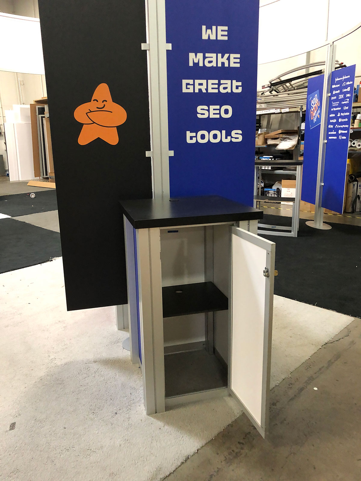 iPad Counter Stand, SEG Fabric Graphics, and Vinyl Applied