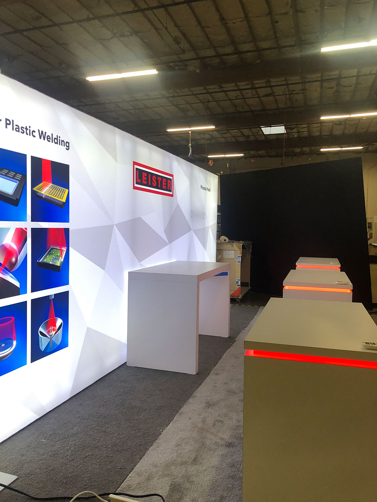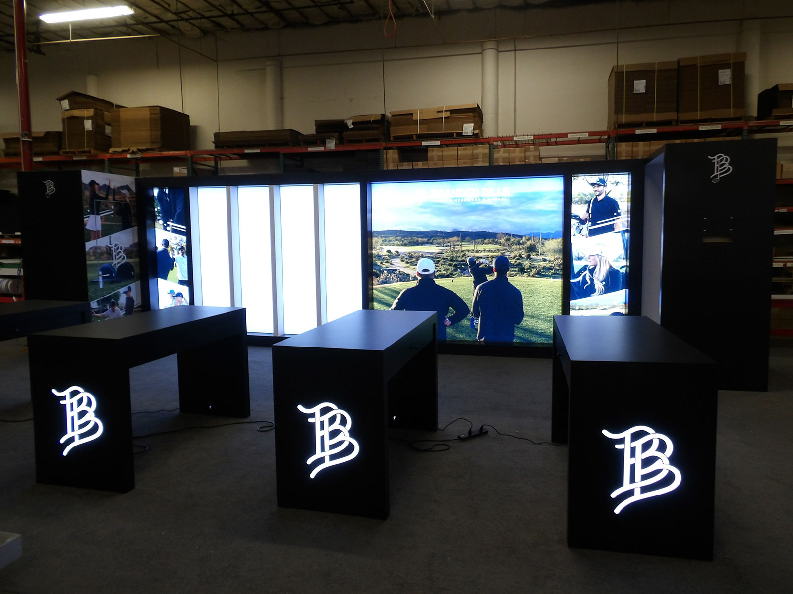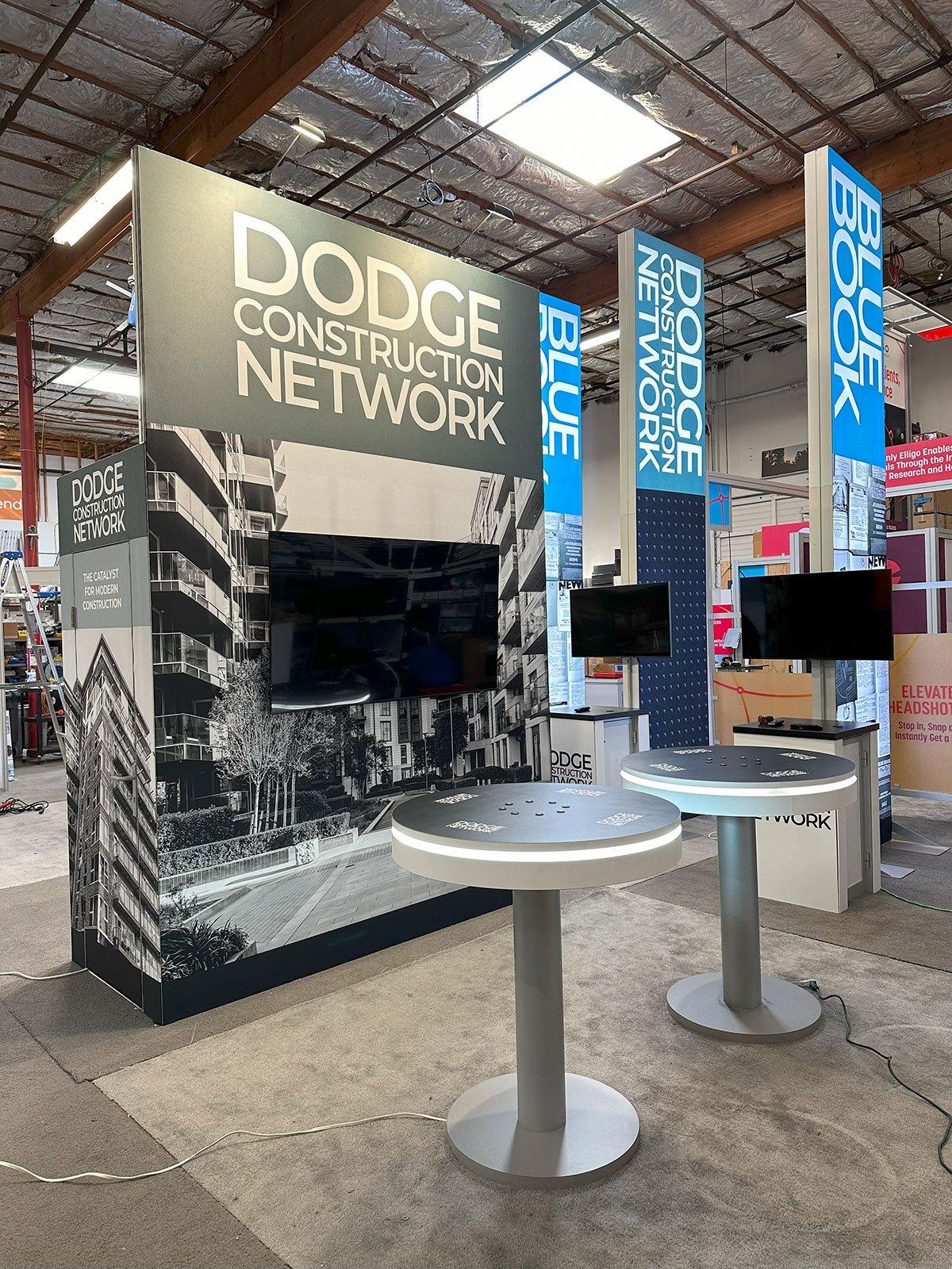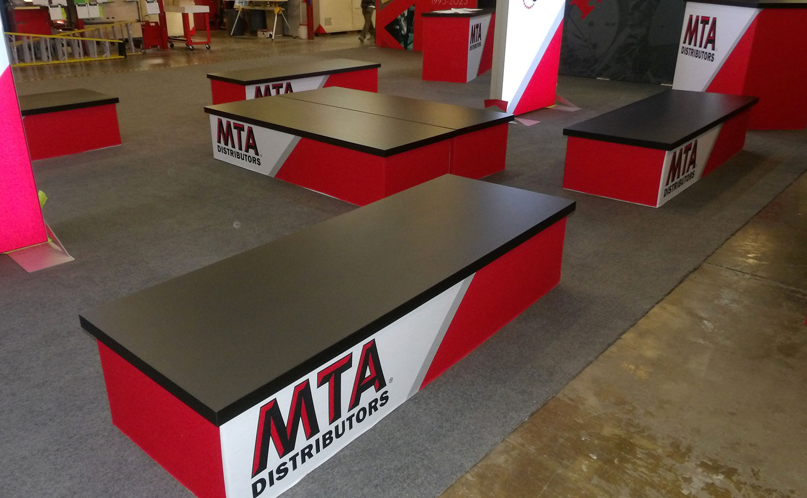 Station Tables, SEG Fabric Graphics, and Vinyl Applied Graphics
