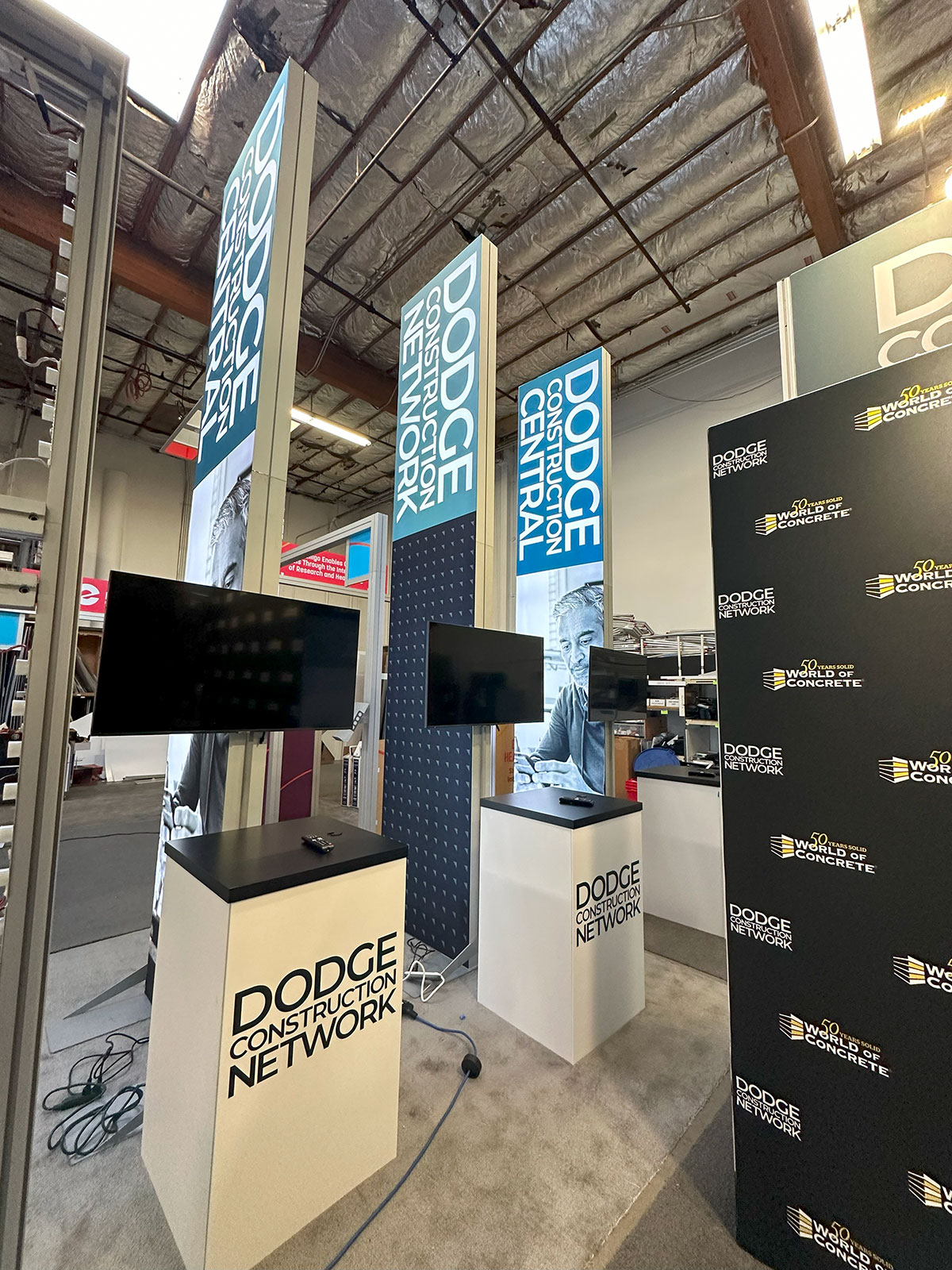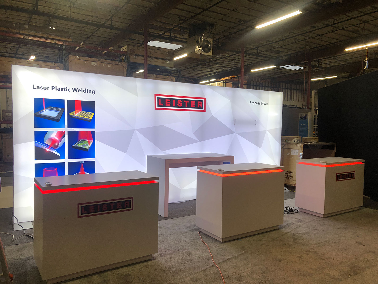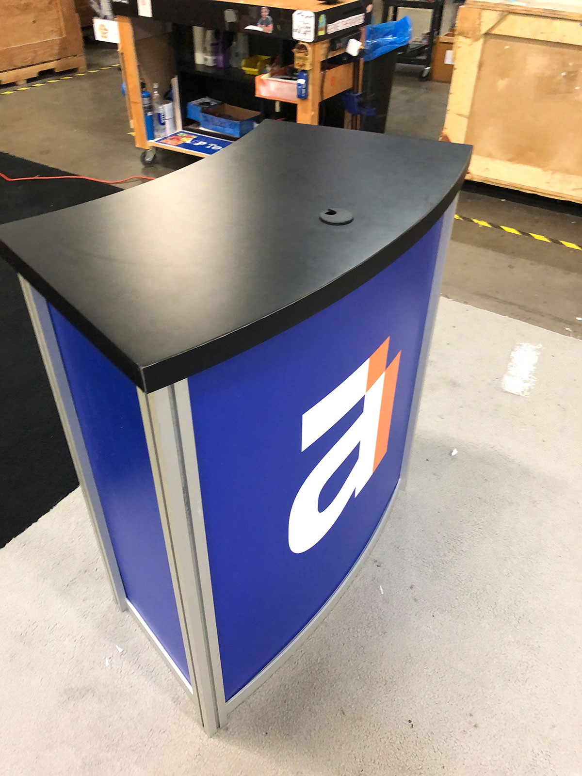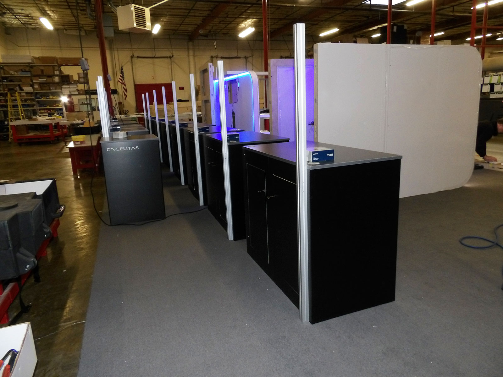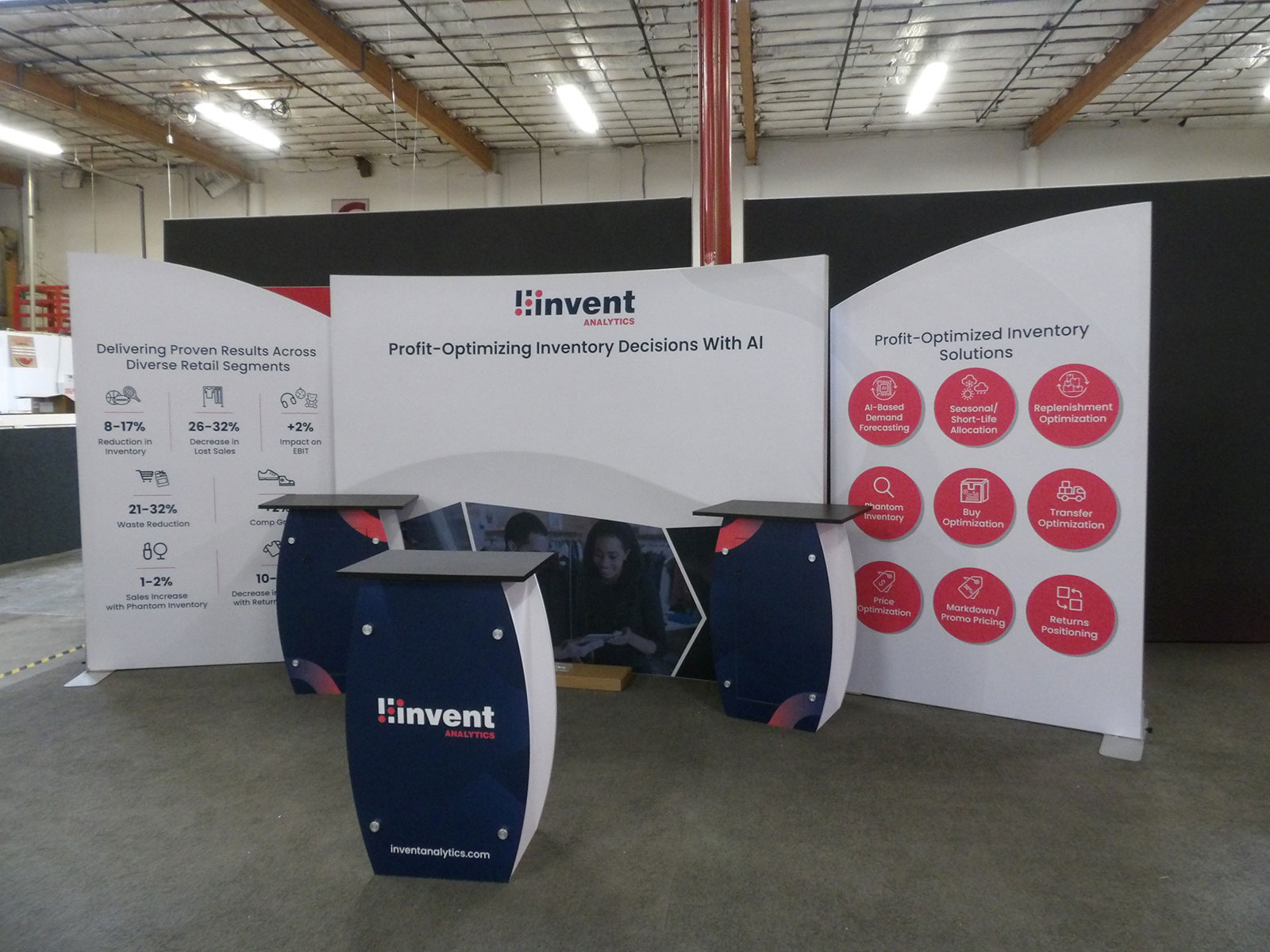 Station Tables, SEG Fabric Graphics, and Vinyl Applied Graphics