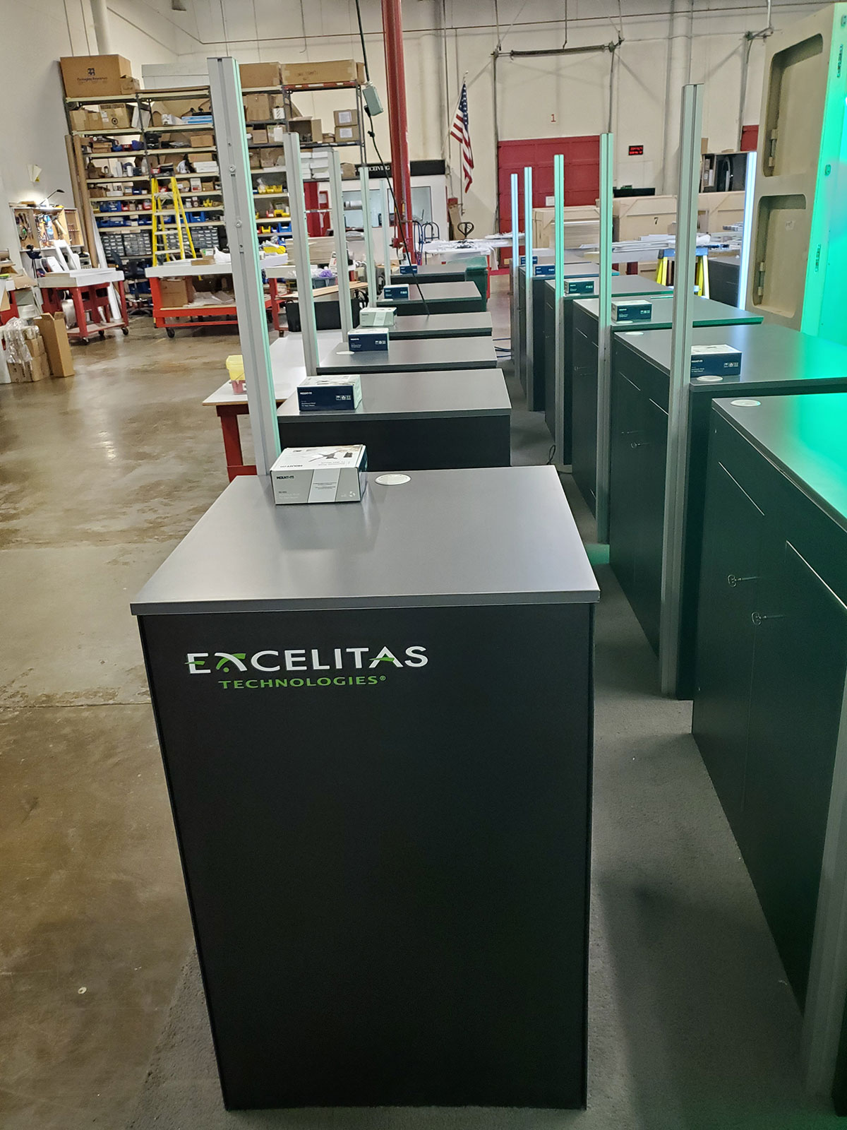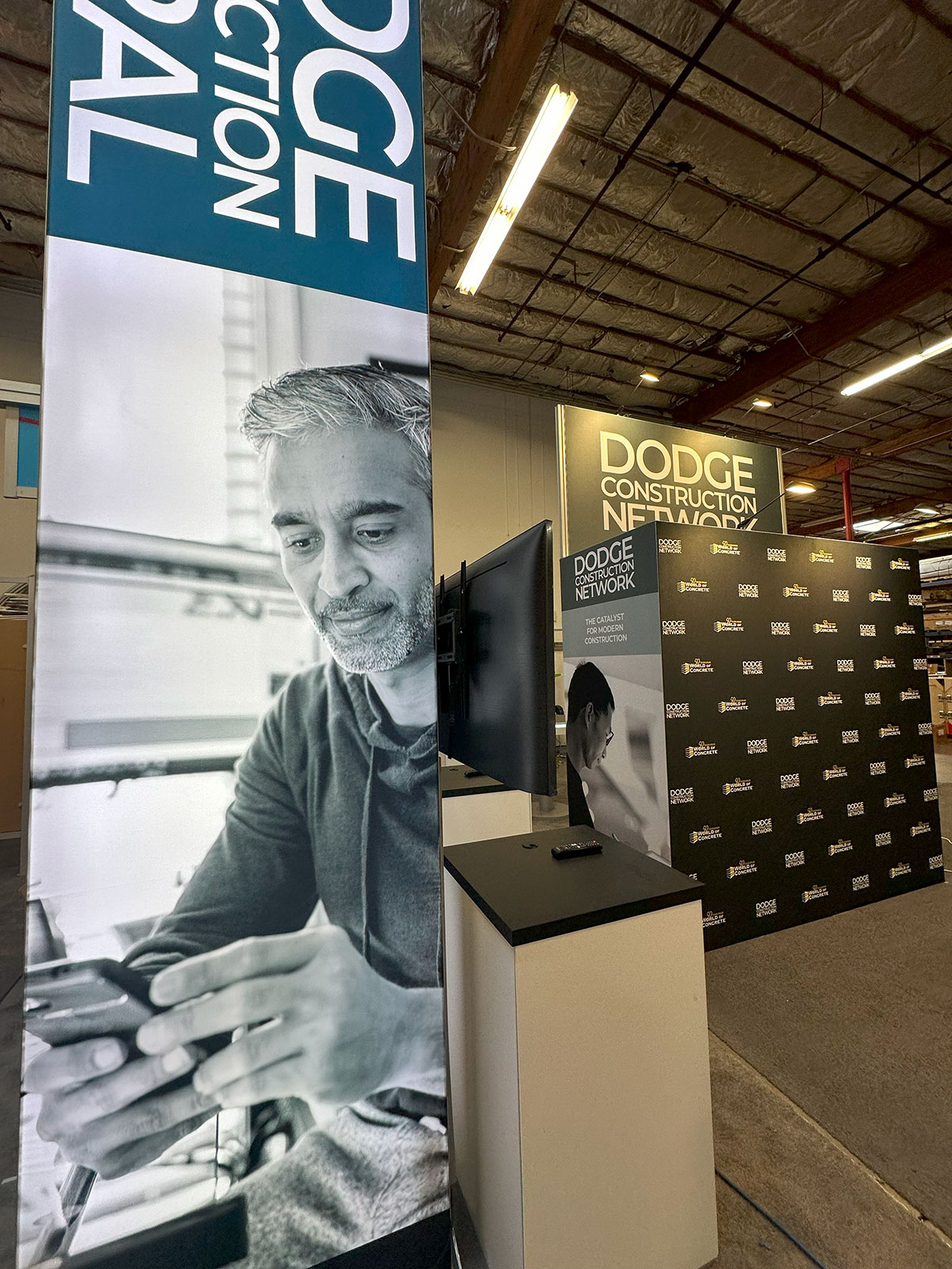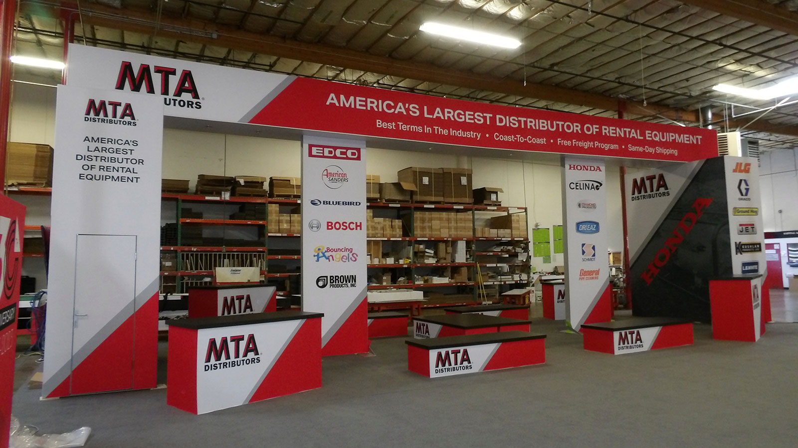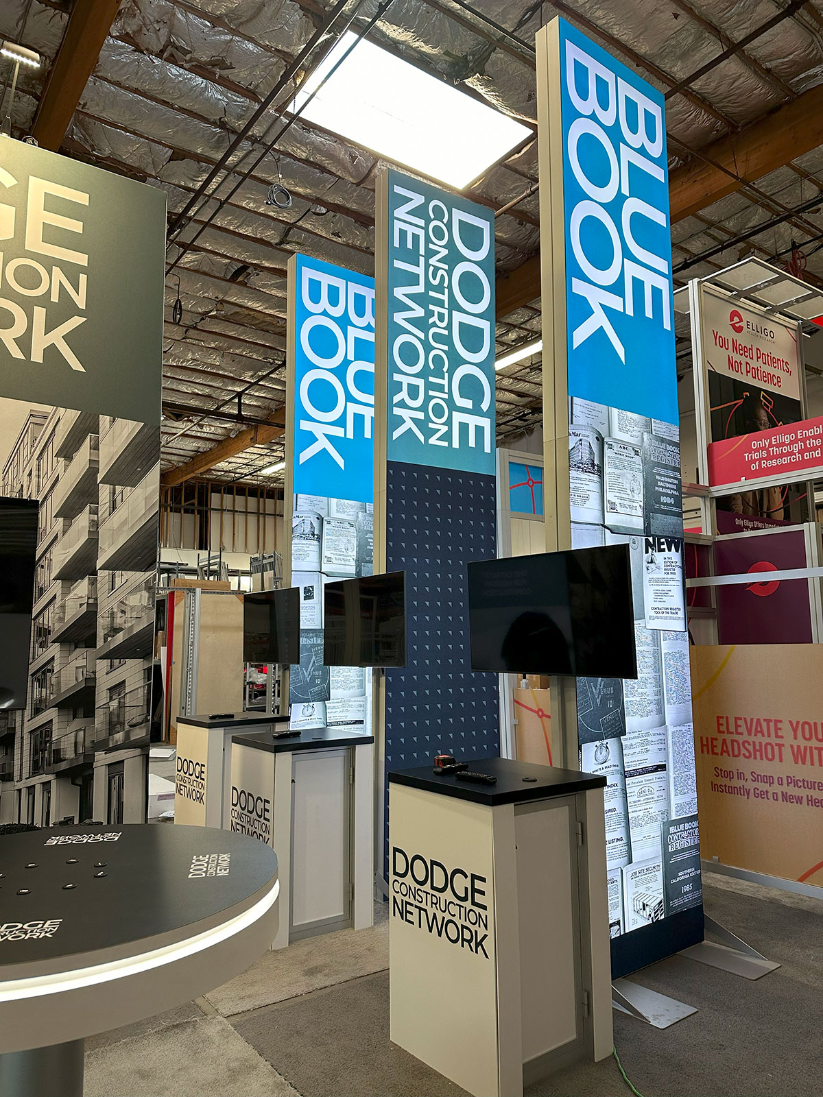 Station Tables, SEG Fabric Graphics, and Vinyl Applied Graphics
