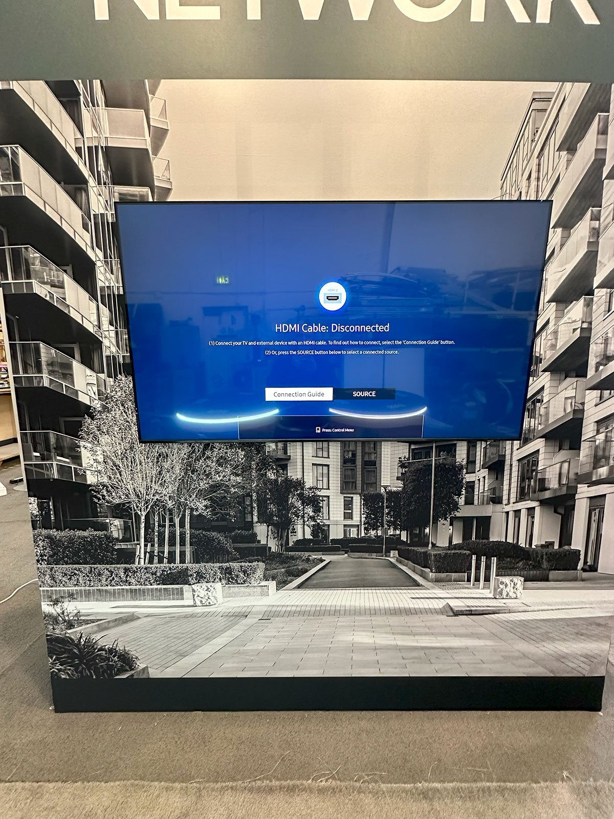 (4) Monitor Mounts, (3) 43" Monitors, (1) 65" Monitor, SEG Fabric