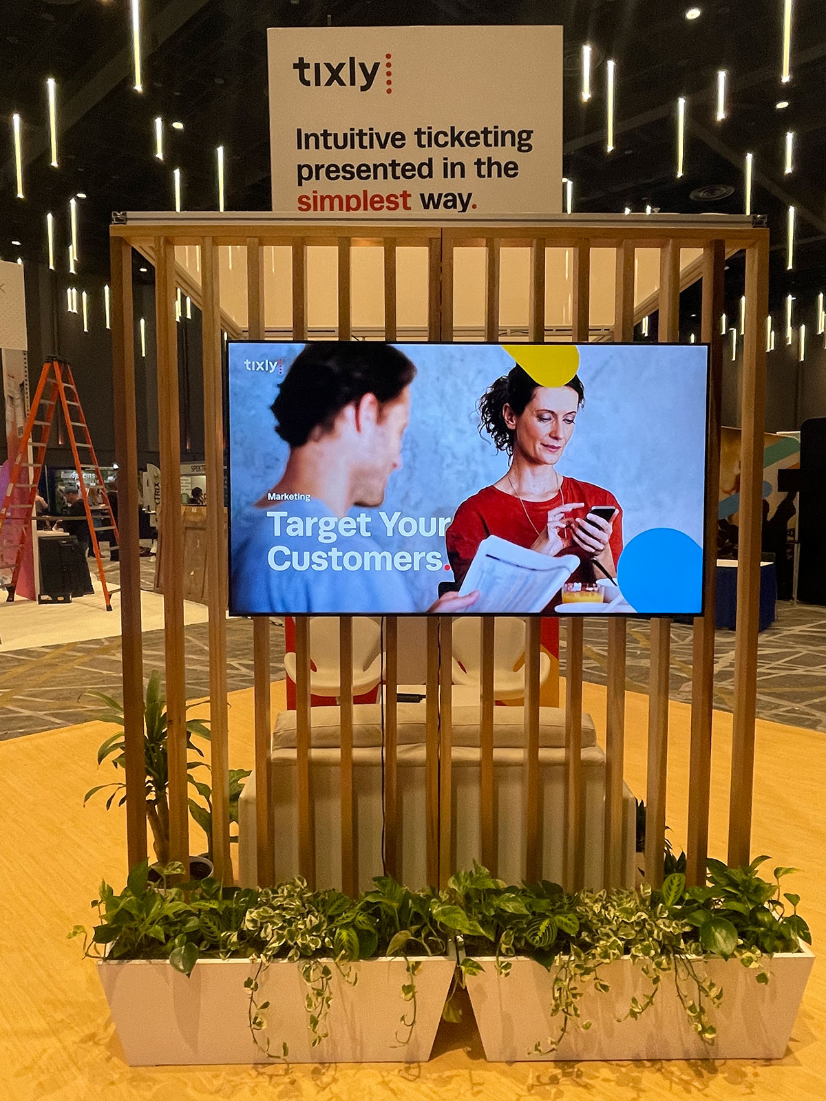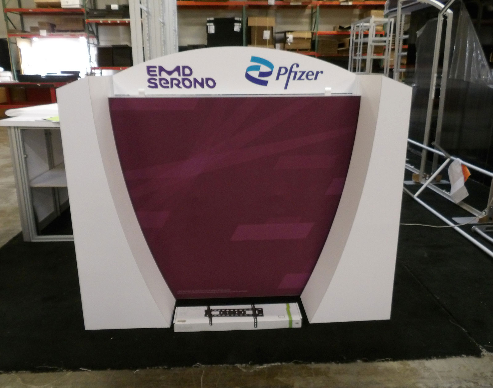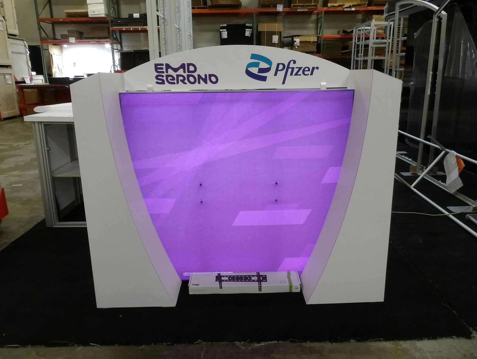 Exhibit with Fabric Graphics, LED Lights, Monitor Mount, and
