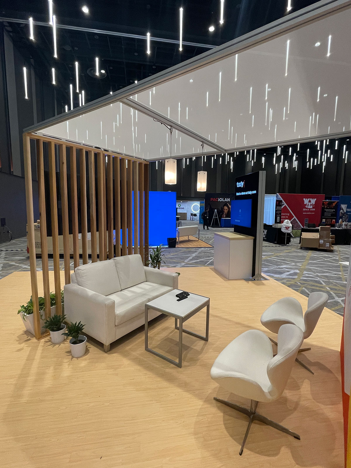 Custom 20 x 15 Island Exhibit with Curved Arches with Pillowcase