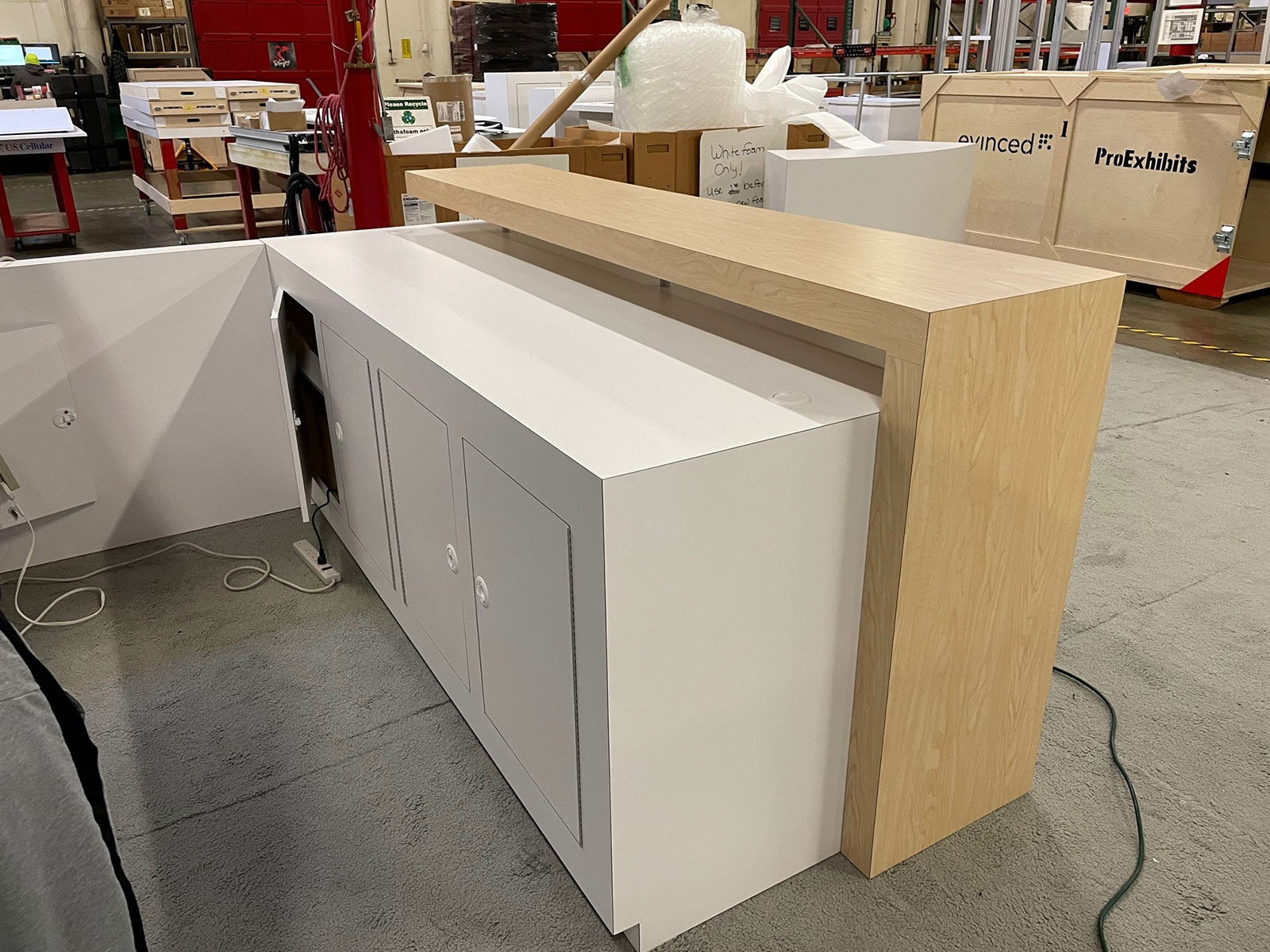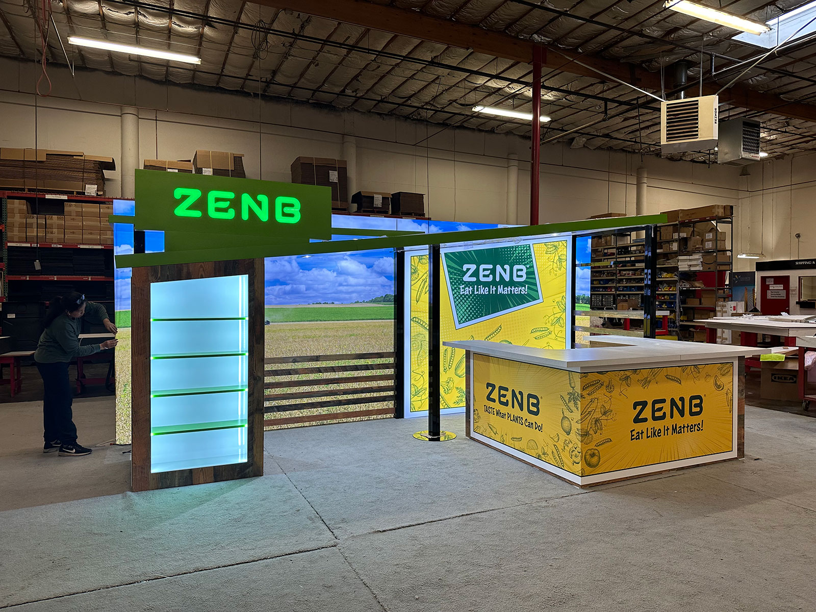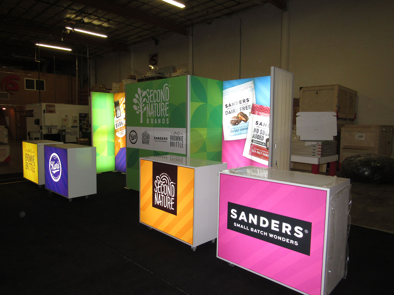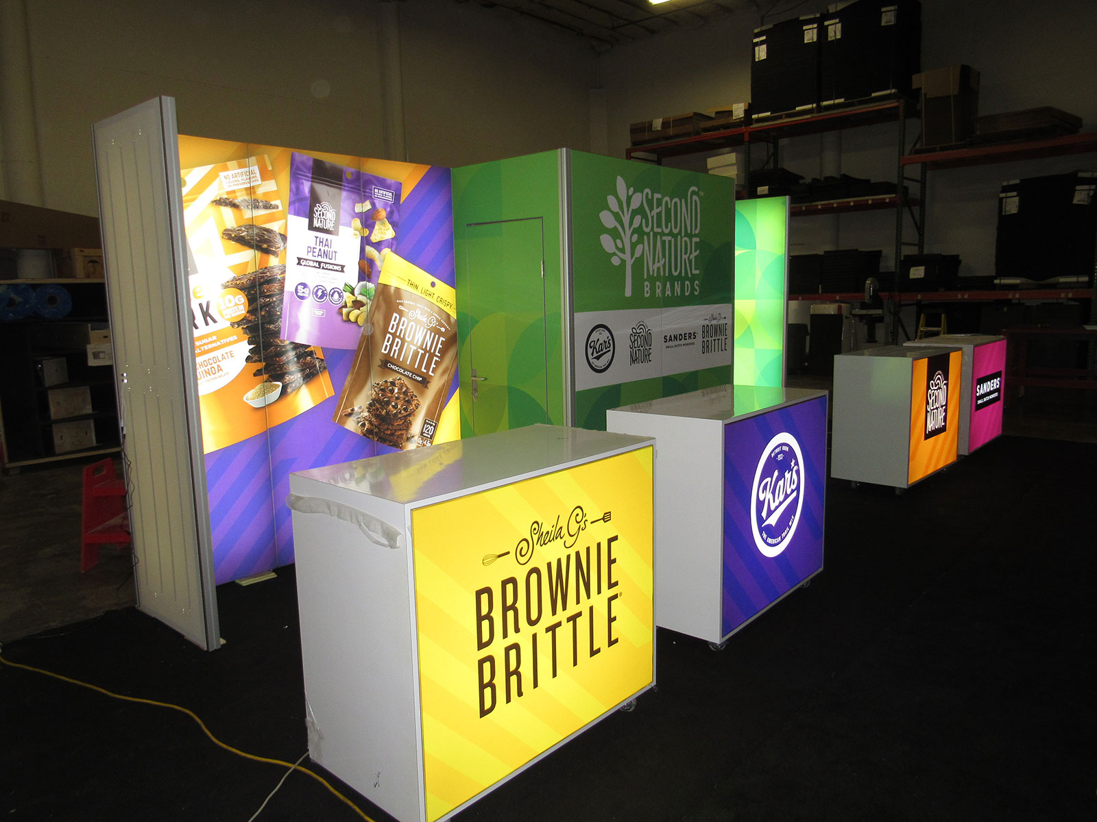 Custom Inline Exhibit with (2) LED Lightboxes, (6) Shelves,