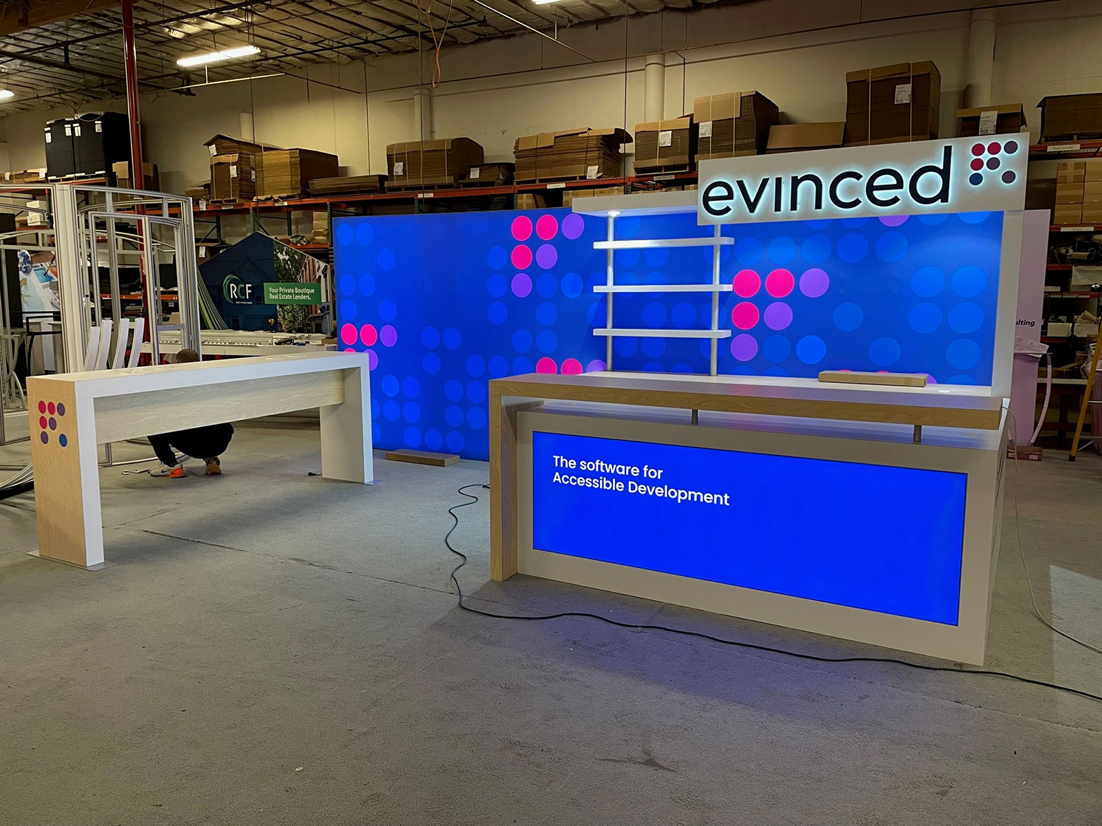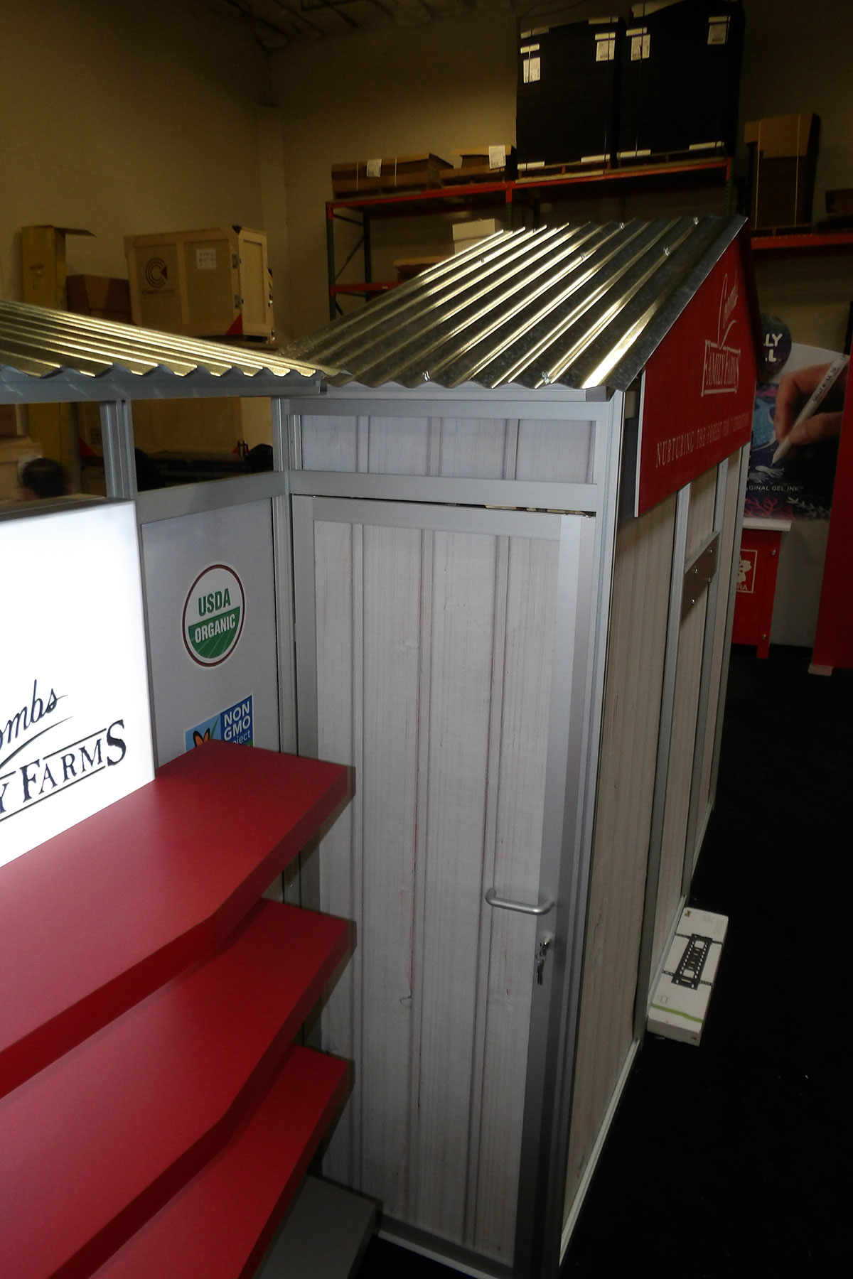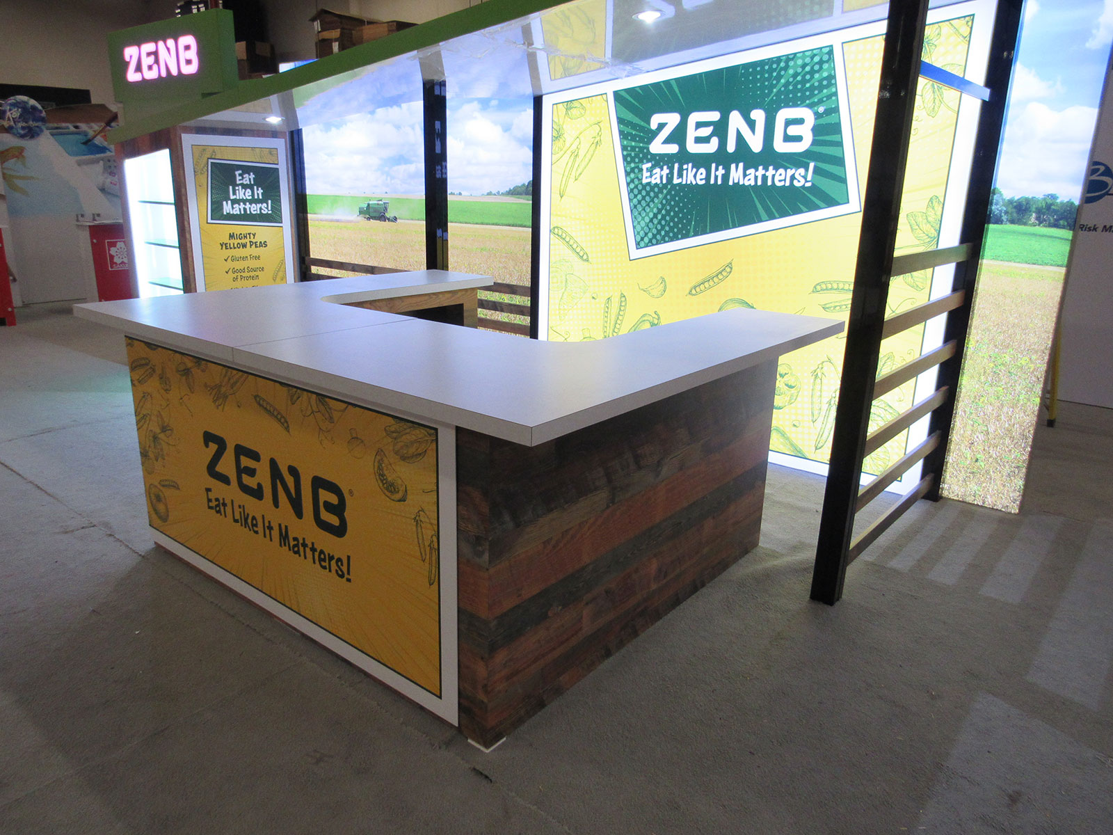 Custom Island Exhibit with Laminated Backlit Slatwall, Canopy,
