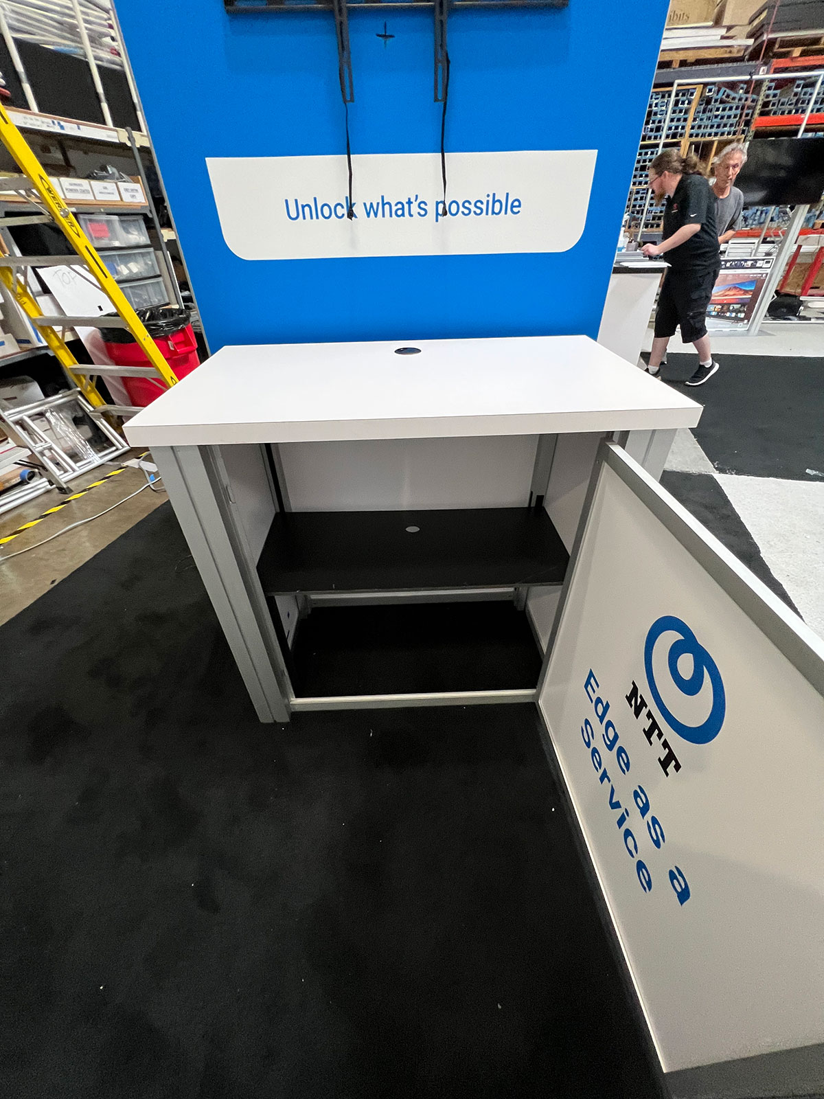 Backlit Graphics, Monitor Stand, L-shaped Counter, and MOD-1596 Counter