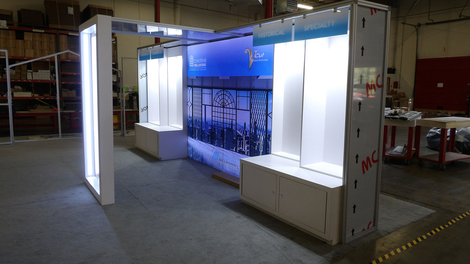Custom Inline Exhibit with Backlit LED Lightbox, Fabric