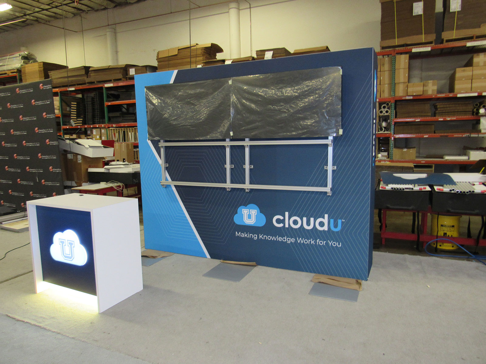 Modular Exhibit with Backlit Graphics, Storage Box, Monitor Mount,