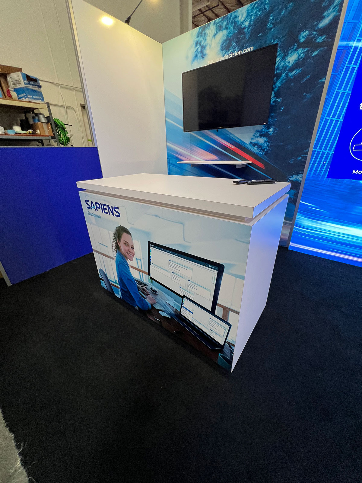 Laminated Workstation Counter, SEG Fabric Graphics, and Direct