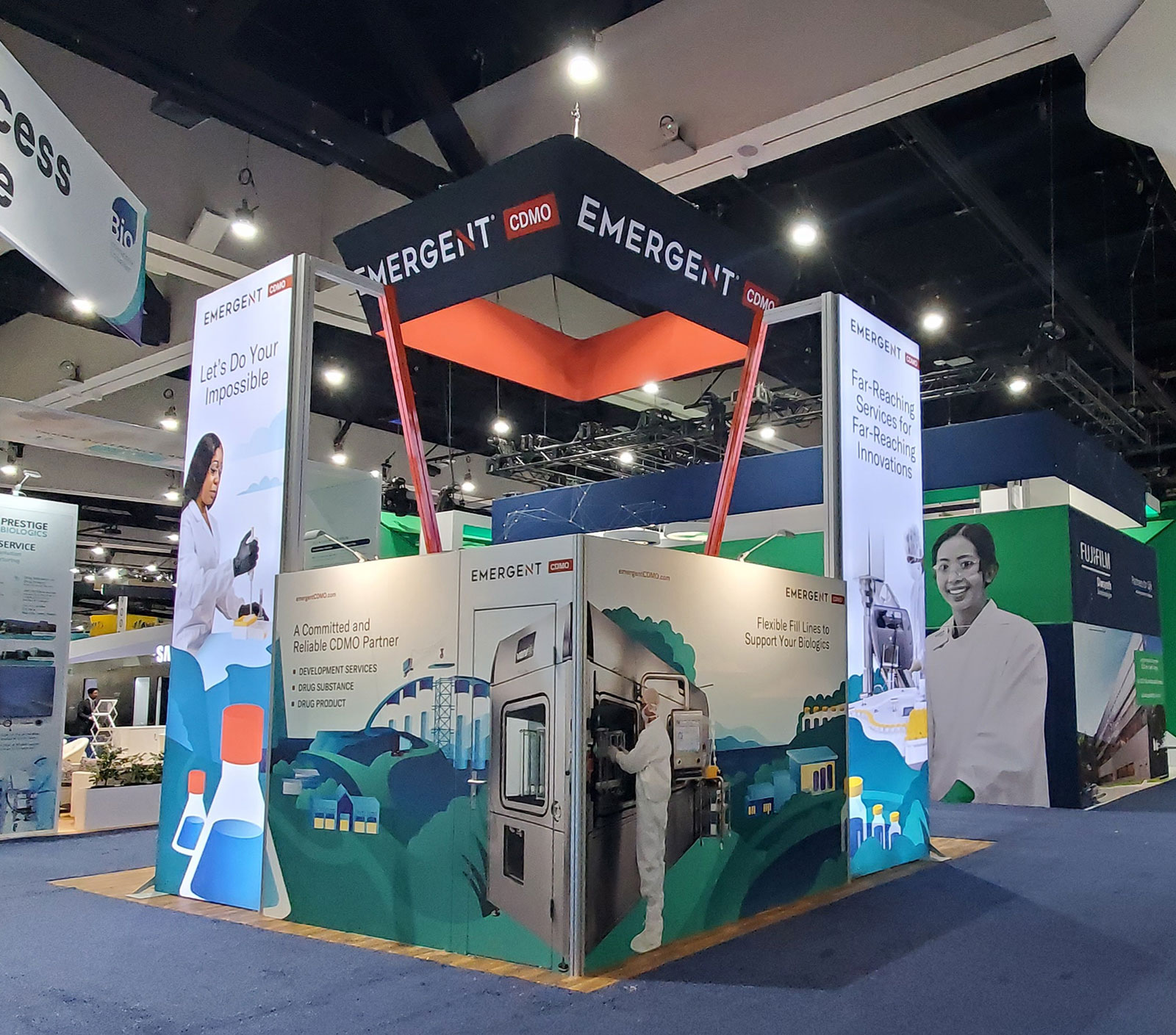 Custom Inline Exhibit with Large LED Lightbox, Expansive Arch