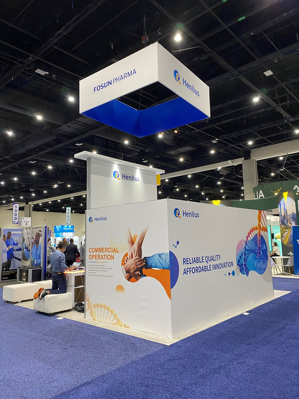 Island Exhibit with Modular Conference Room Walls, Modified