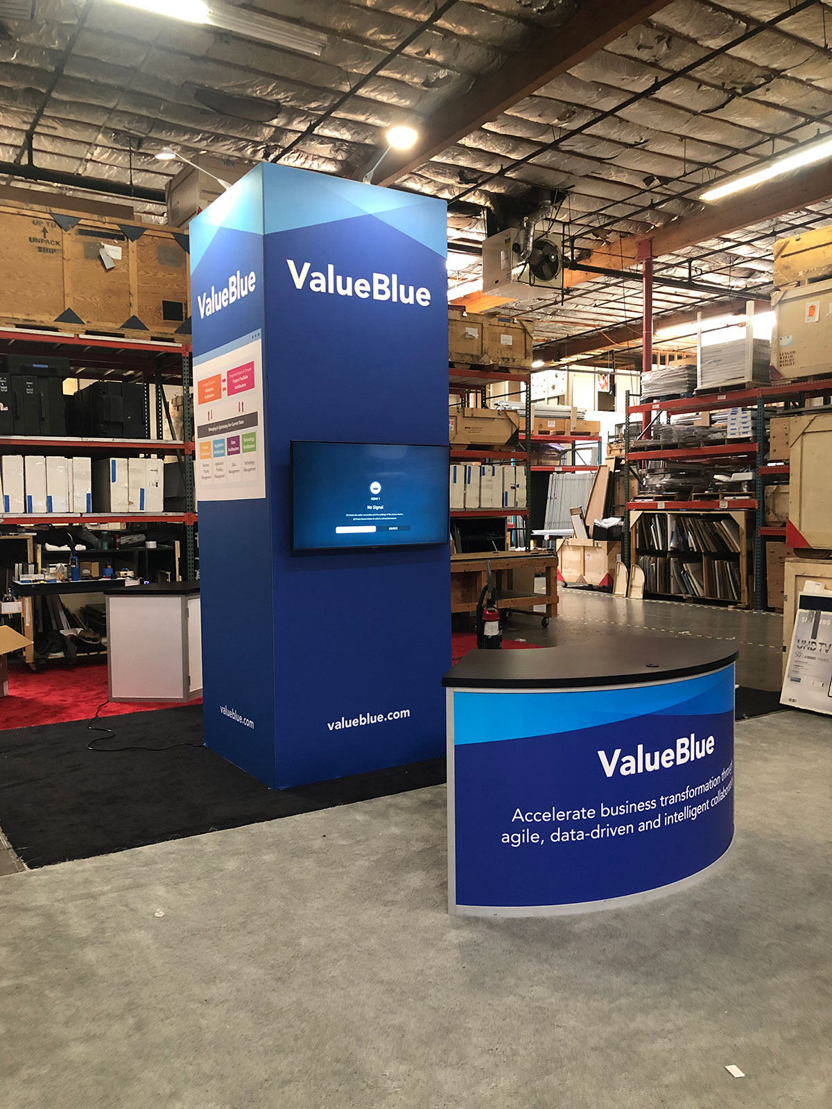 Inline Exhibit with Backlit Fabric Graphics, Monitor Mount, and