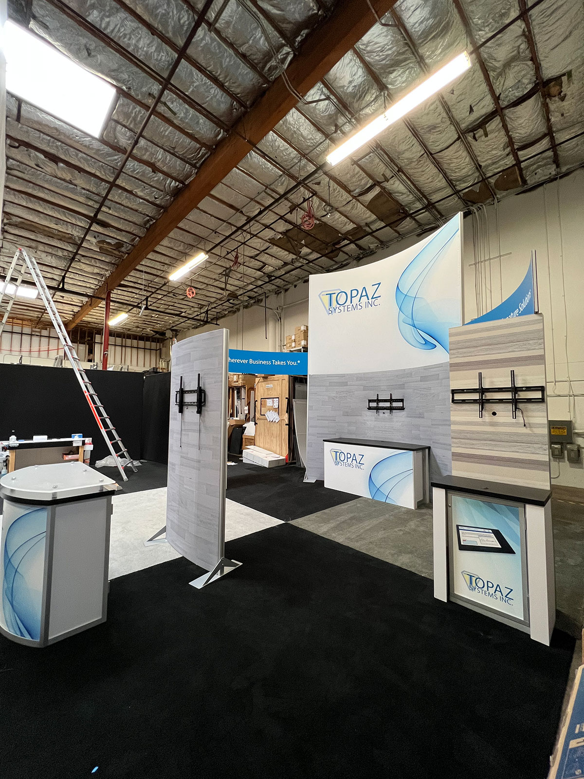 Custom Island Exhibit with Extensive Backlit Graphics, Layered