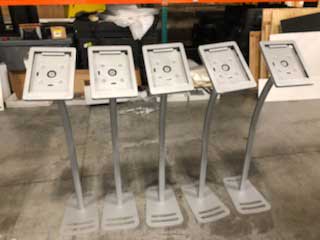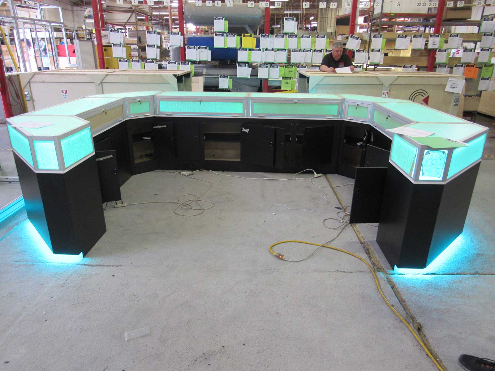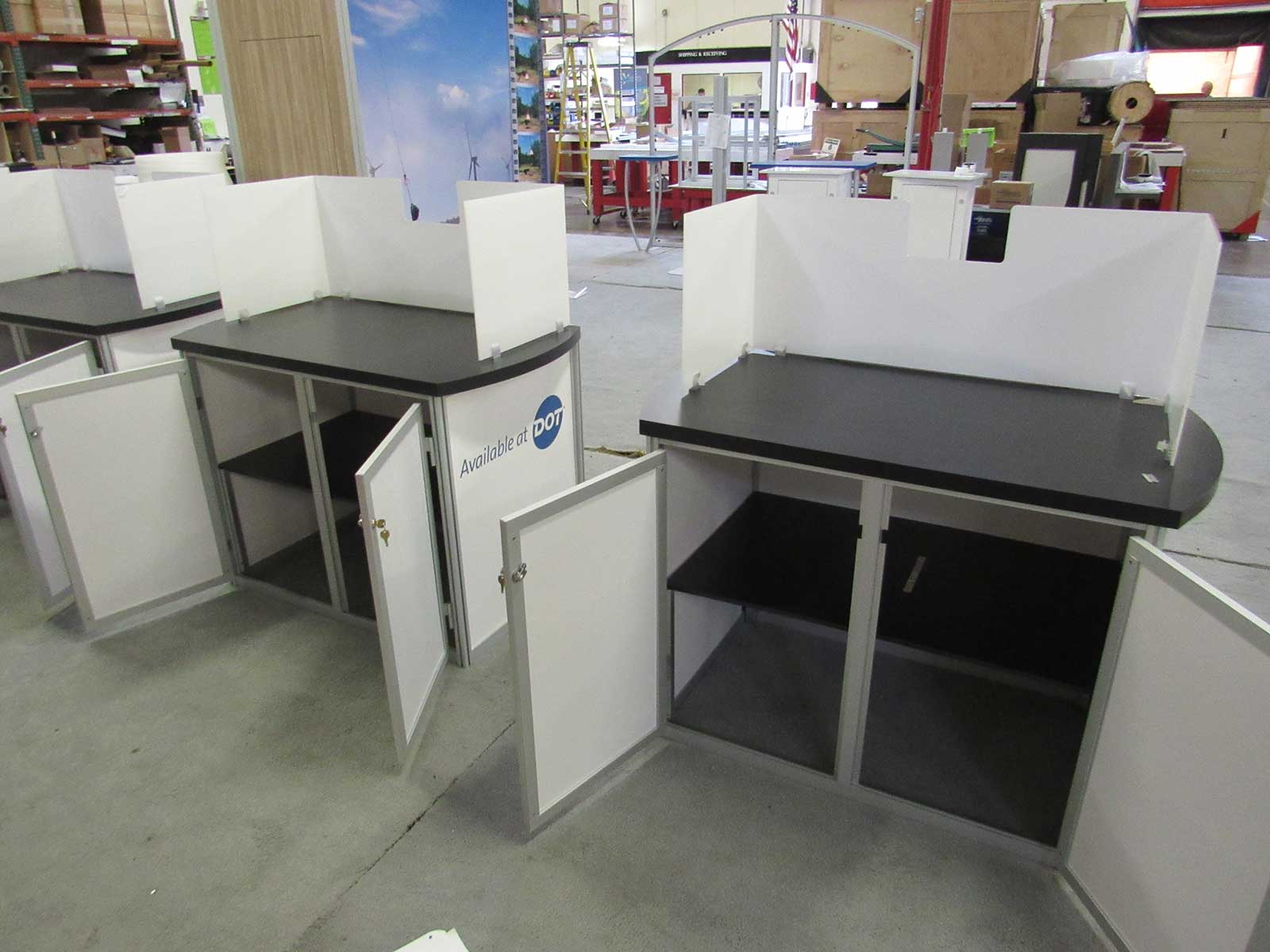 Stands, (4) RE-1568 Backlit Counters, (3) MOD-1226 Workstation Kiosks,