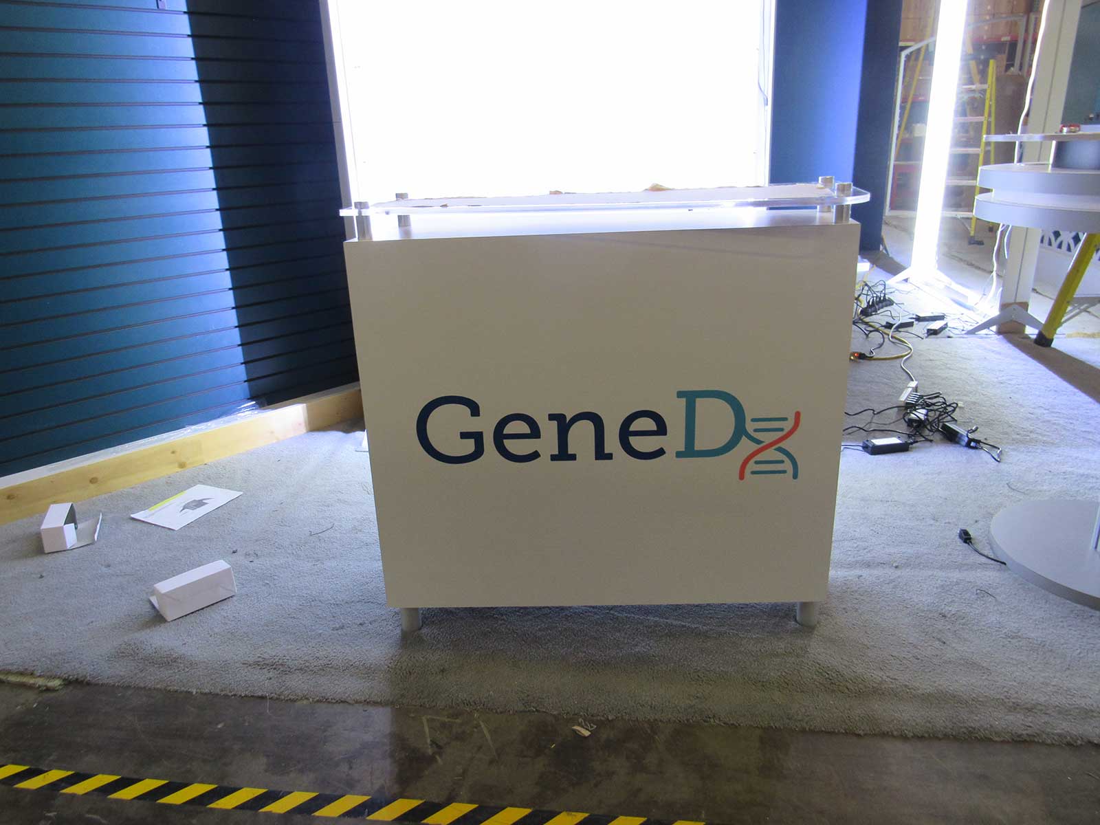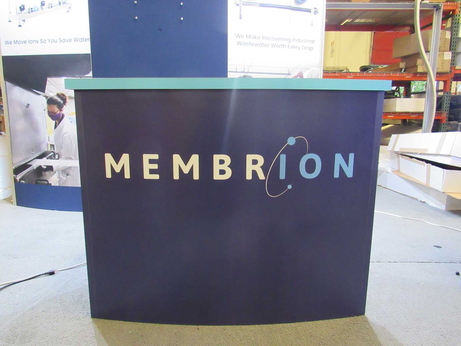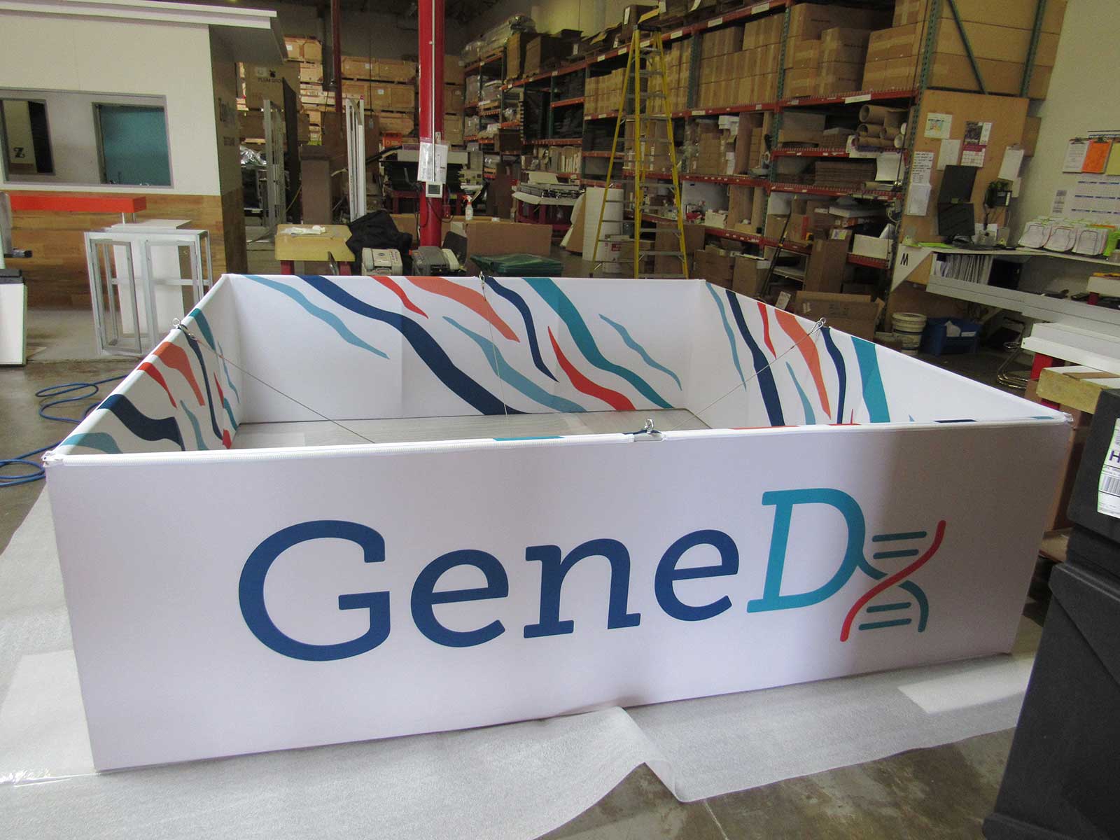 Tapered Counter Kiosk, SEG Fabric Graphics, Vinyl Graphics, Drop