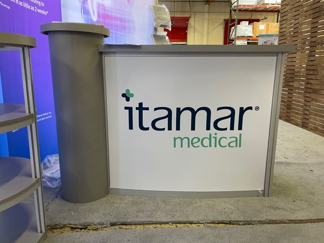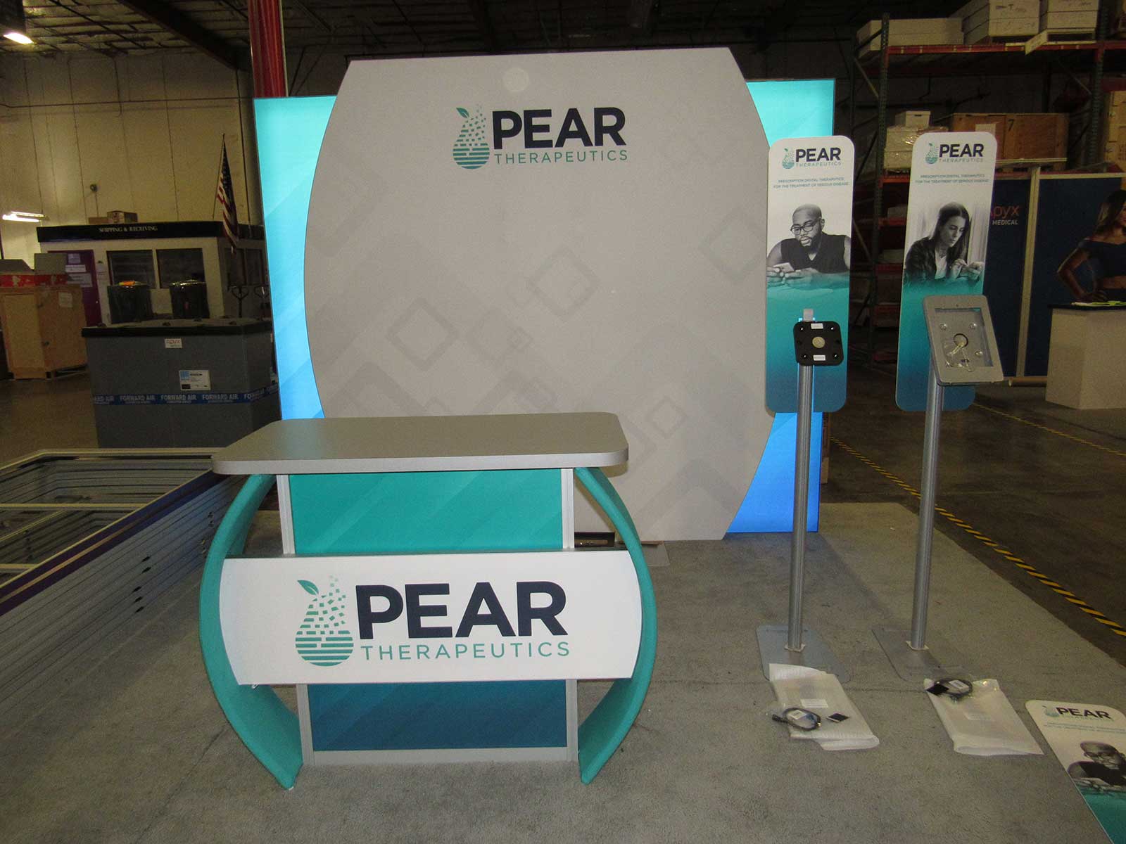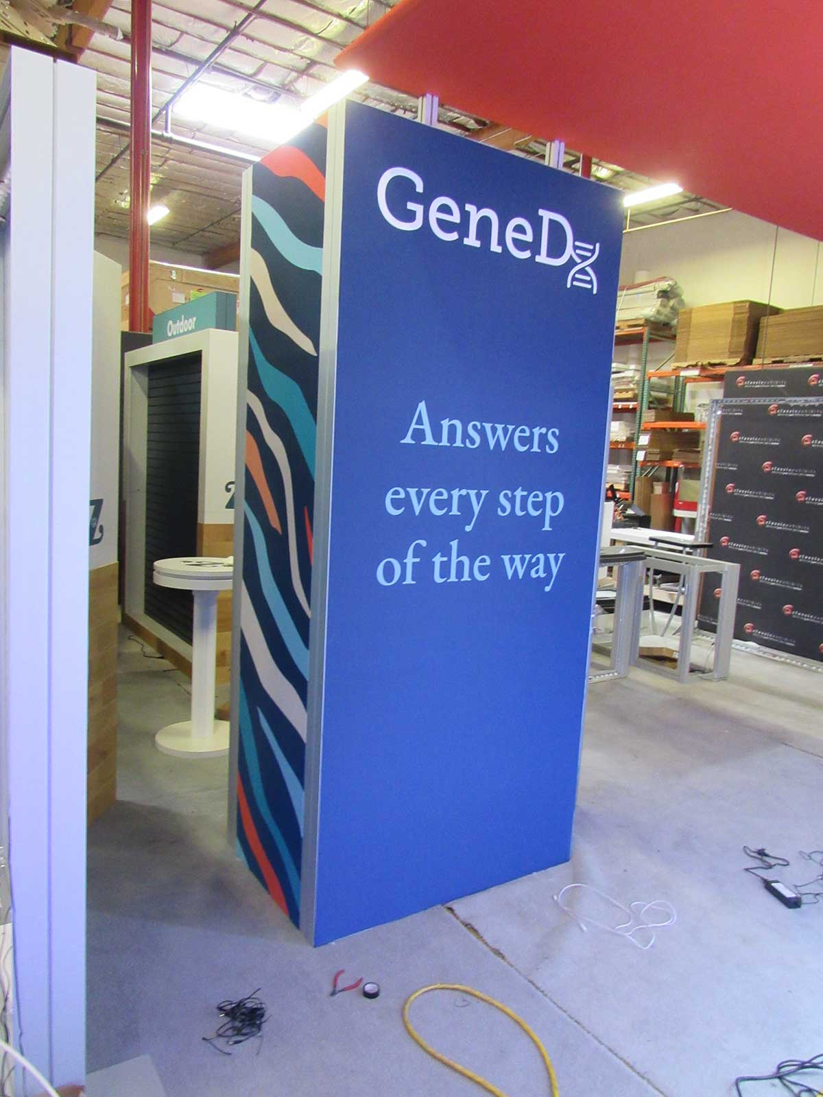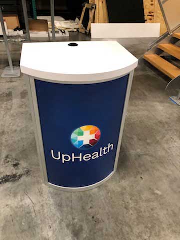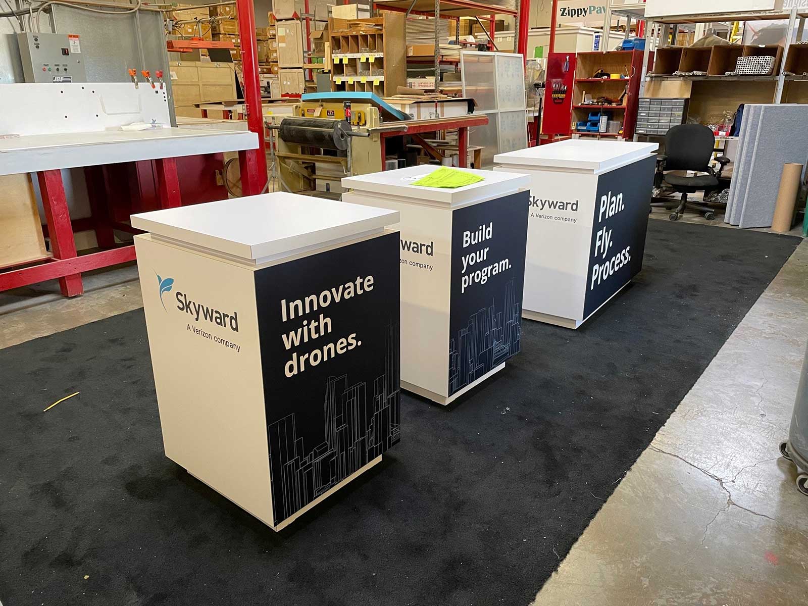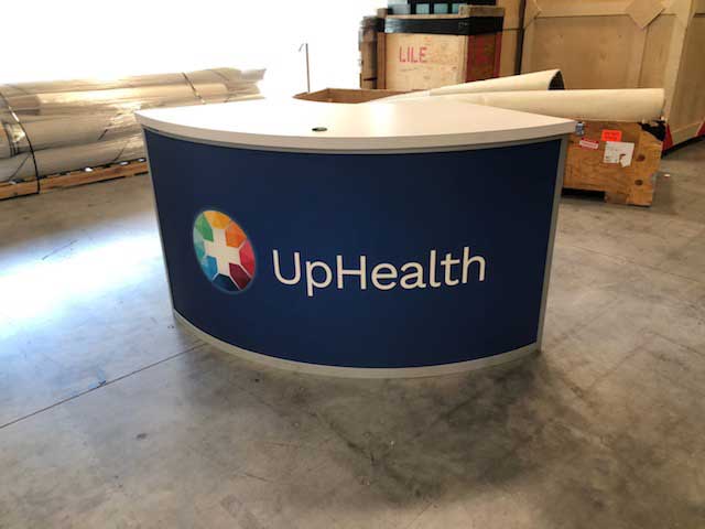 Tapered Counter Kiosk, SEG Fabric Graphics, Vinyl Graphics, Drop