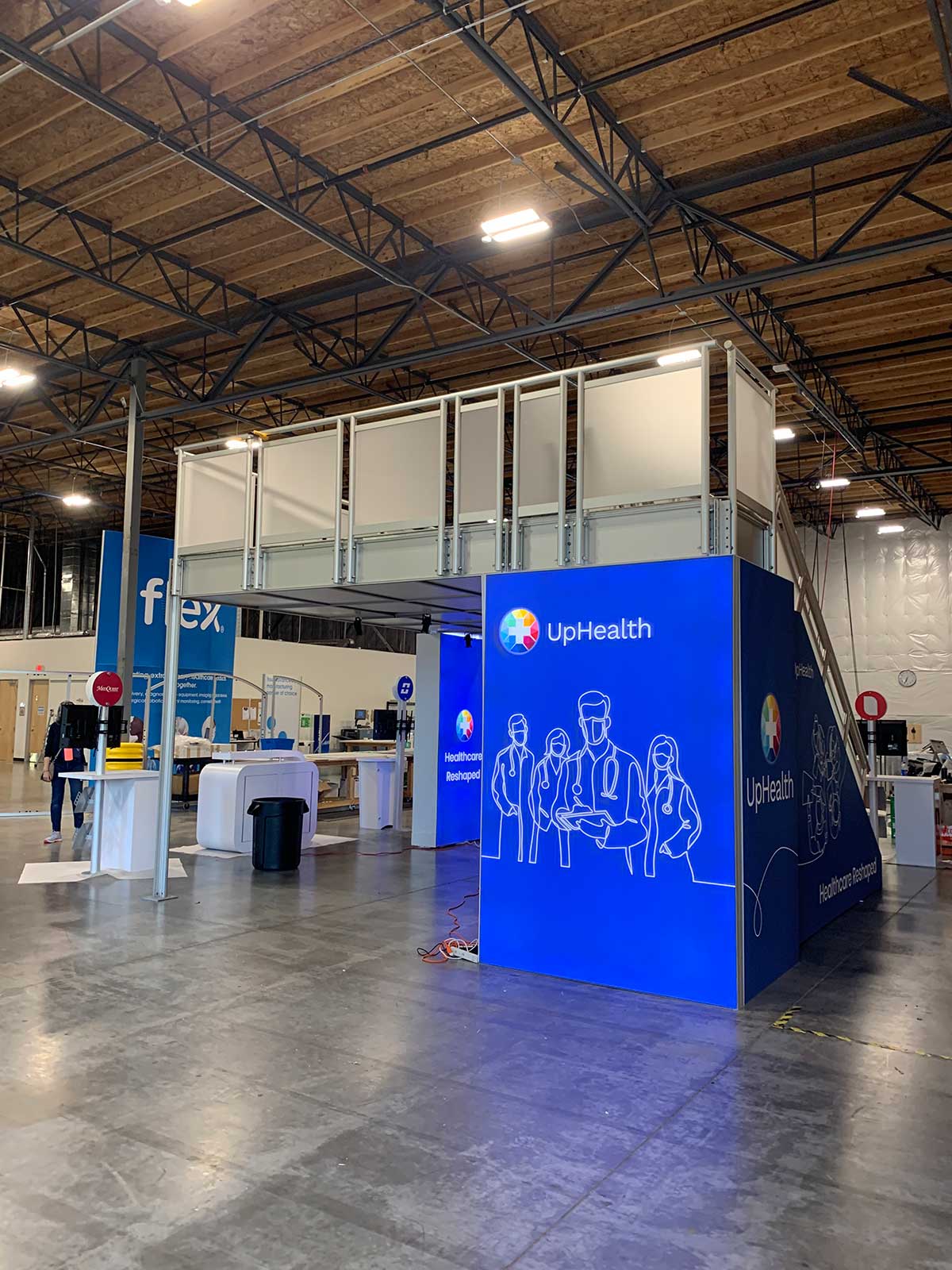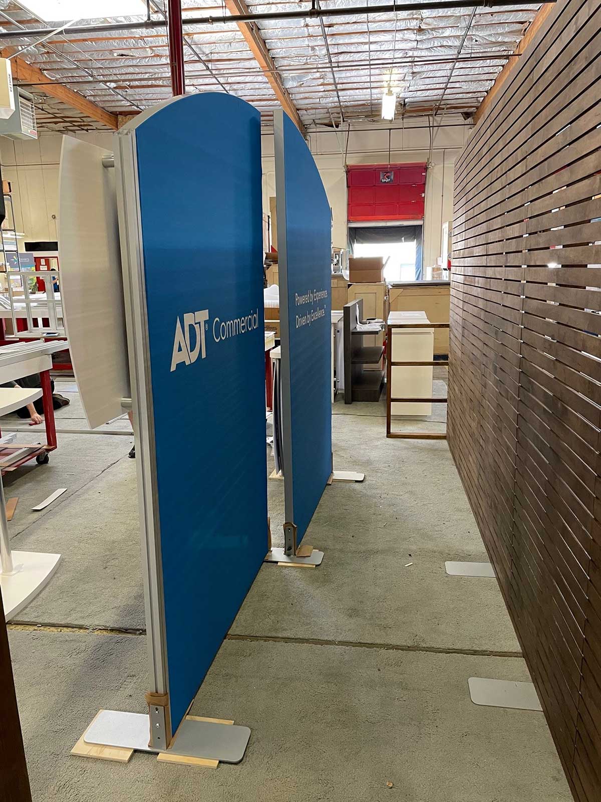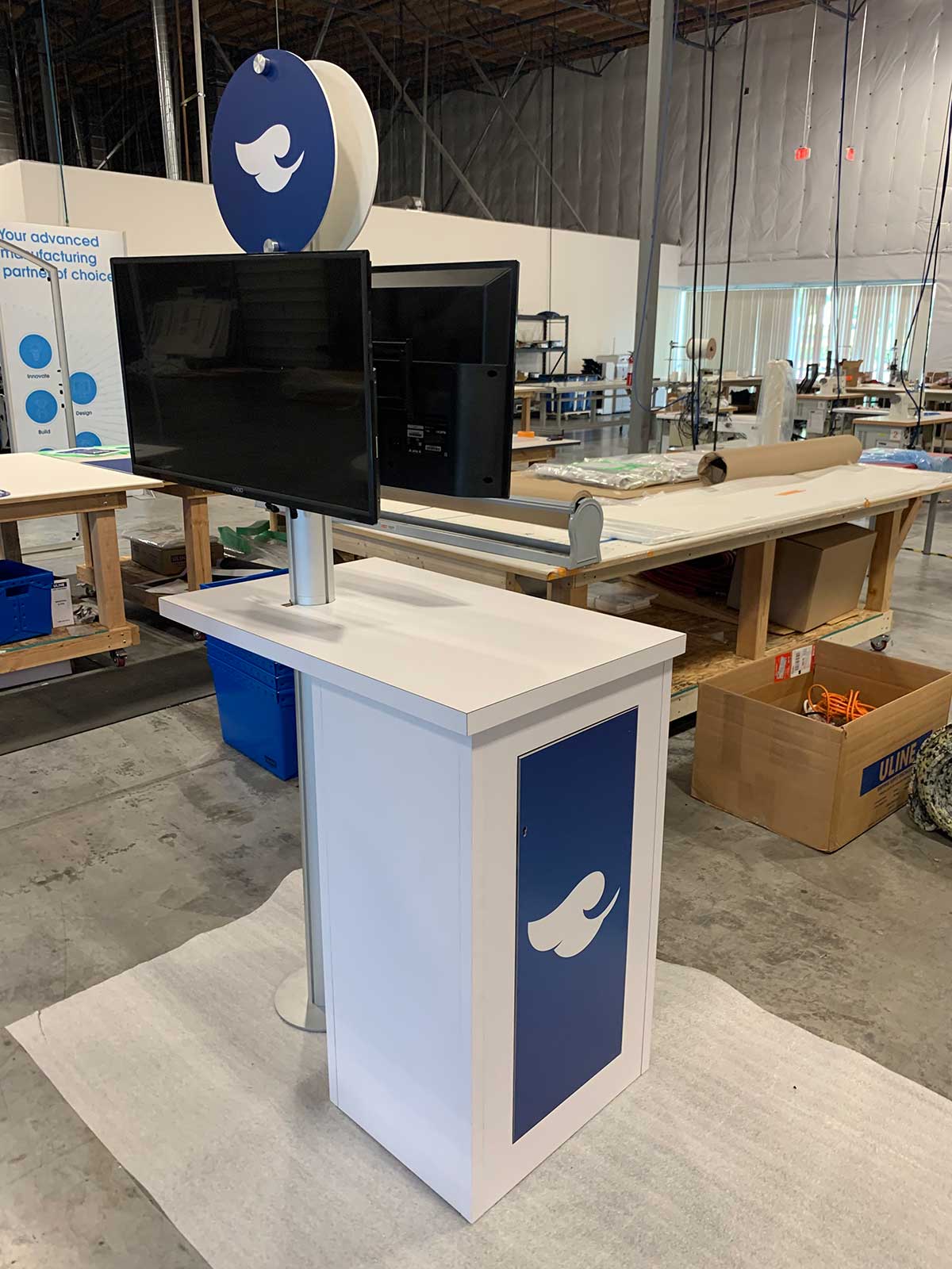 Hand Sanitizer Stands, (2) 40" Monitors, SEG Fabric Graphics, and