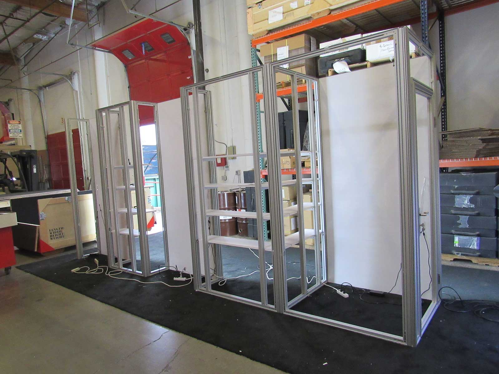 Custom Modular Unfinished Slatwall Exhibit with Freestanding