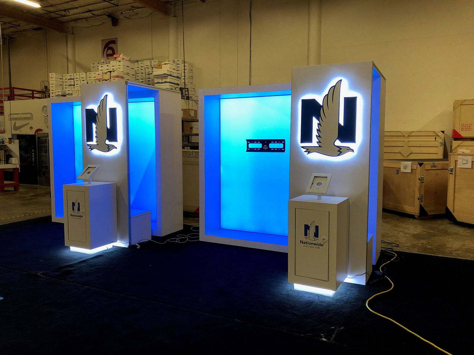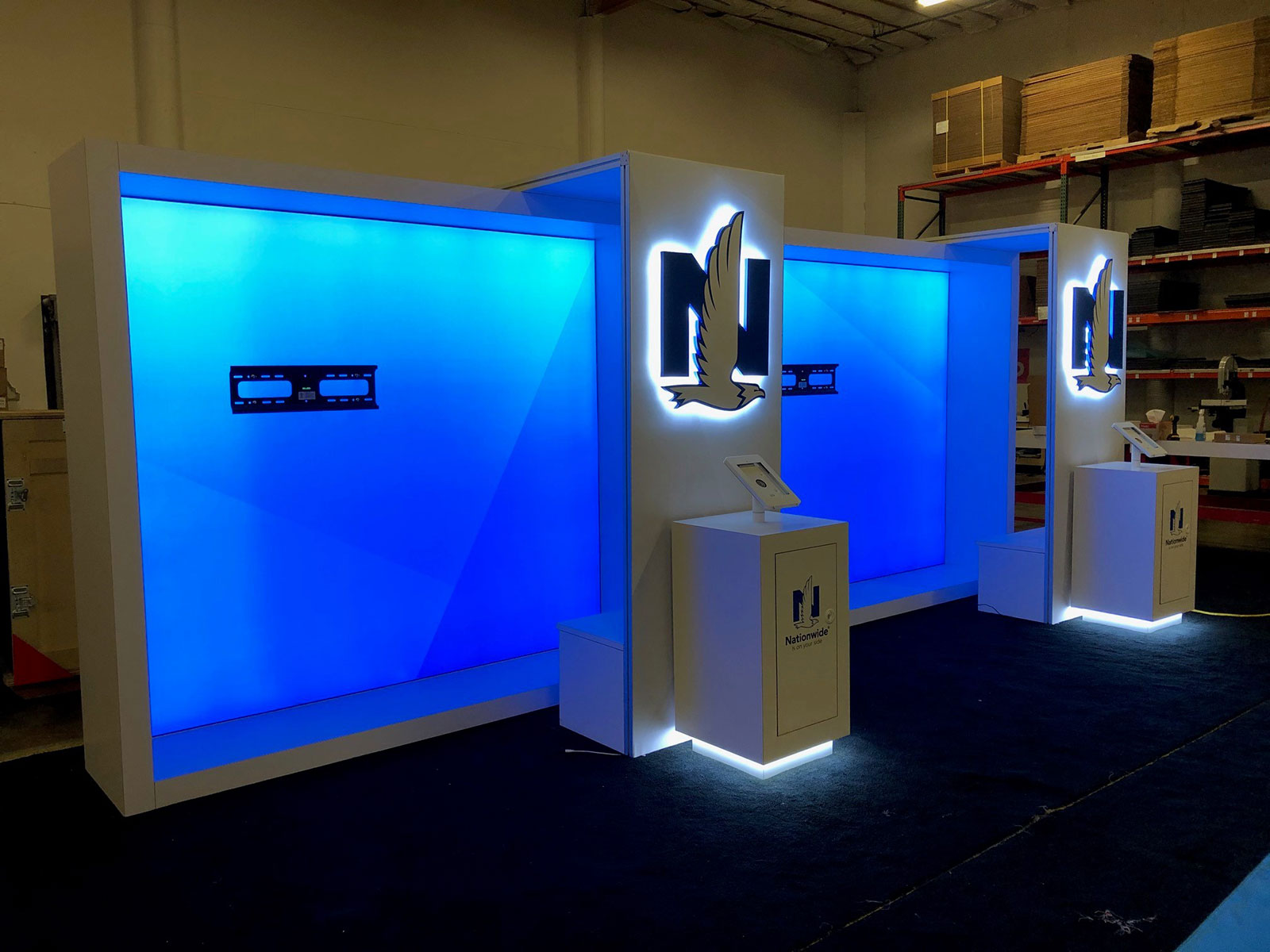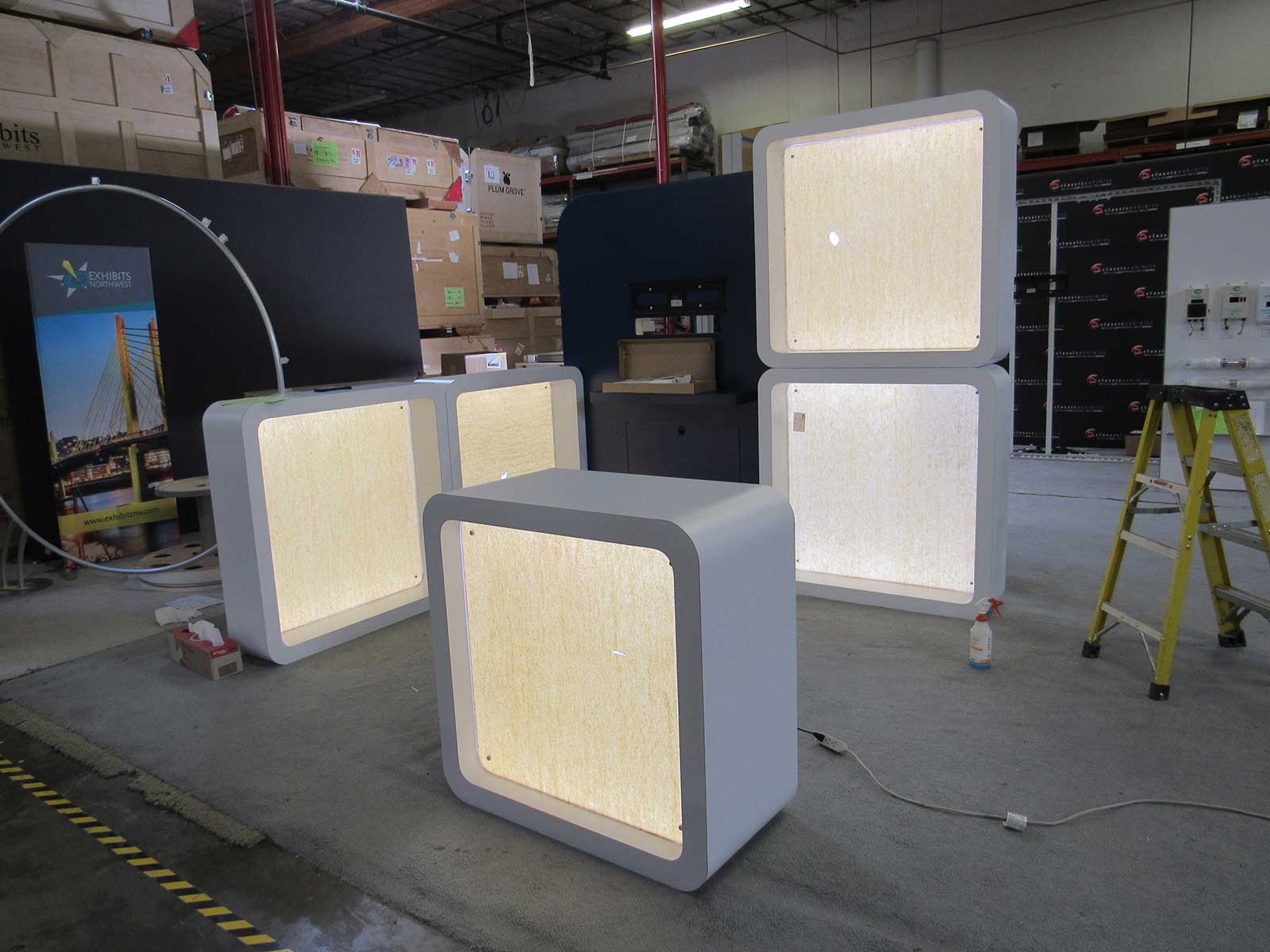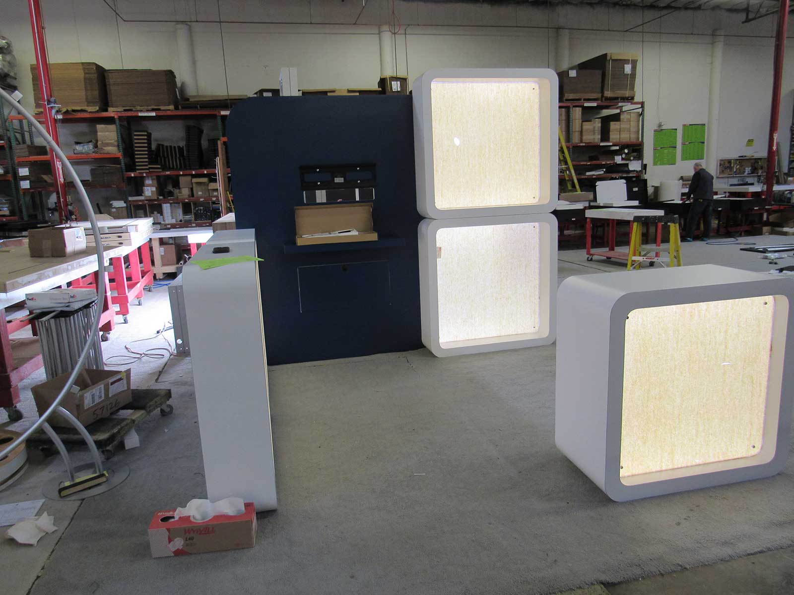 Custom Exhibits with LED Lightboxes, Monitor Mounts, Cabinet