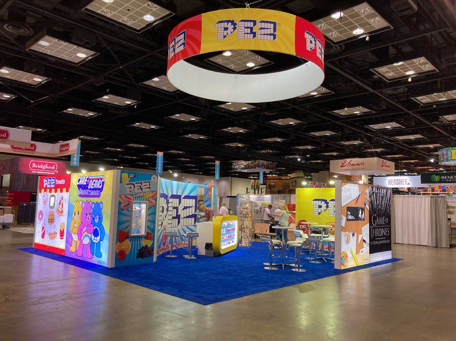 Custom Island Exhibit with Custom Counters, LED Perimeter