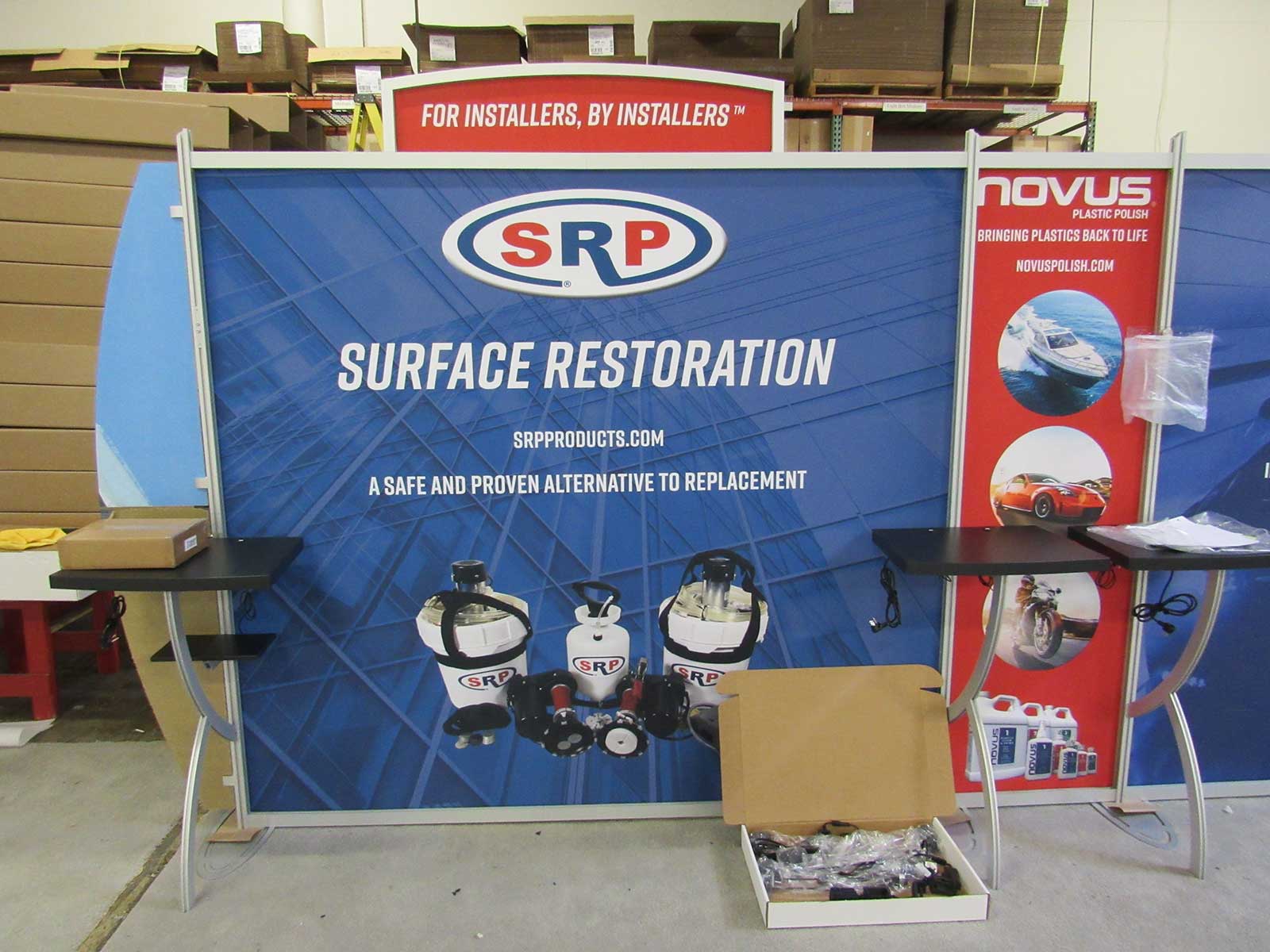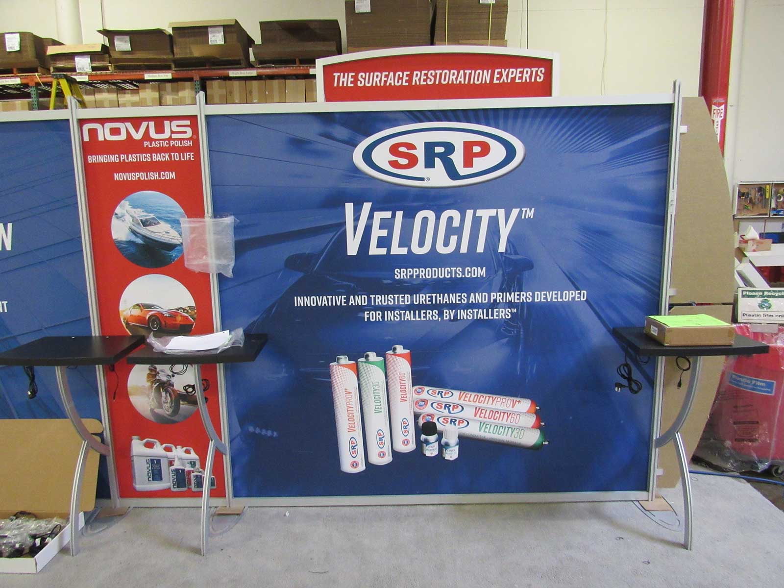 Exhibit with Tension Fabric Graphics, Backwall Counter with Locking