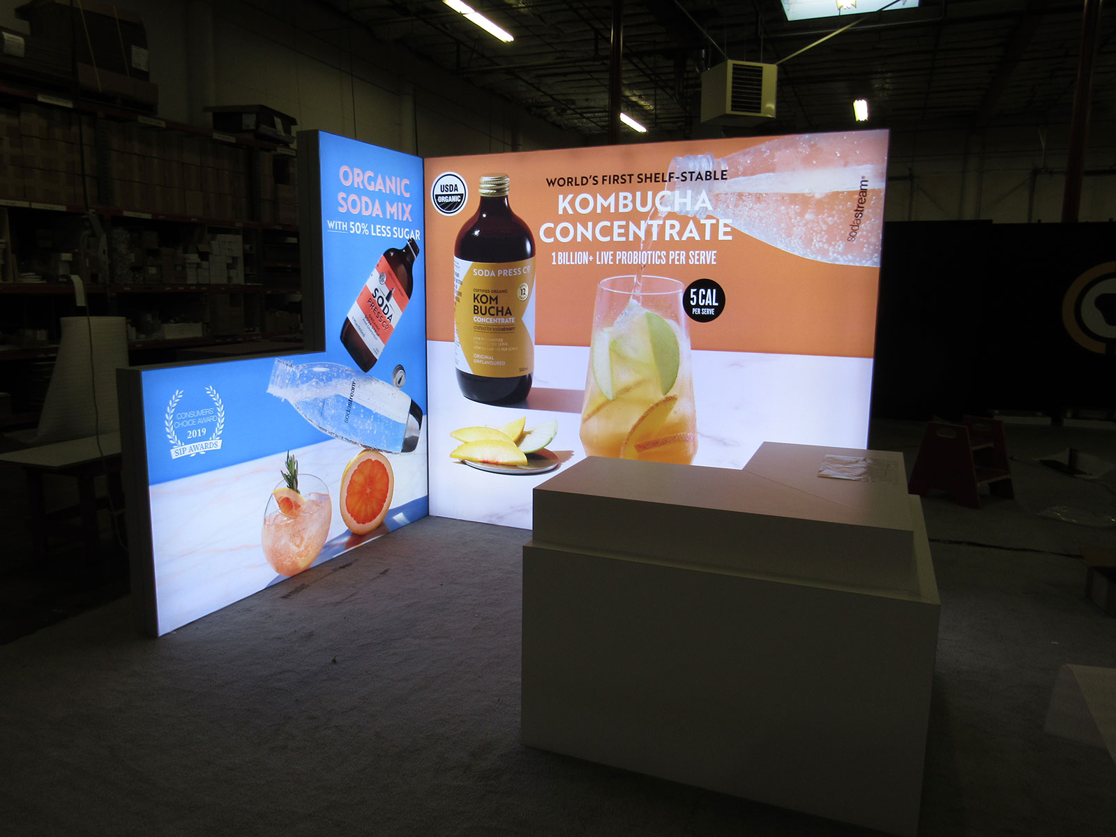 Rectangular Counter, SEG Fabric Graphics for Lightbox Kiosks, and