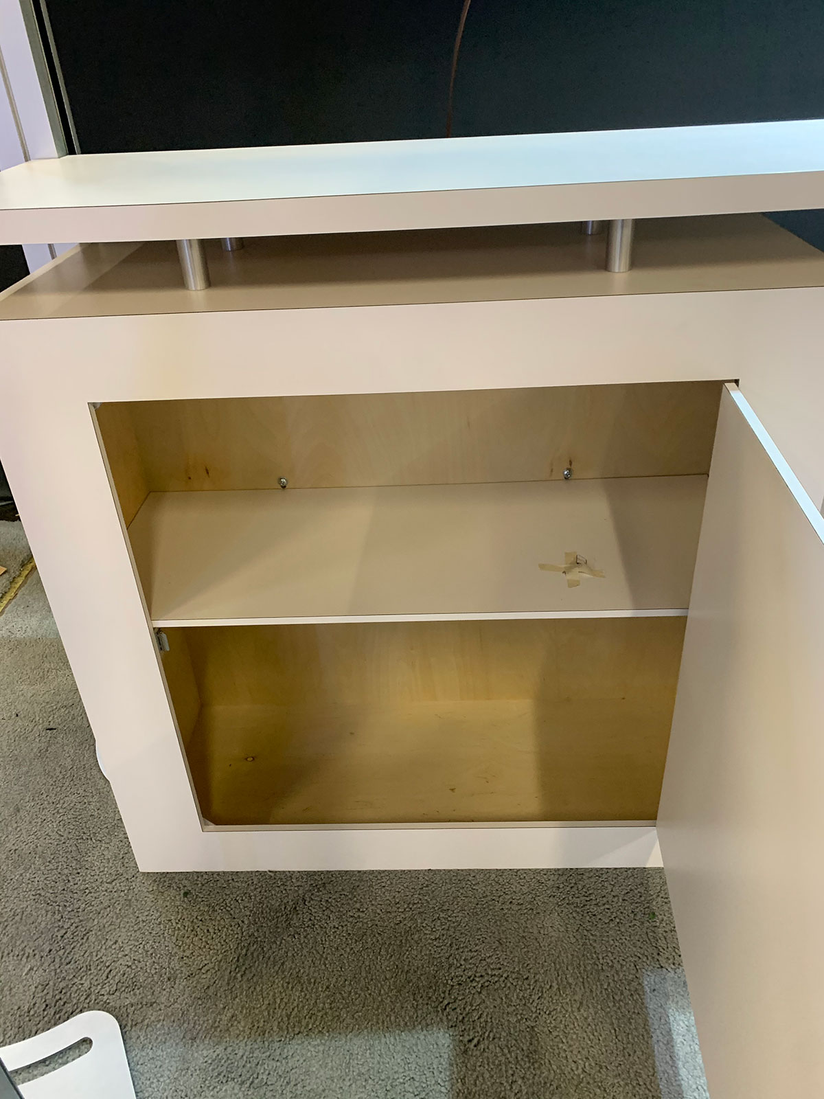 (6) White Laminated Shelves, Large Monitor Mount, 43" Monitor,
