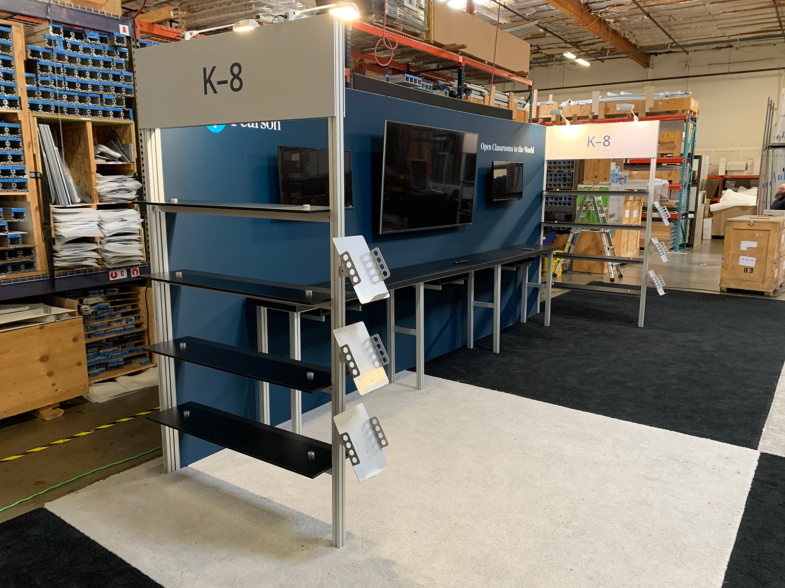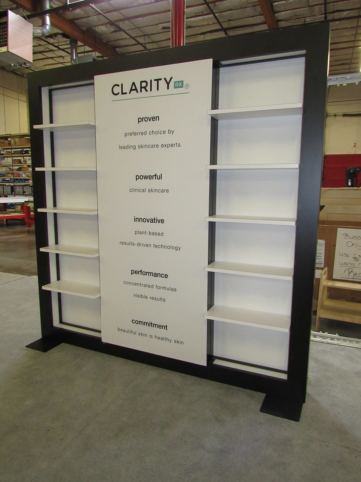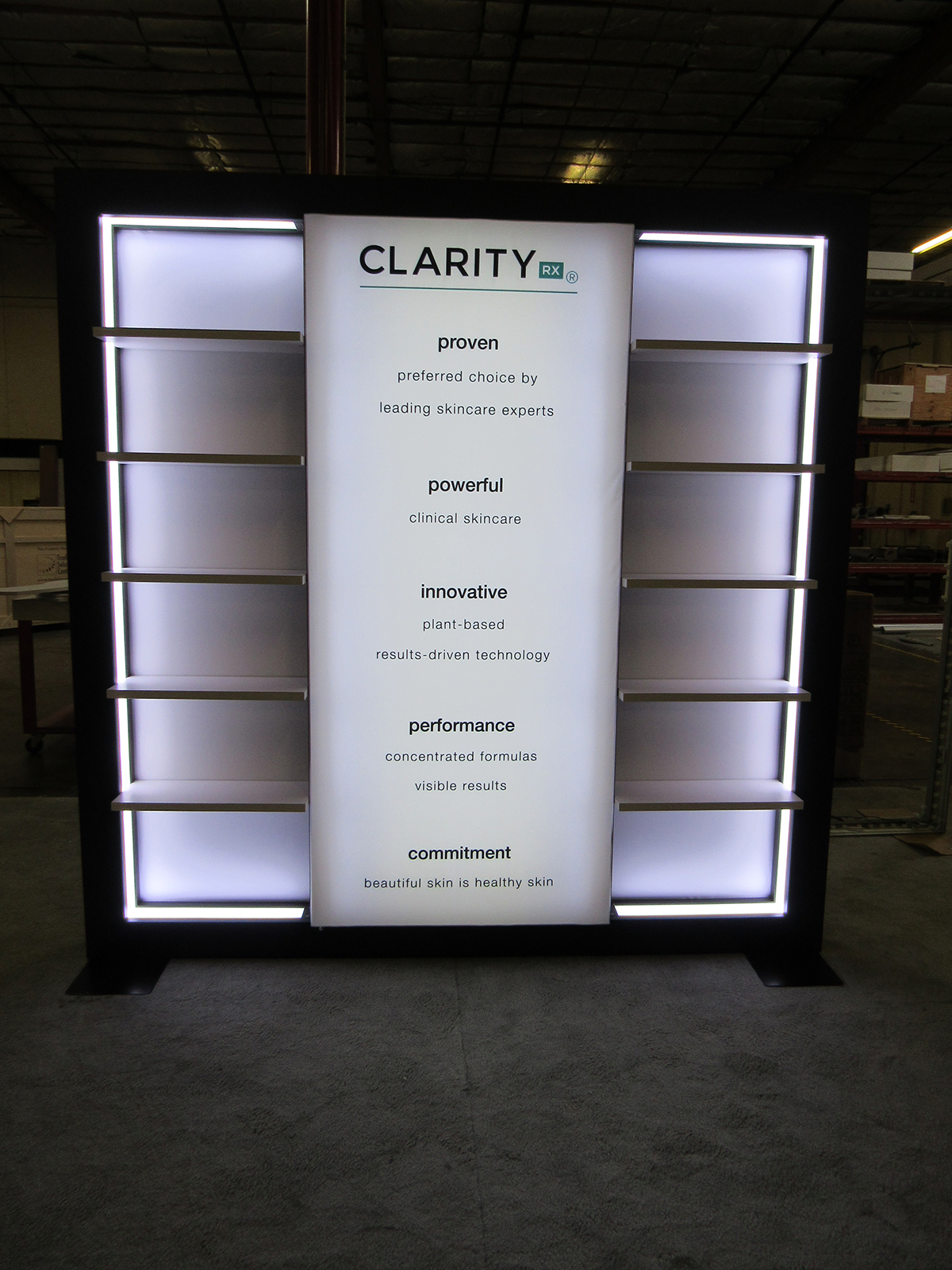 Custom Inline Exhibit with Extensive Shelving, Backlighting