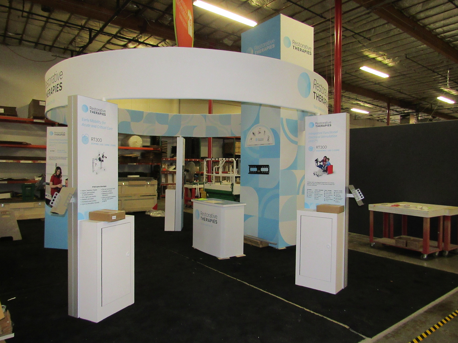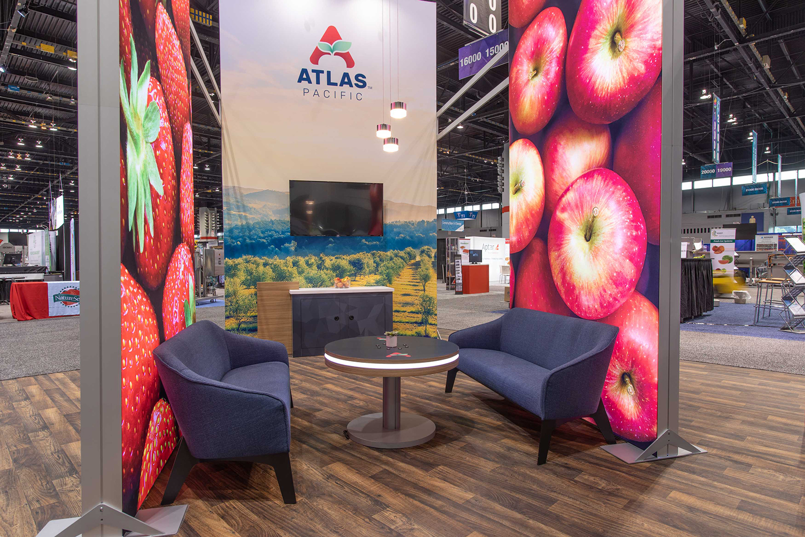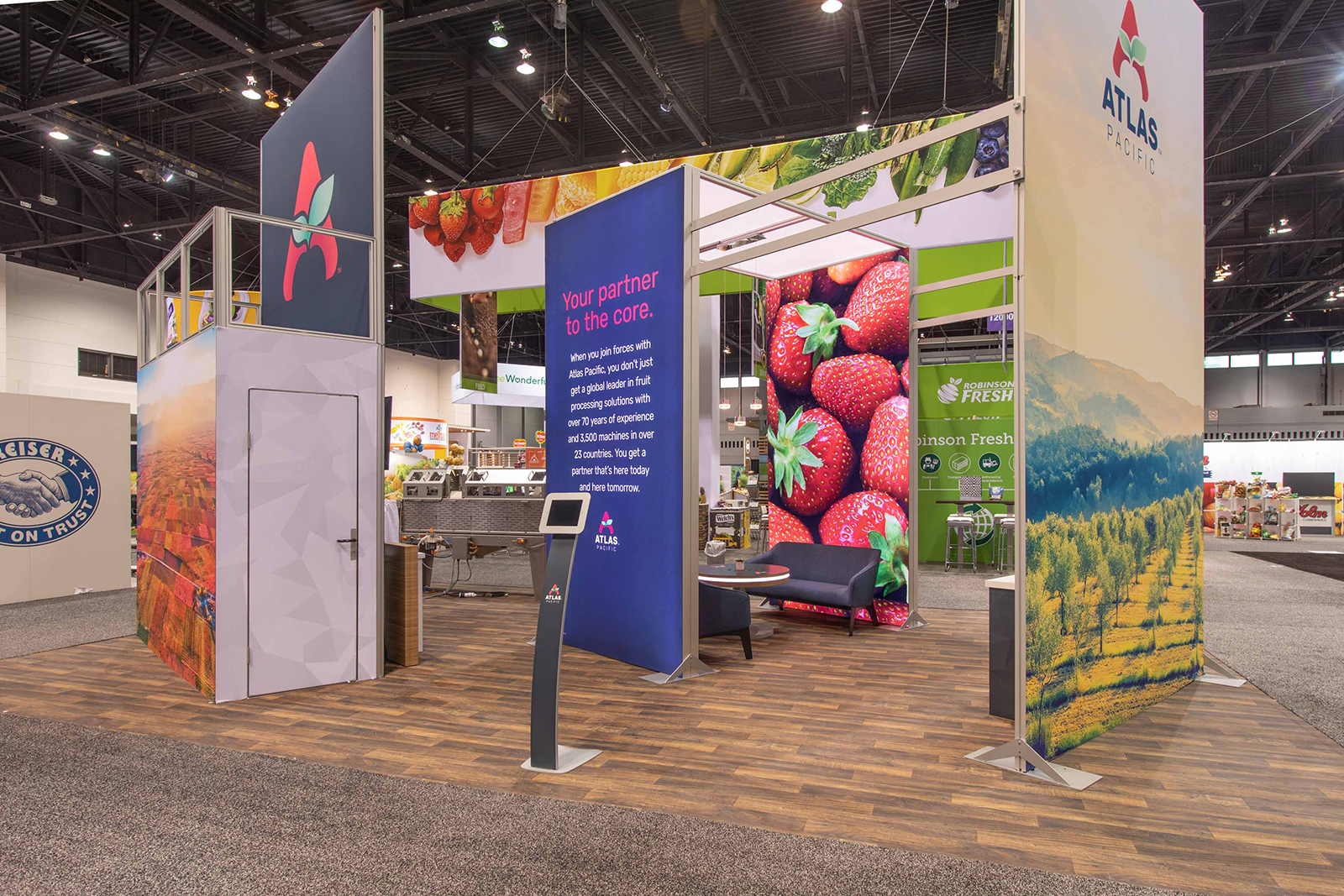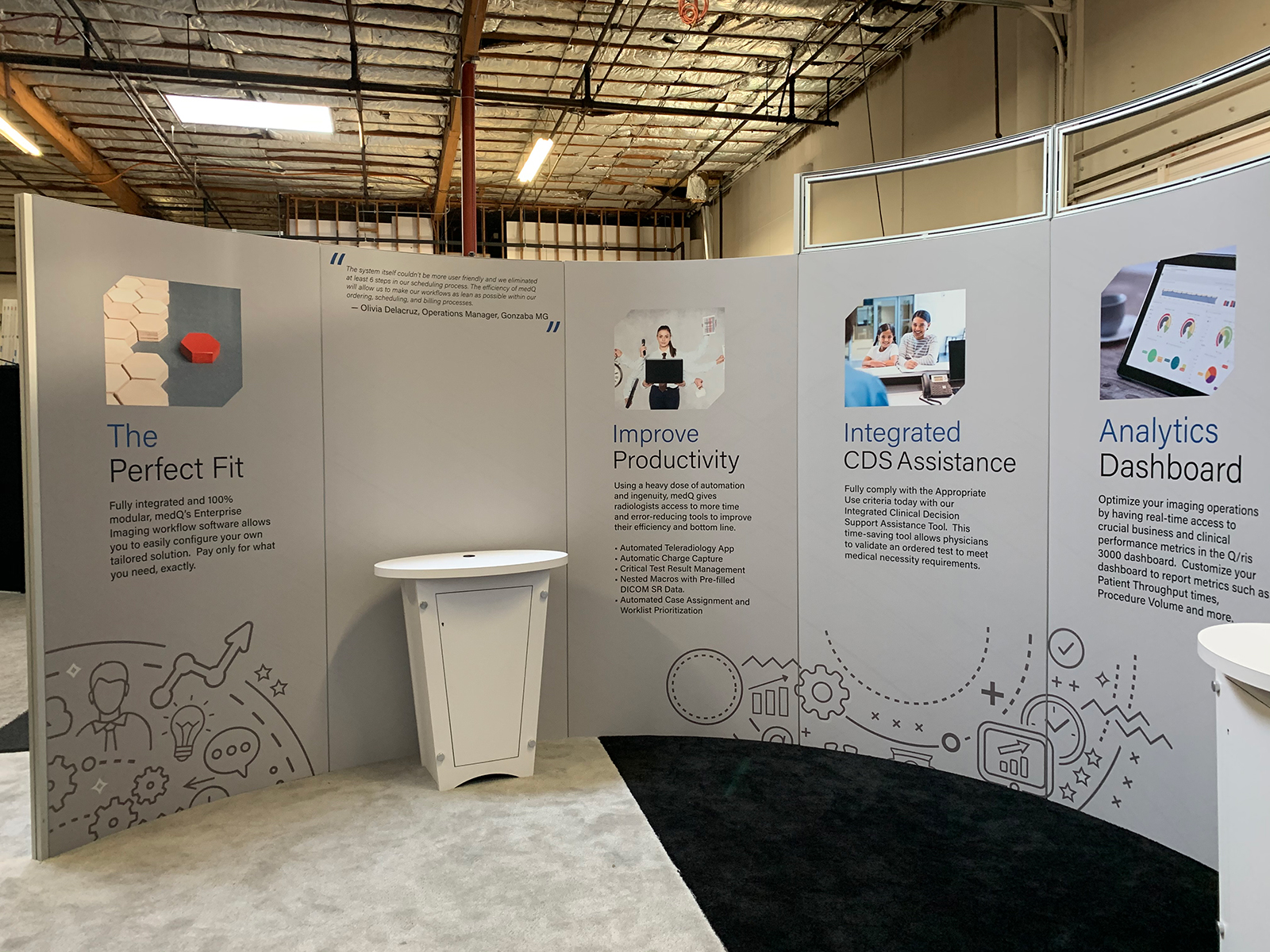 Exhibit with Tension Fabric Graphics, Monitor Kiosk, and Custom