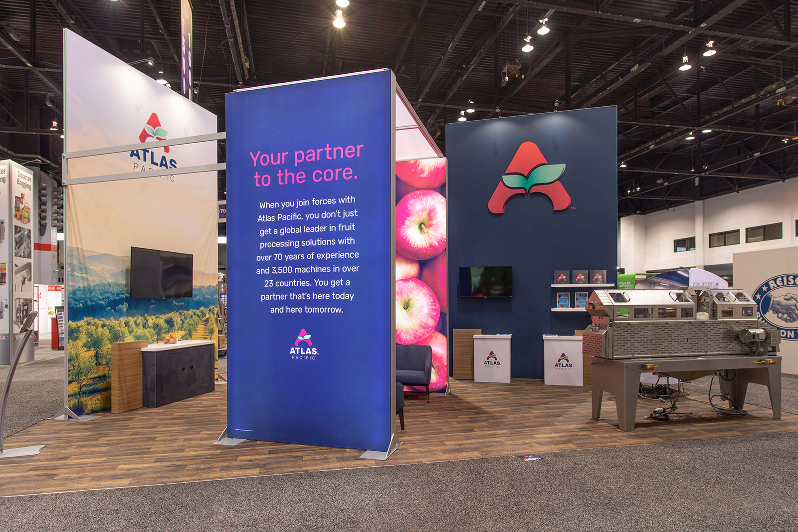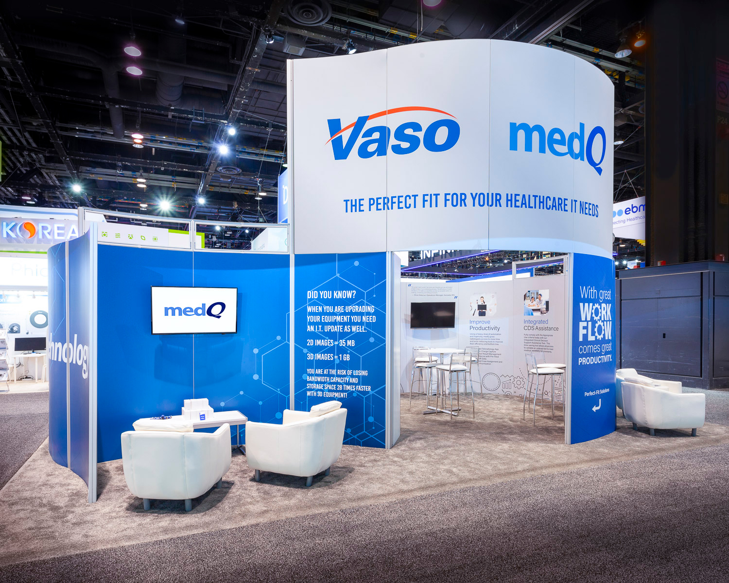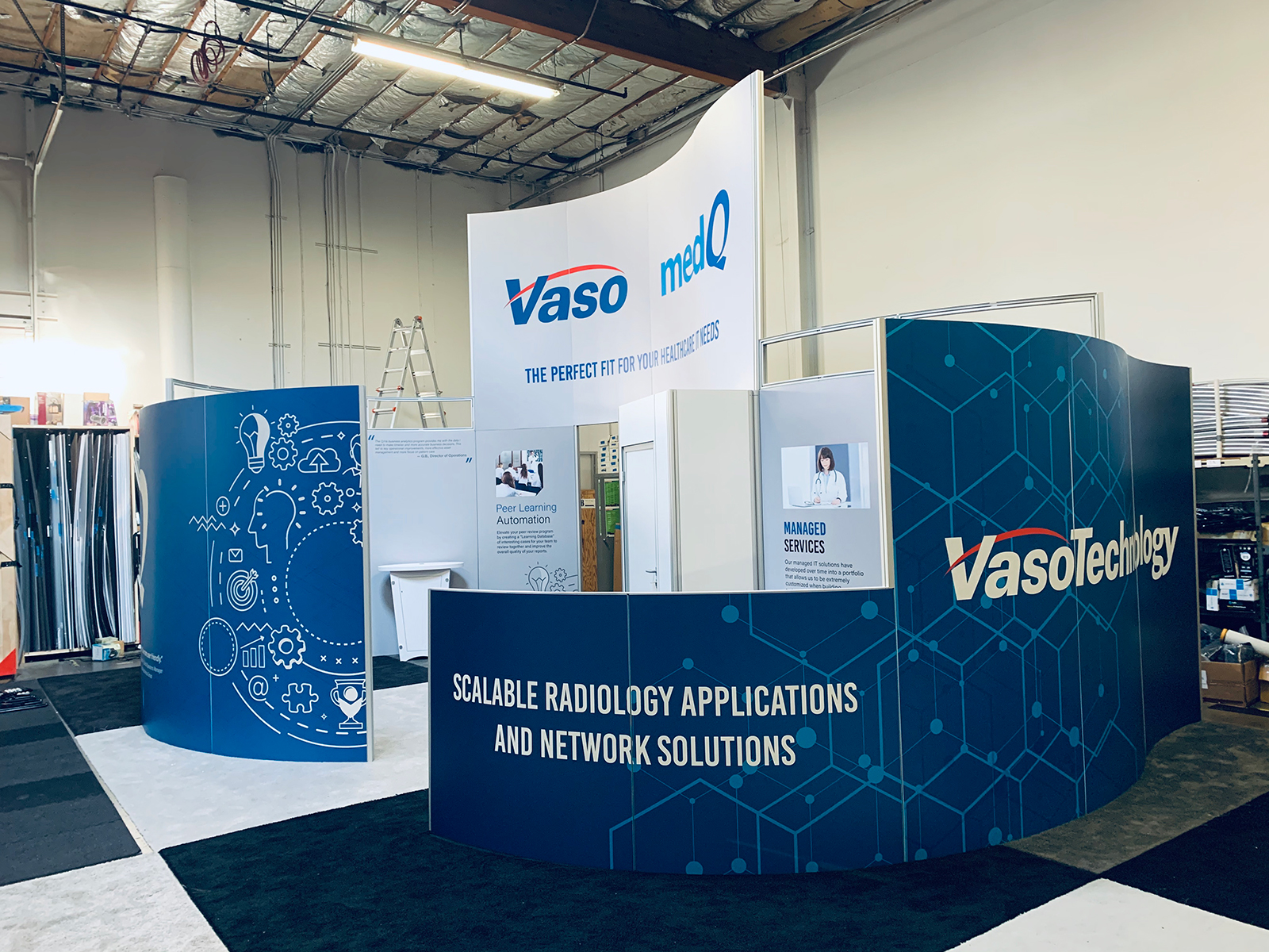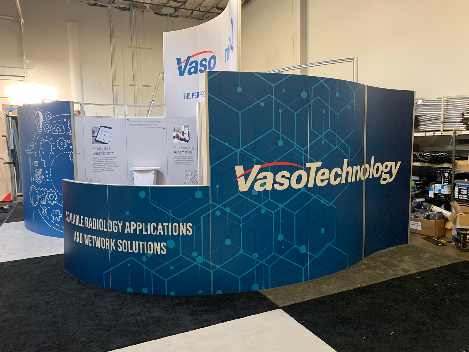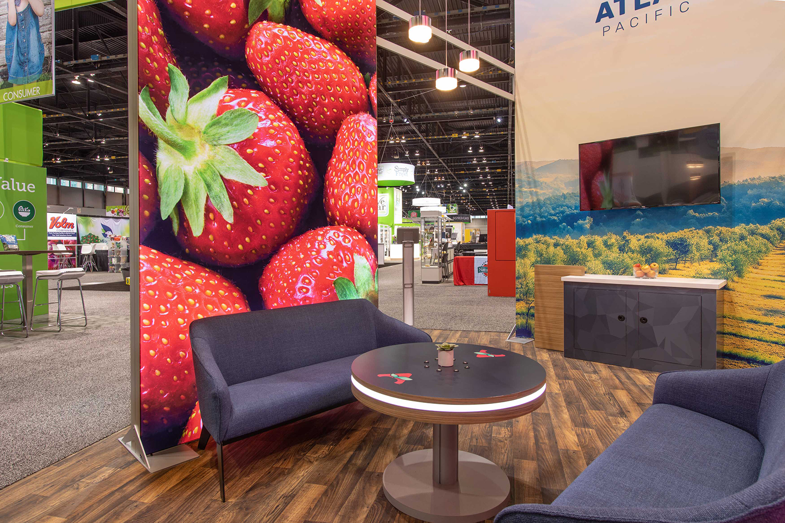 Exhibit with Tension Fabric Graphics, Monitor Kiosk, and Custom