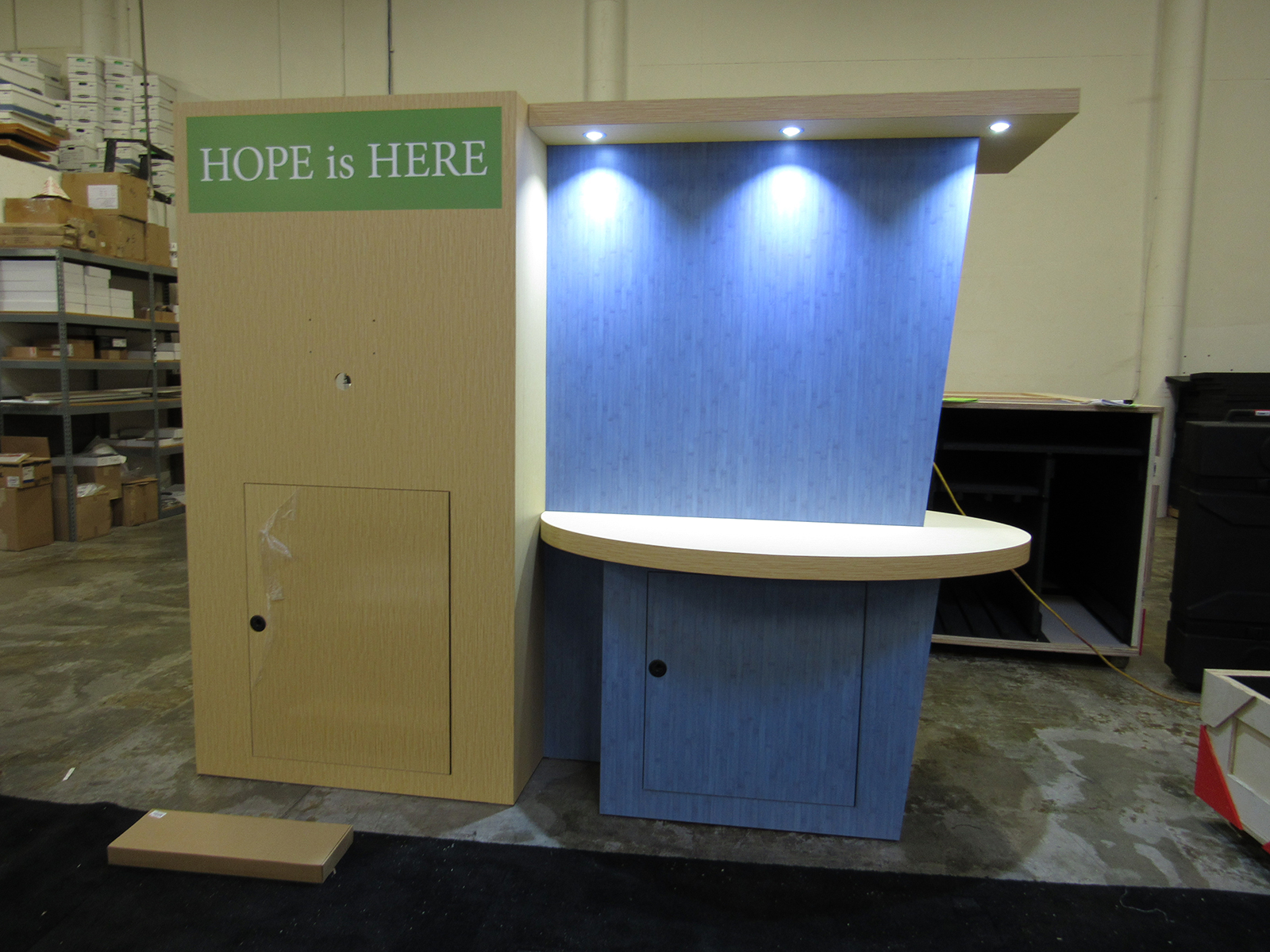 Exhibit with (2) LED Lightboxes, Counters with Locking Storage,