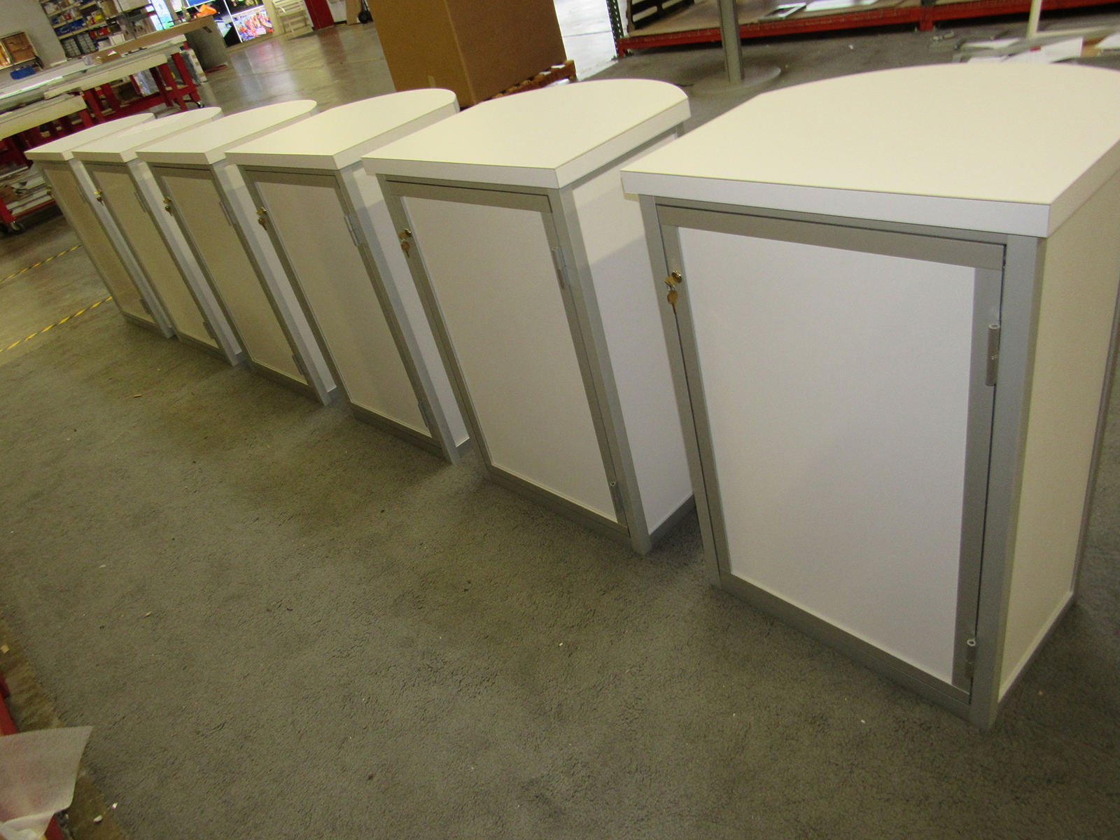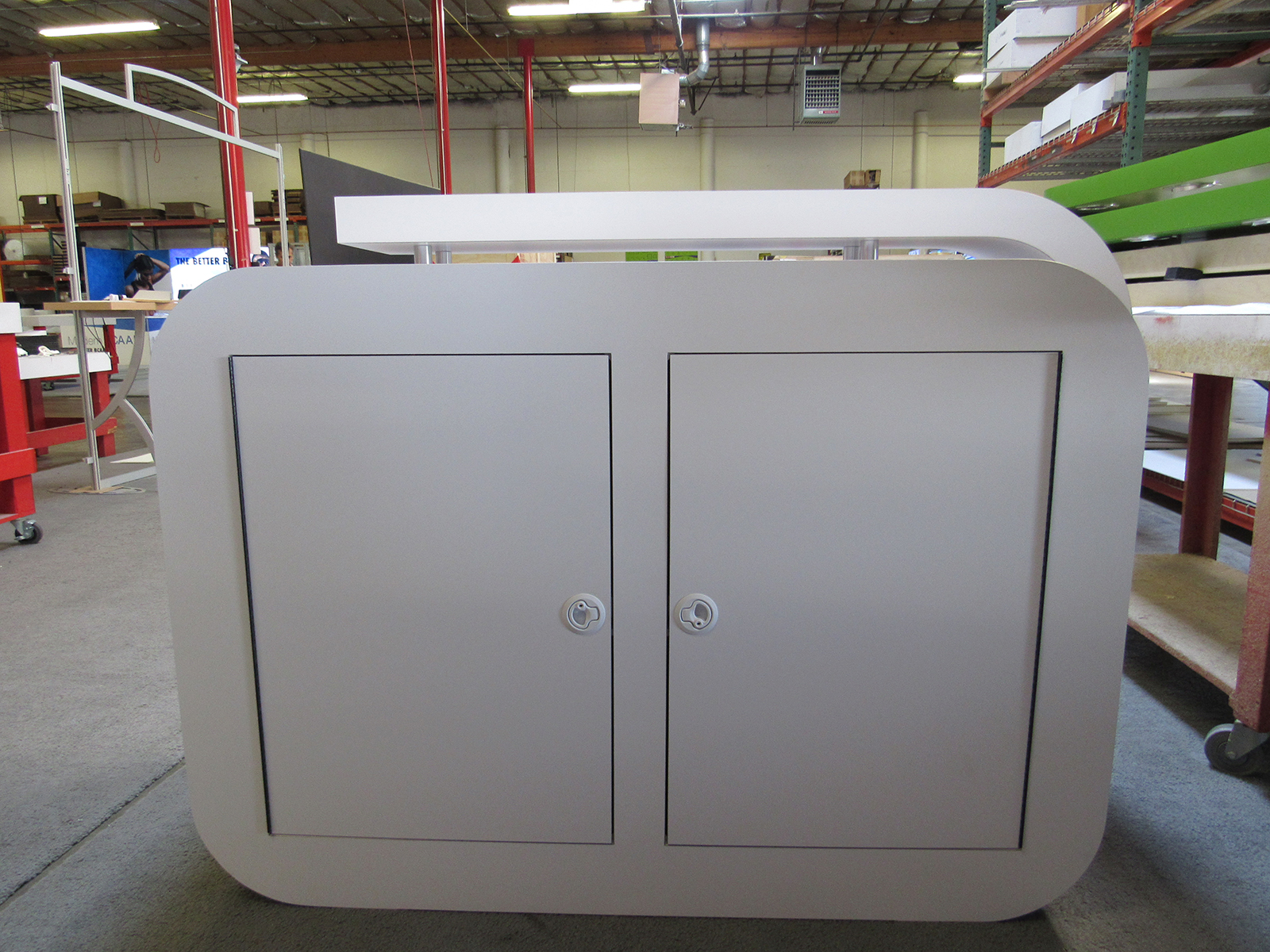 Fabric Graphics, Product Shelves, Locking Storage, Monitor Mount,