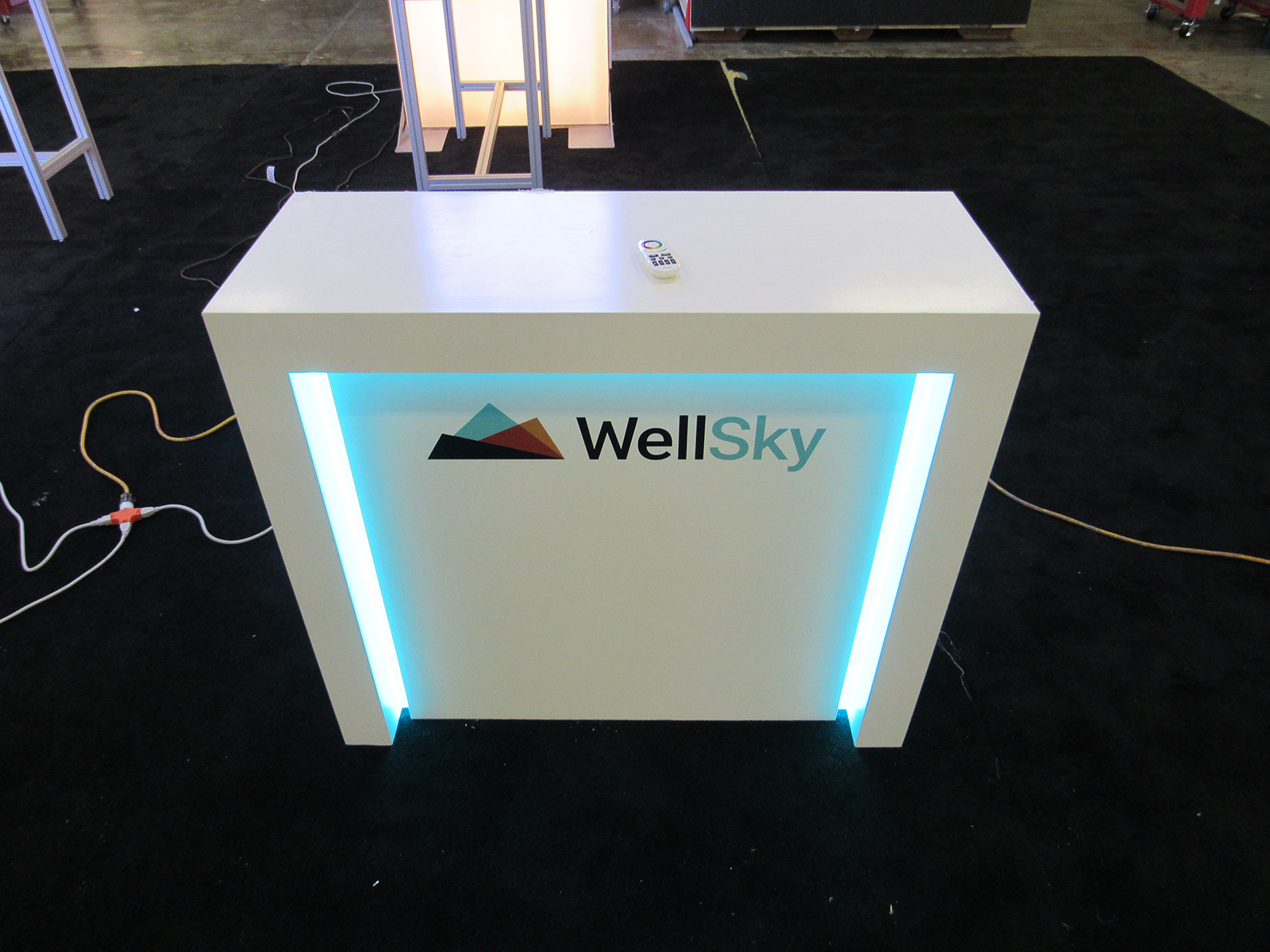 Custom Counter with Backlit Graphic and Locking Storage (shown