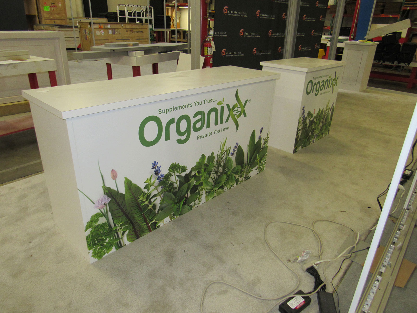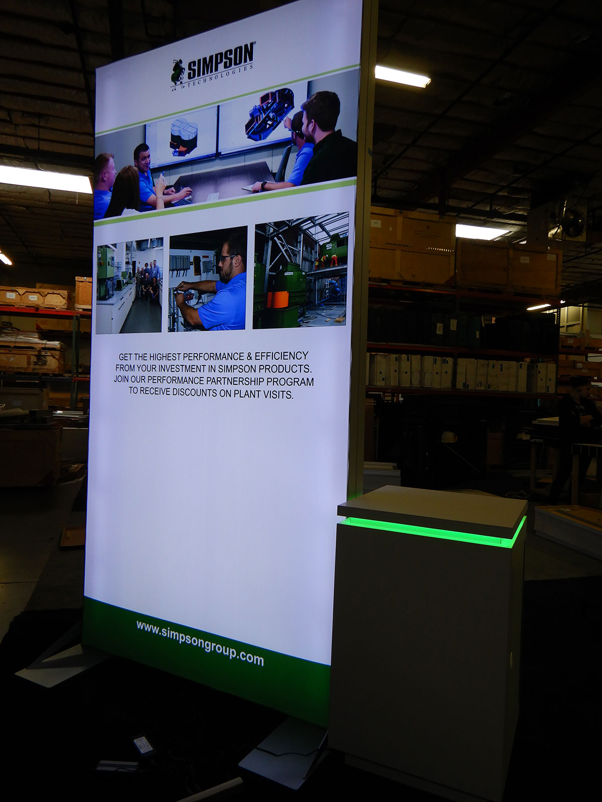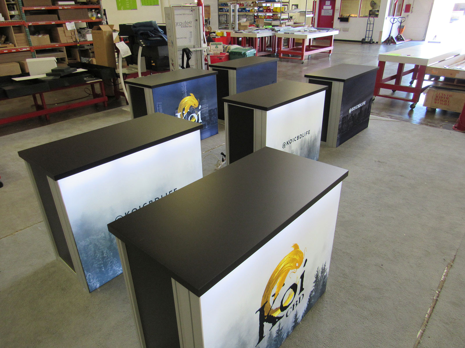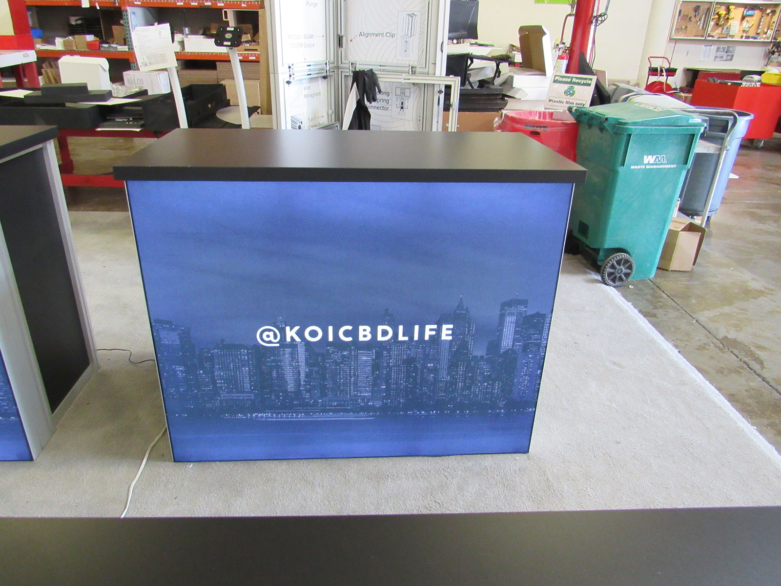 Top and LED Backlit podium graphic. Shown with a Custom 10 x 20 LED