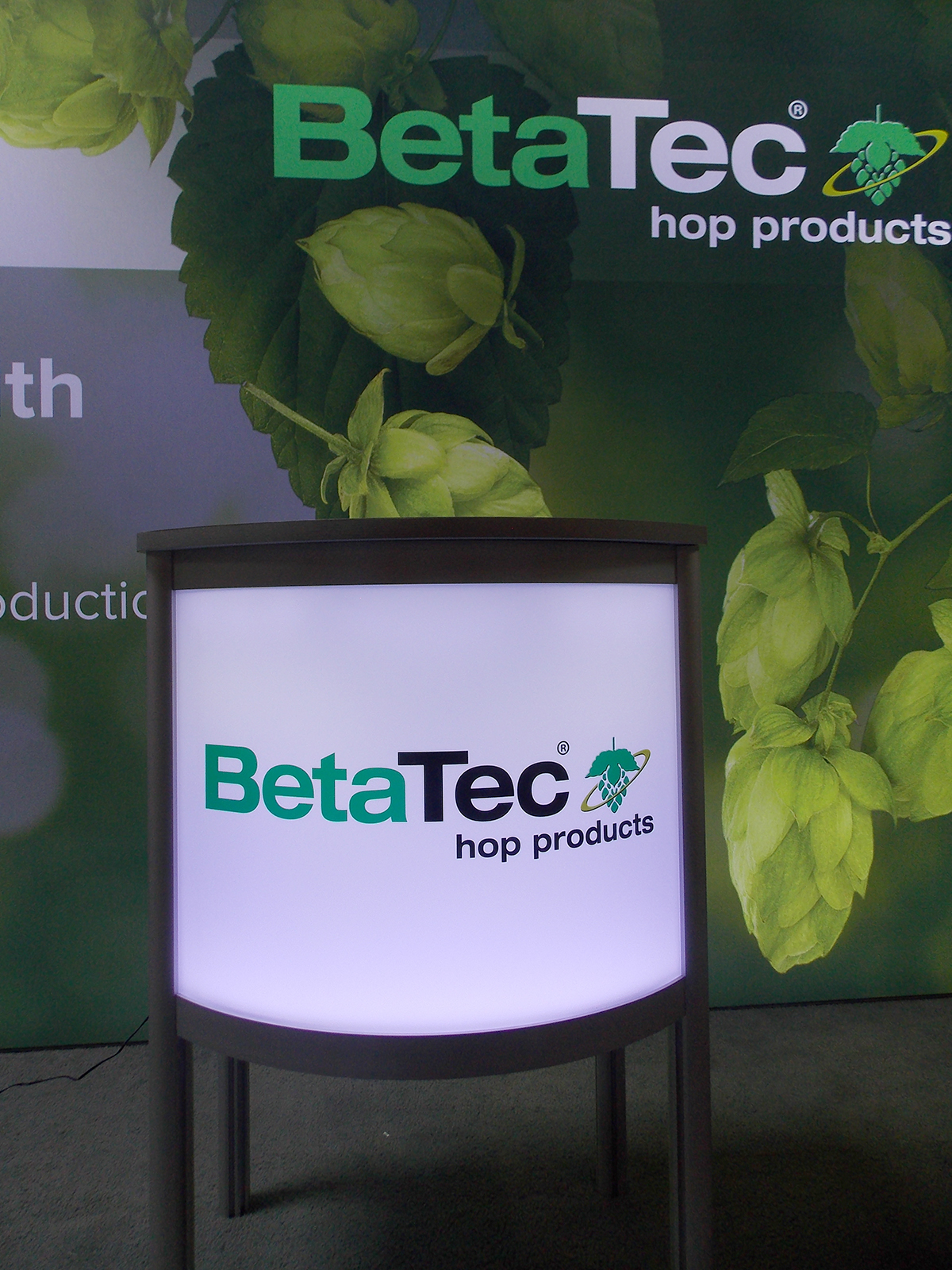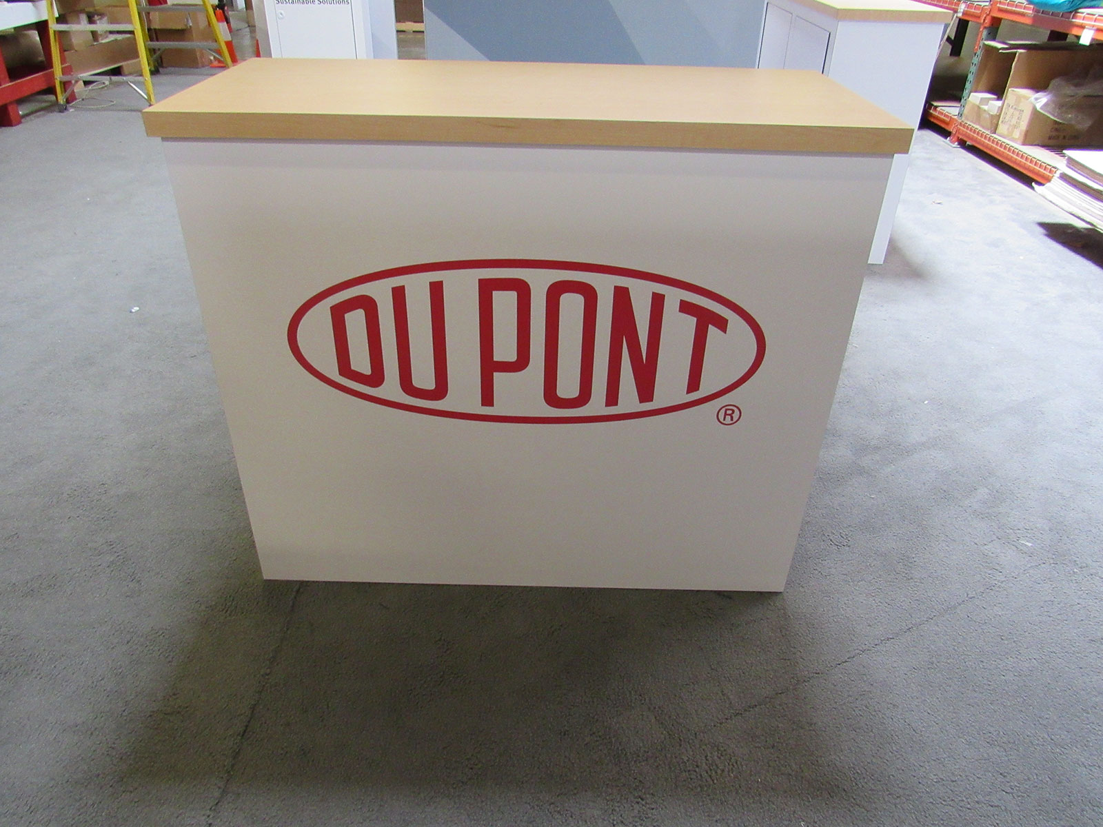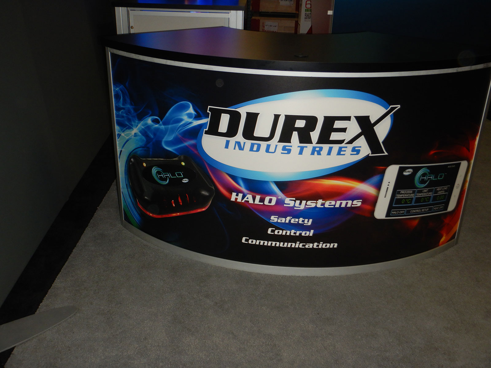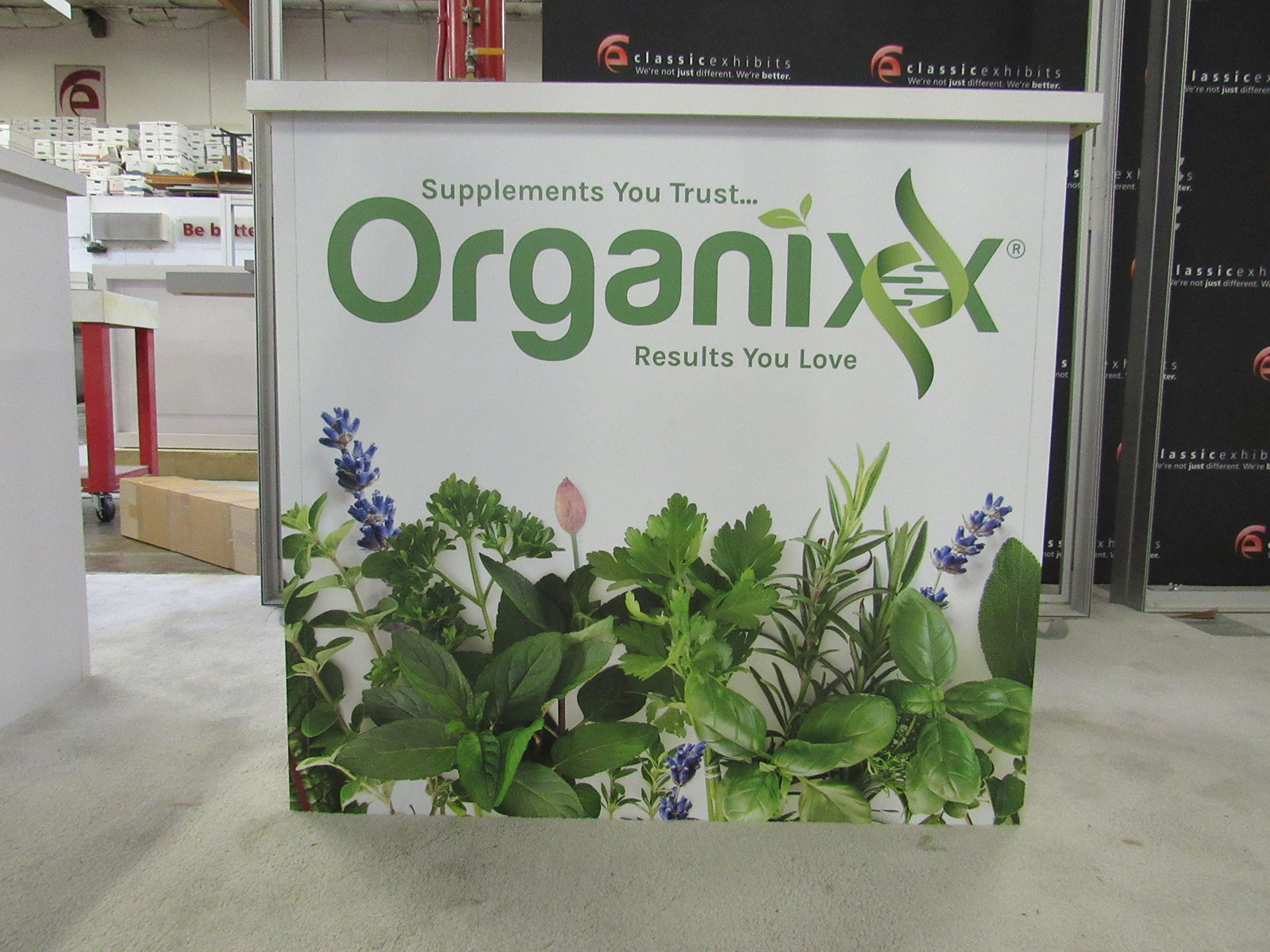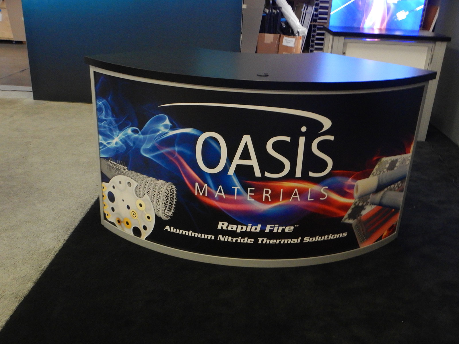 Top and LED Backlit podium graphic. Shown with a Custom 10 x 20 LED