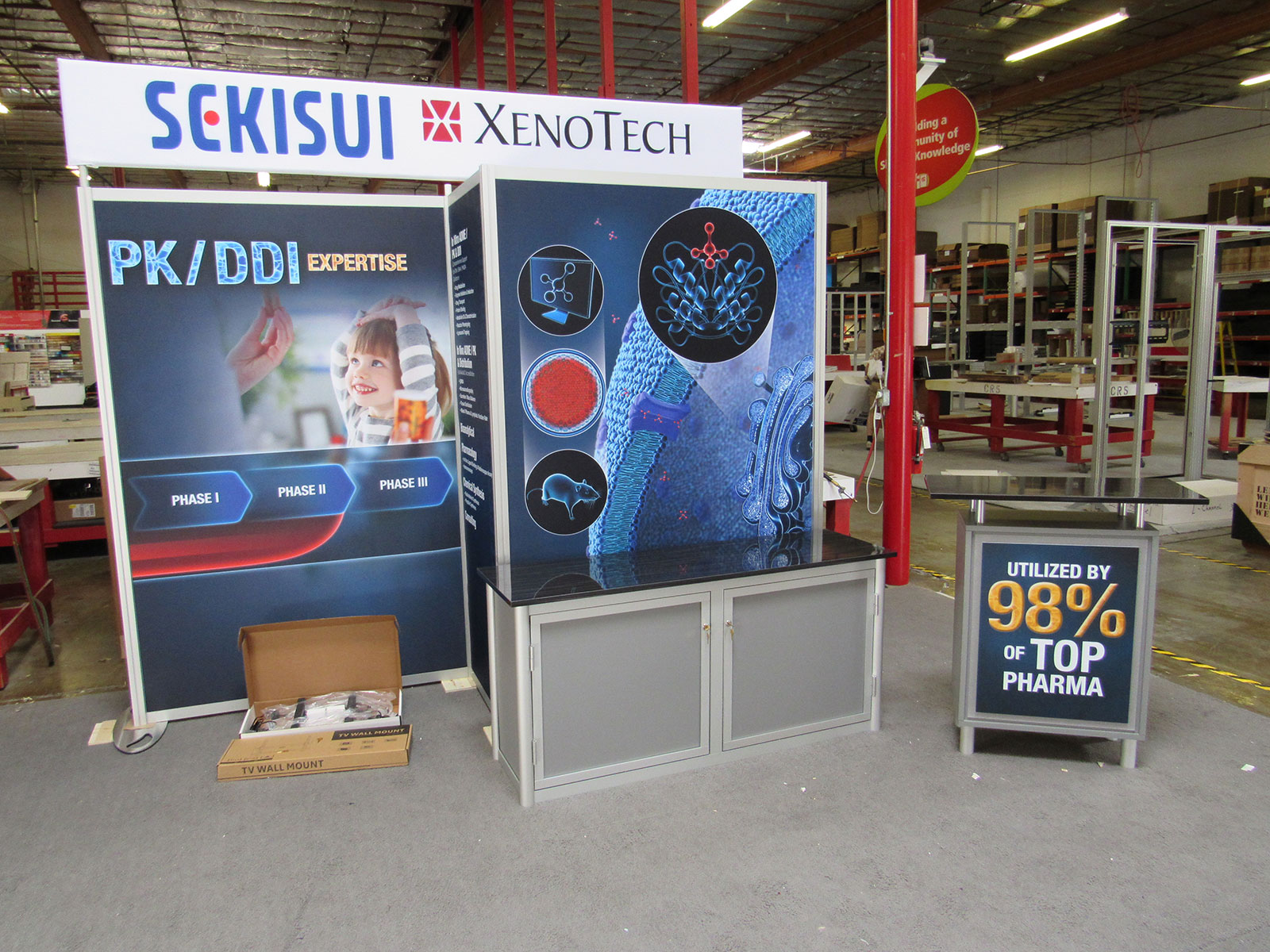 Custom Inline Exhibit with (4) Monitor Mounts, Backlit Logo,
