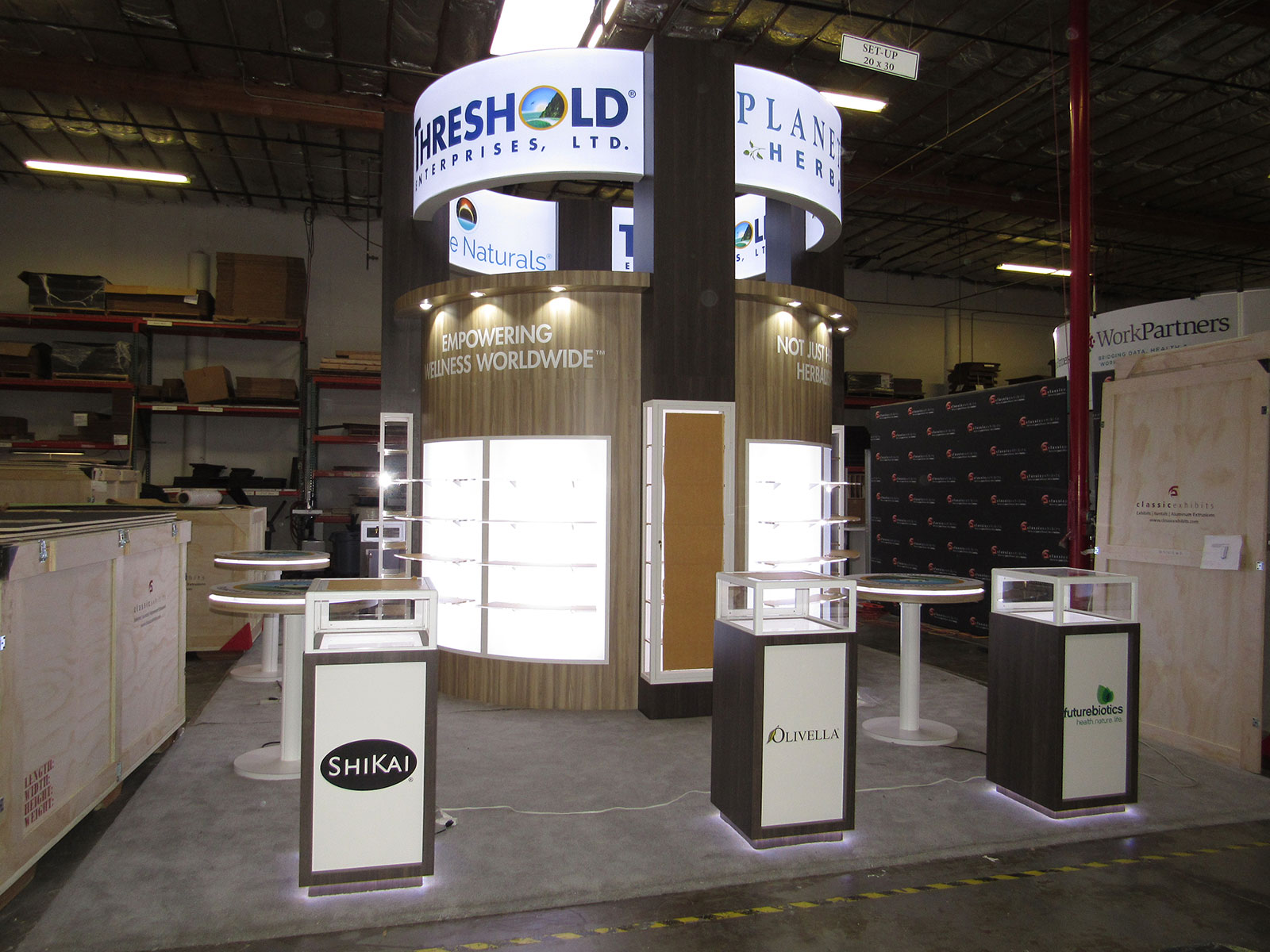 Island Exhibit with Curved LTK-1011 Counters with Storage,