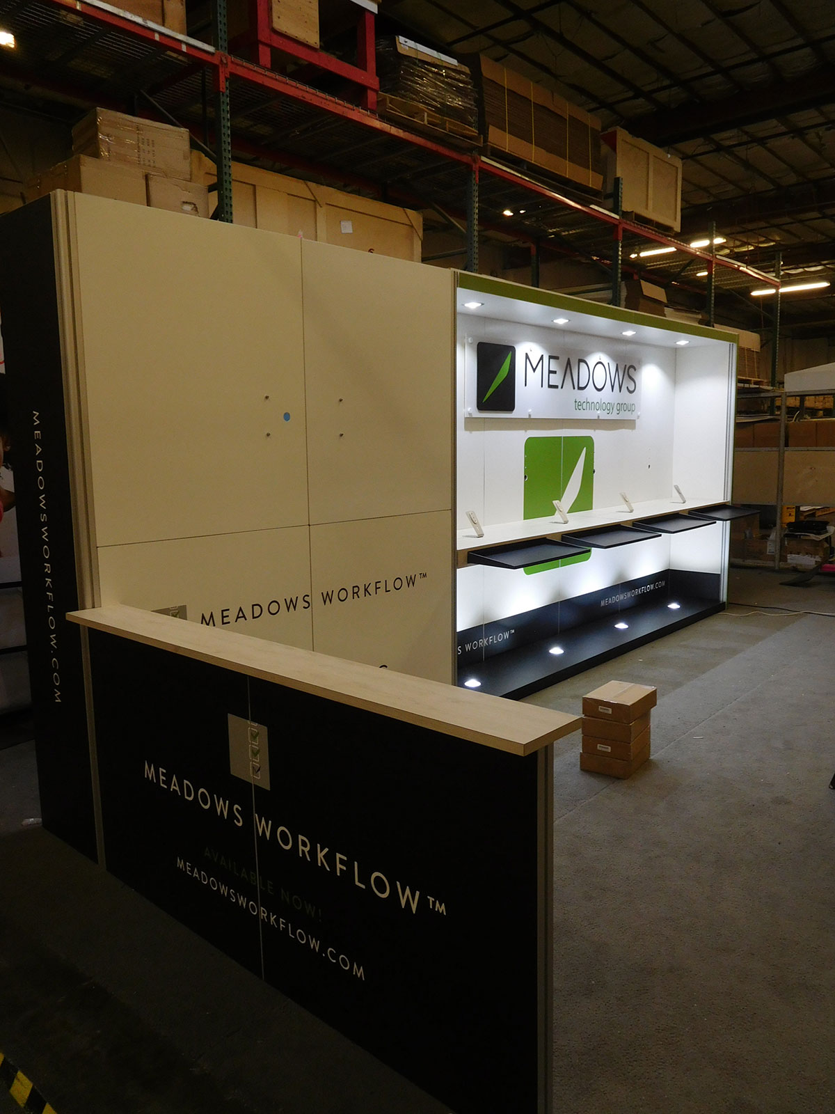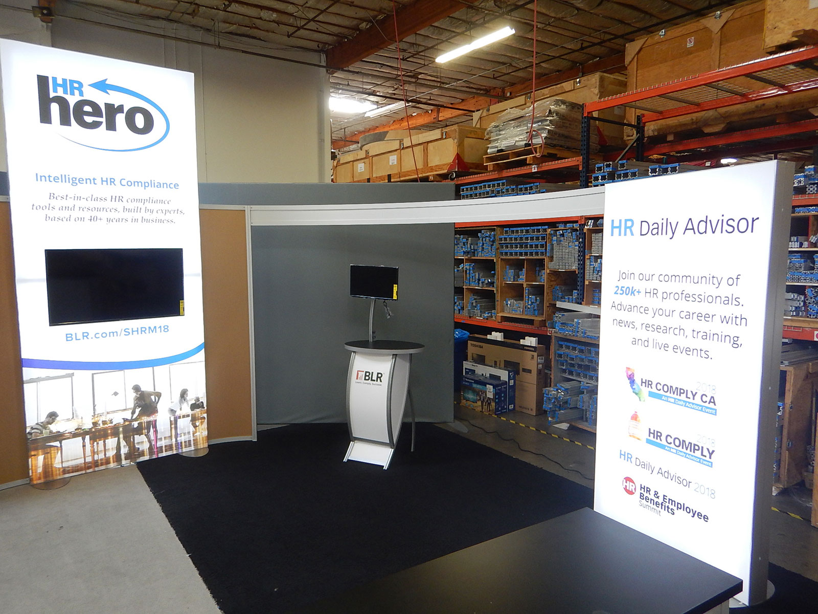 Custom Gravitee One-Step Inline Exhibit with Shelves, Conference
