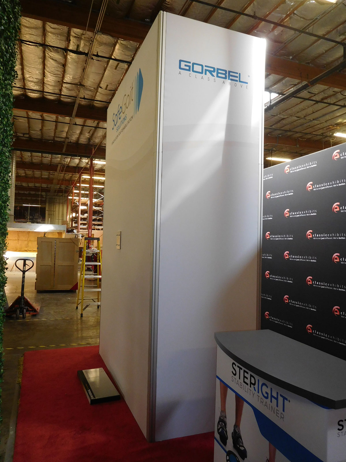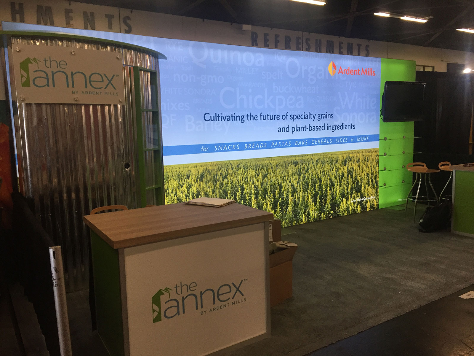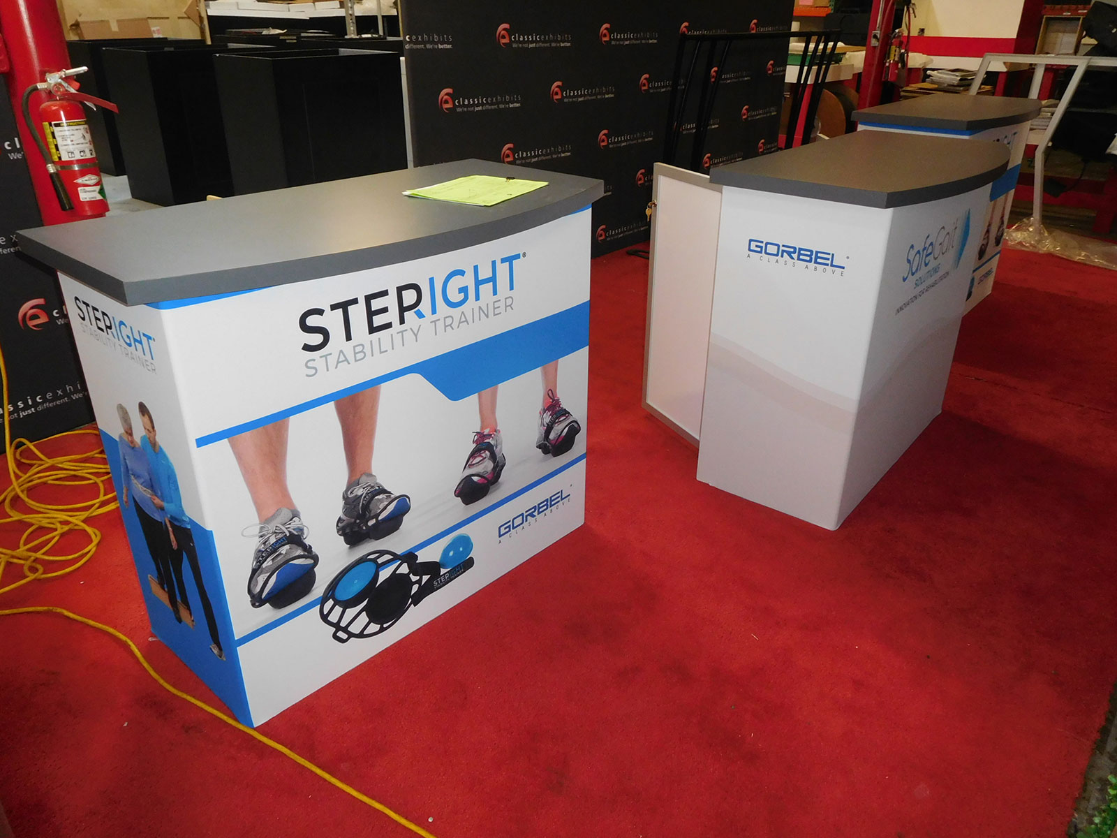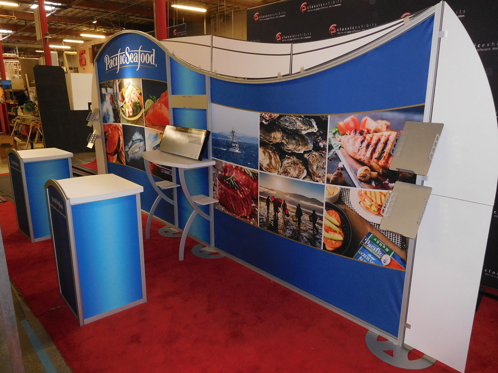 Custom Inline Exhibit with Shelves, Storage, Fabric Graphics,