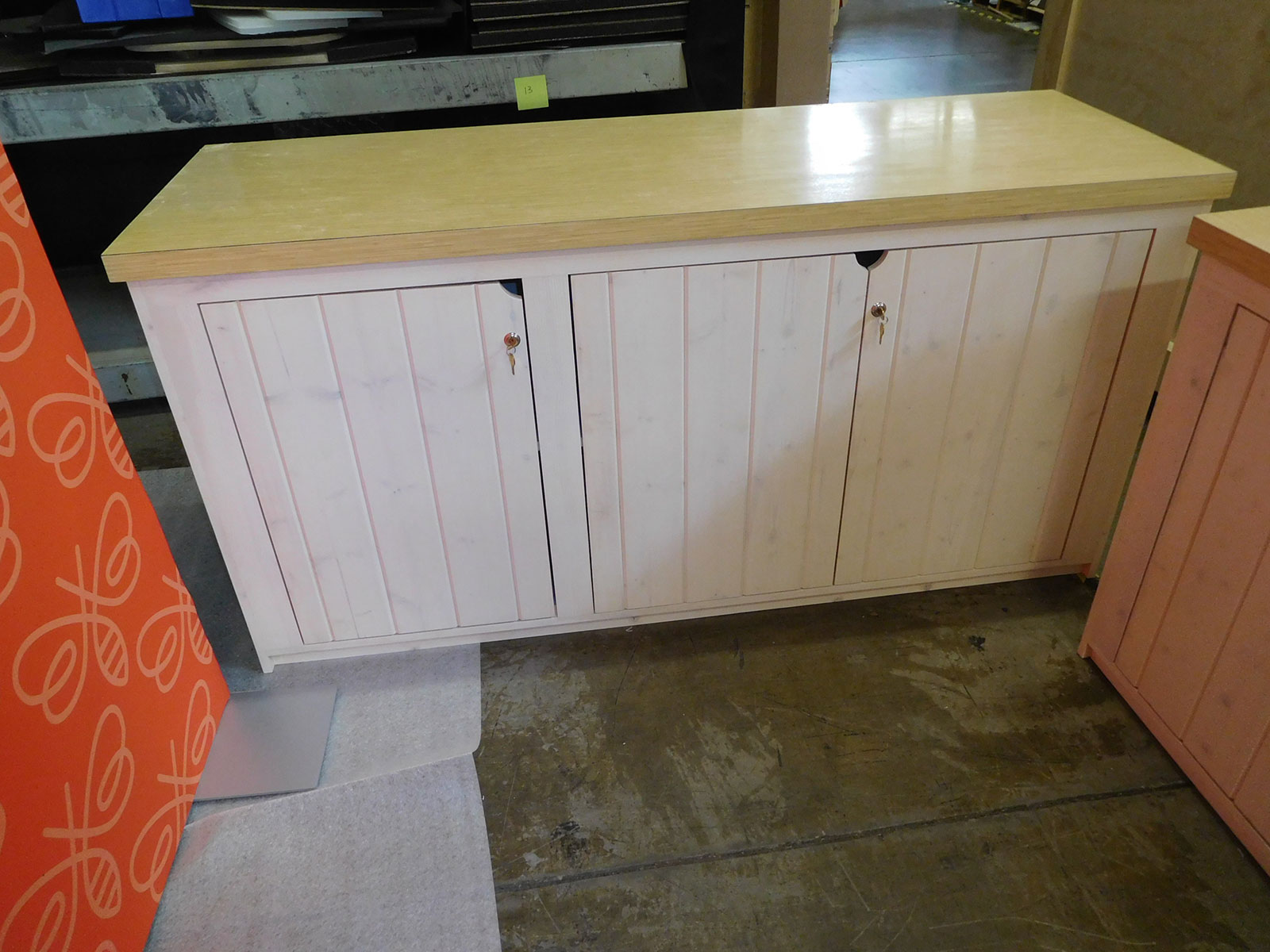 Counter with Locking Storage, Interior Shelf and Grommets for Wire
