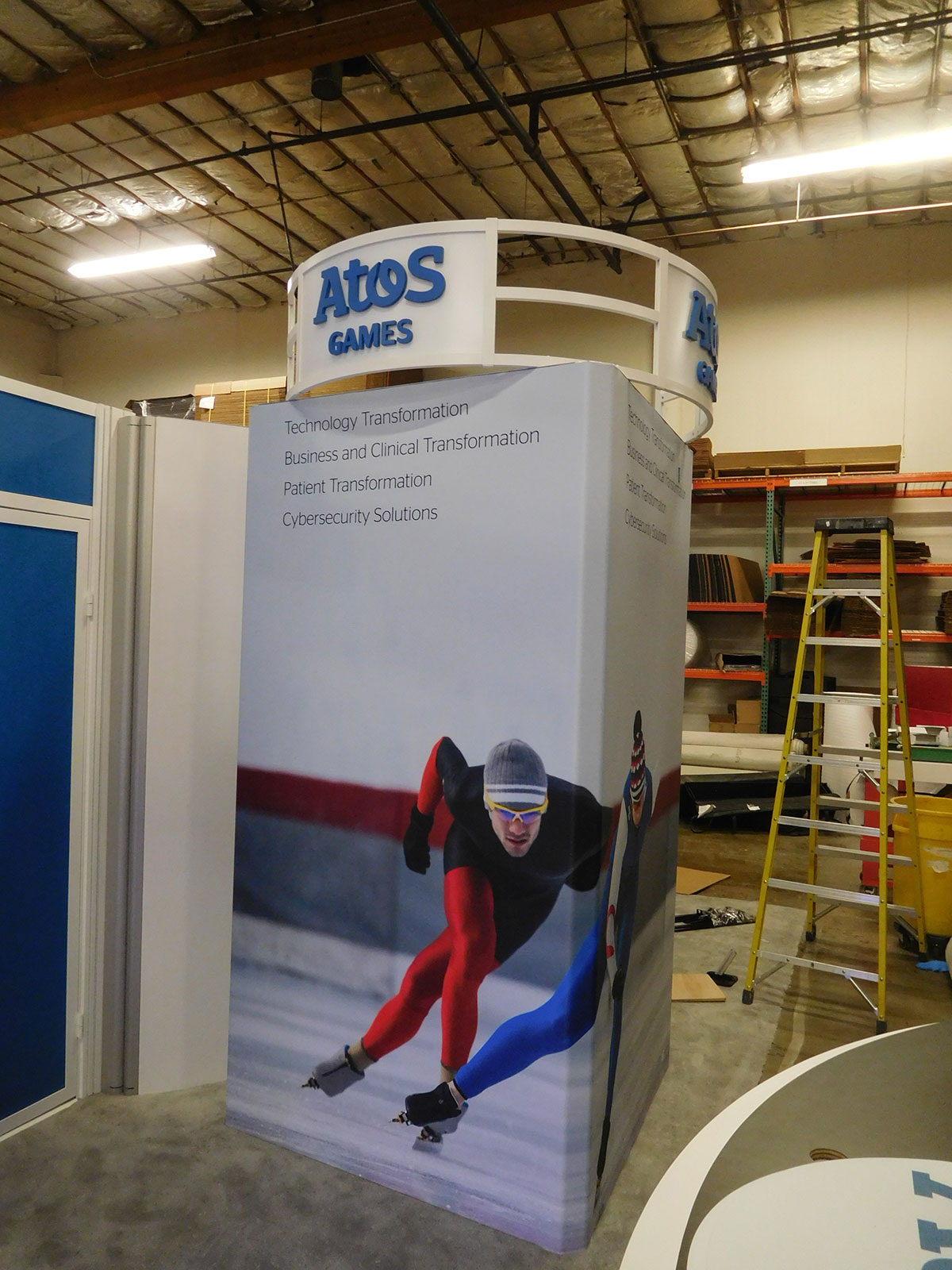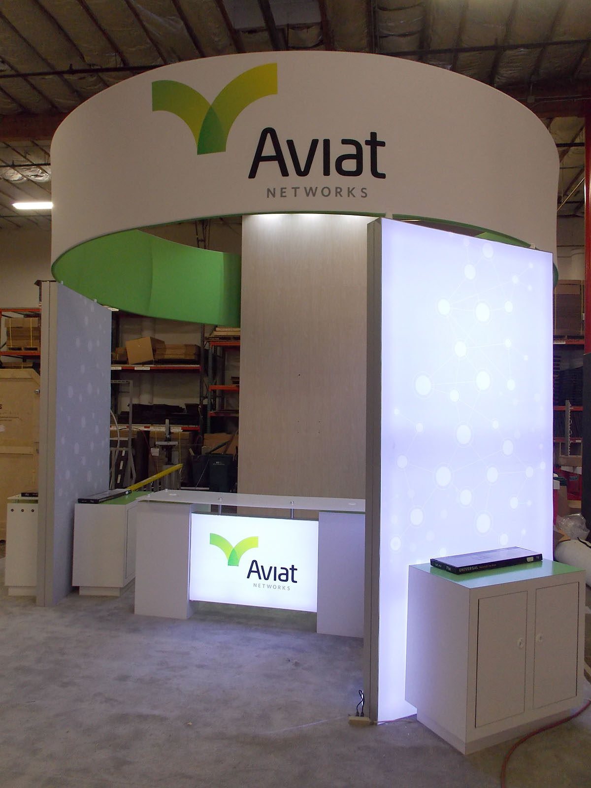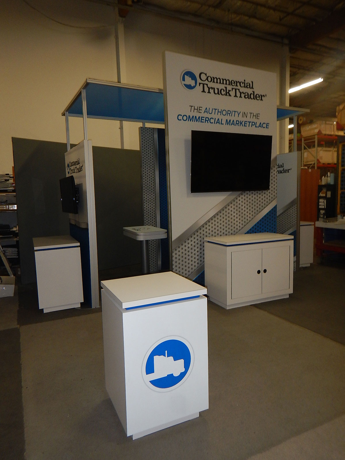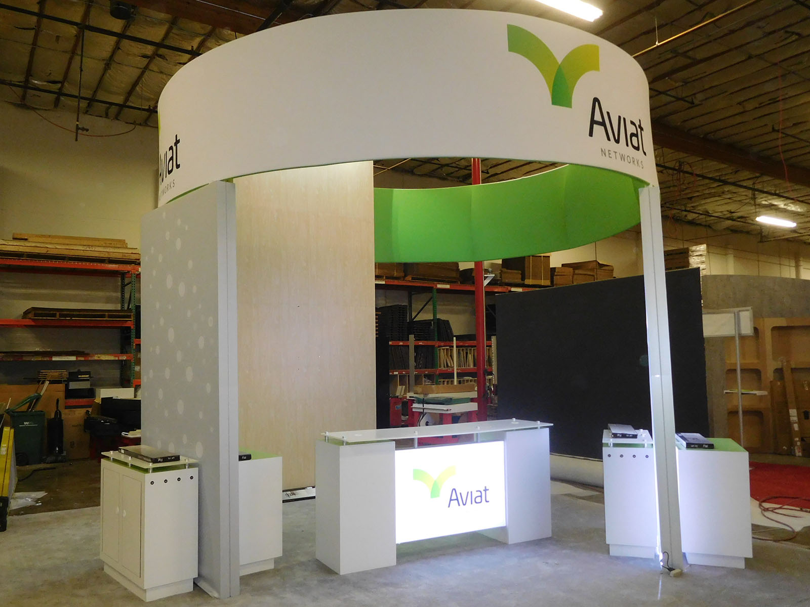 Custom Base with Storage, Ceiling, and Aero Tension Fabric Sign