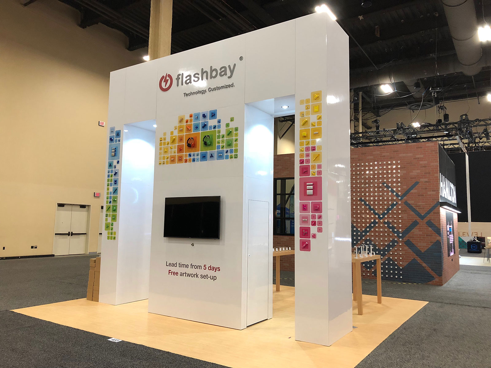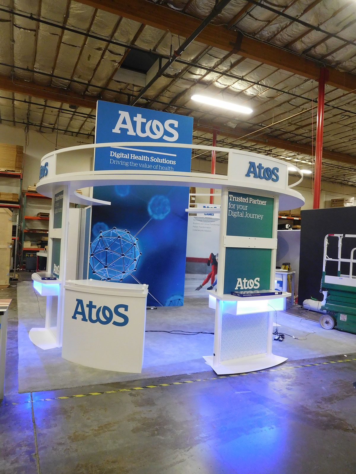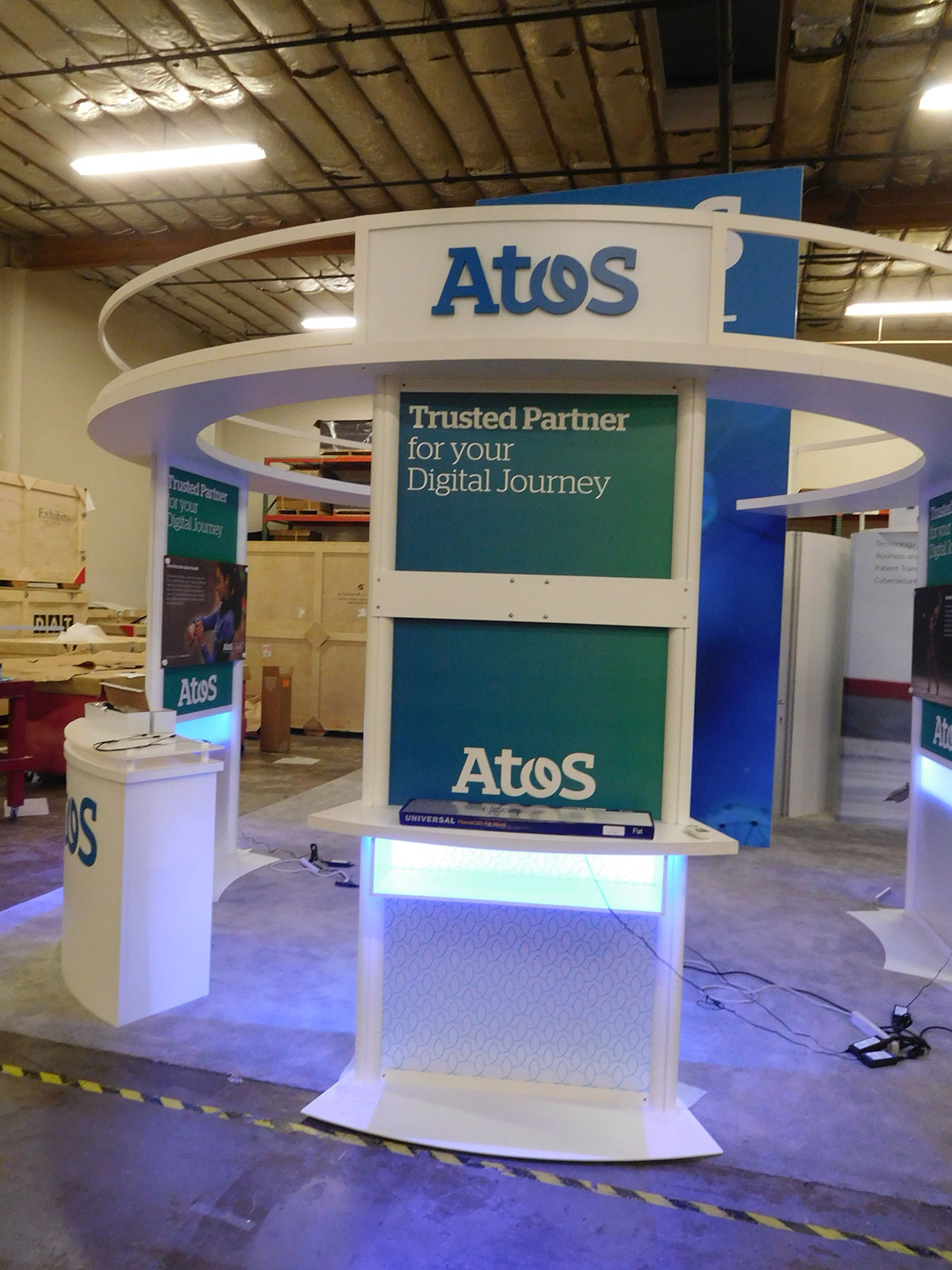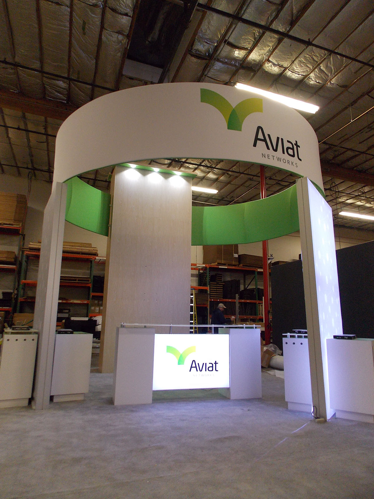 Custom Base with Storage, Ceiling, and Aero Tension Fabric Sign
