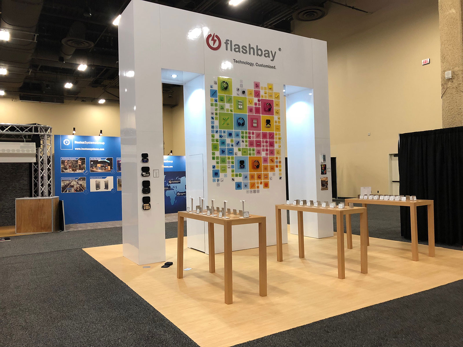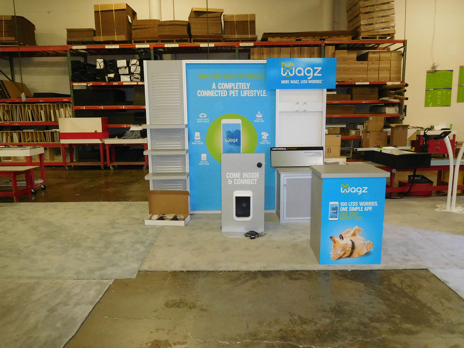 Custom eSmart Exhibit with Shelves, Slatwall, Graphics, Monitor