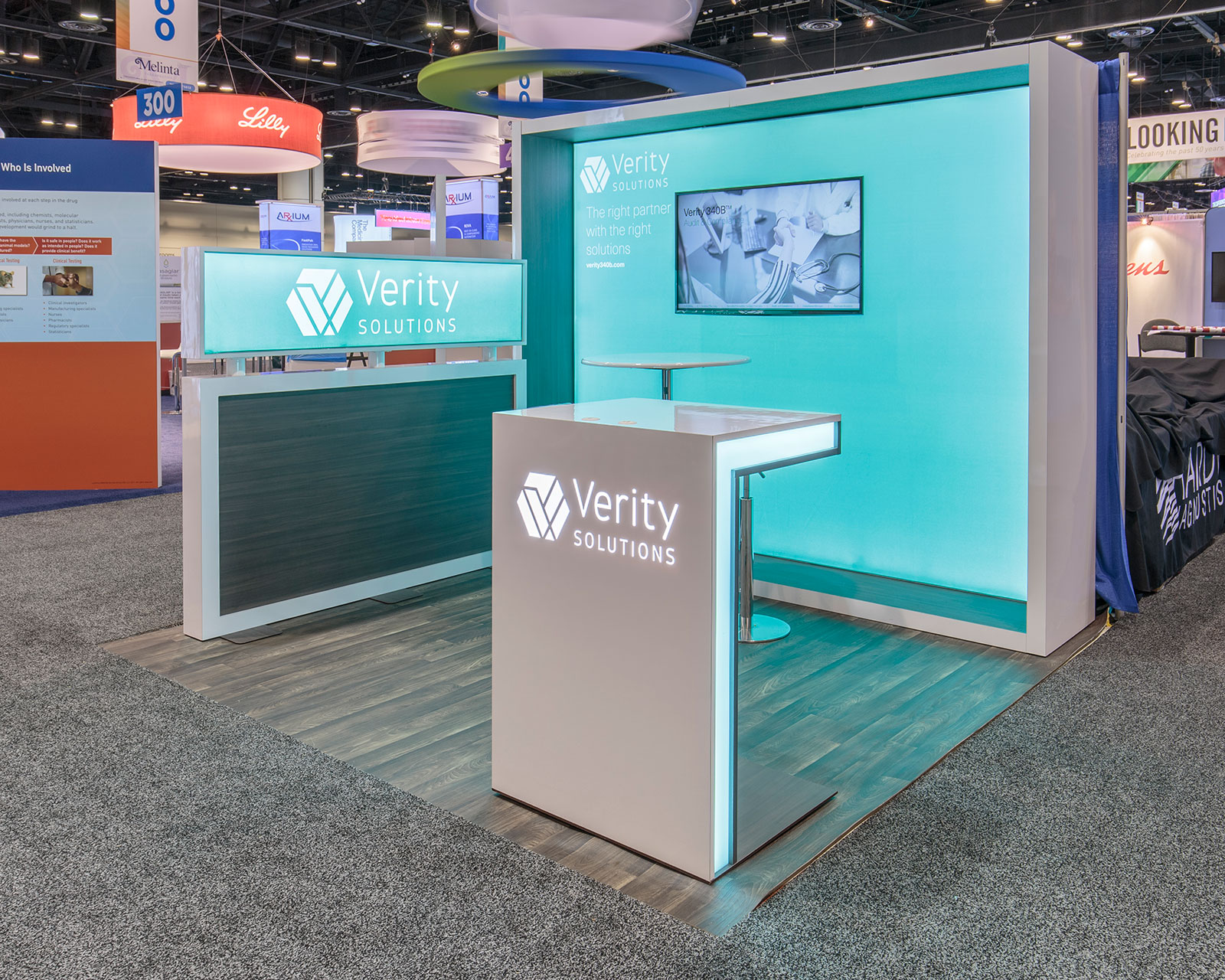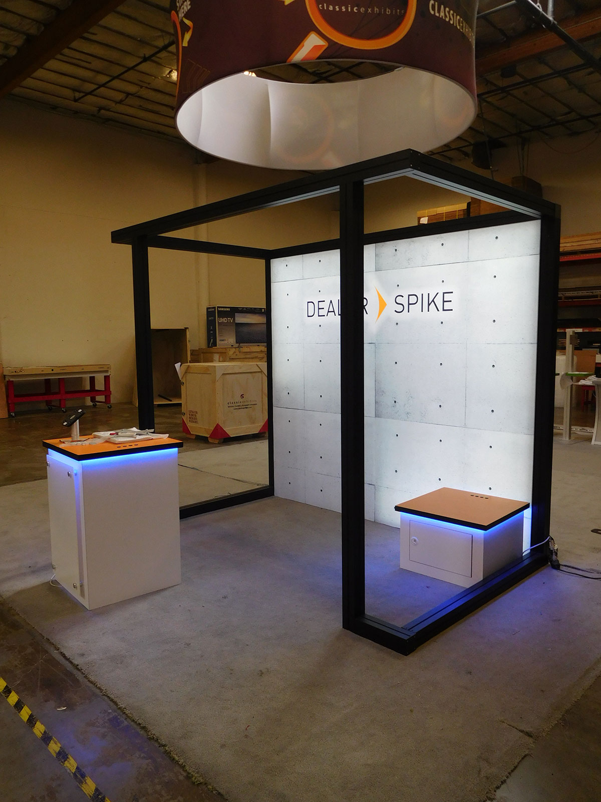 Custom Inline Exhibit with Backlighting, Monitors, and Storage