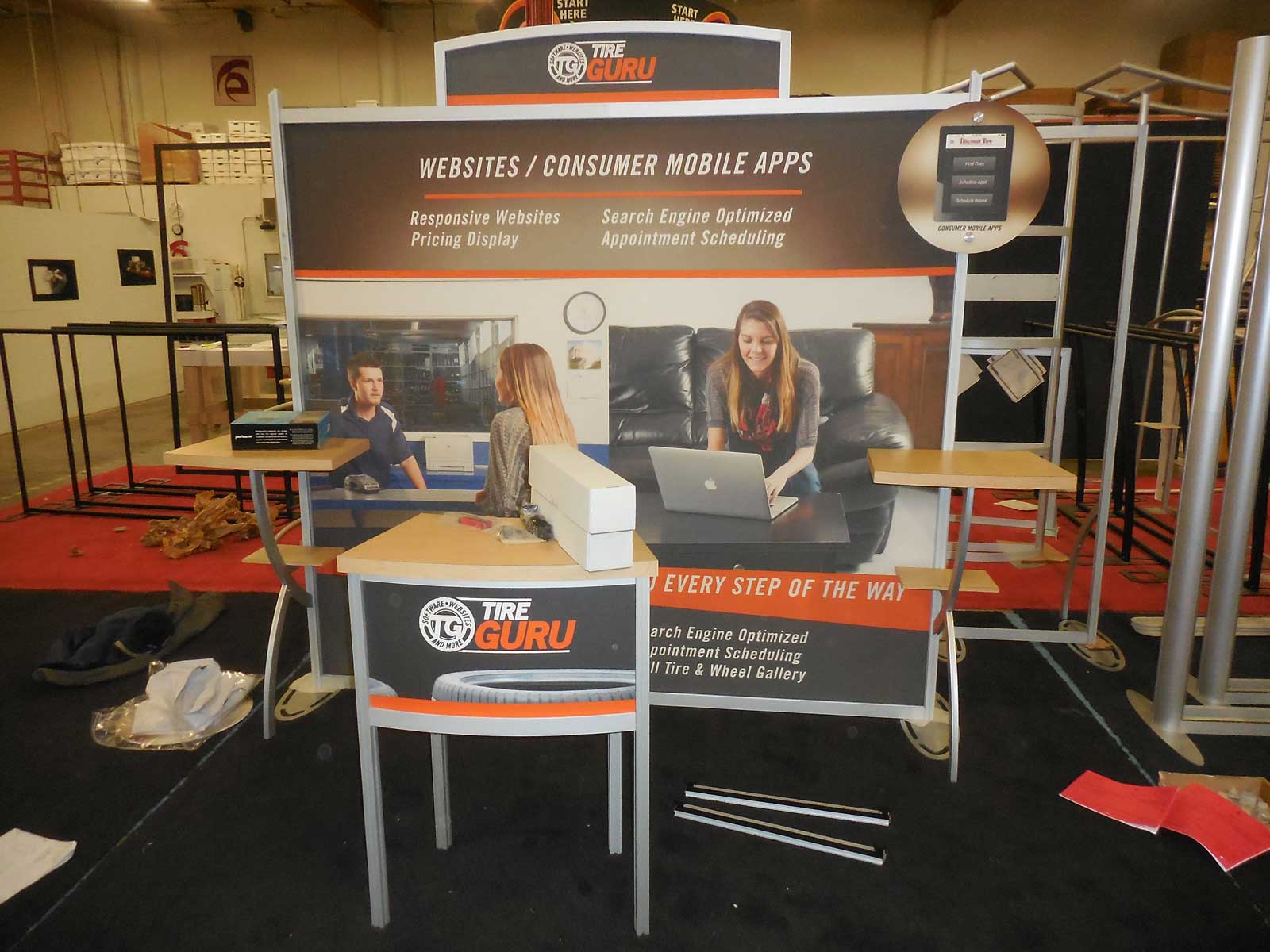 eSmart Custom Exhibit with (4) Custom Reception Counters, (3)