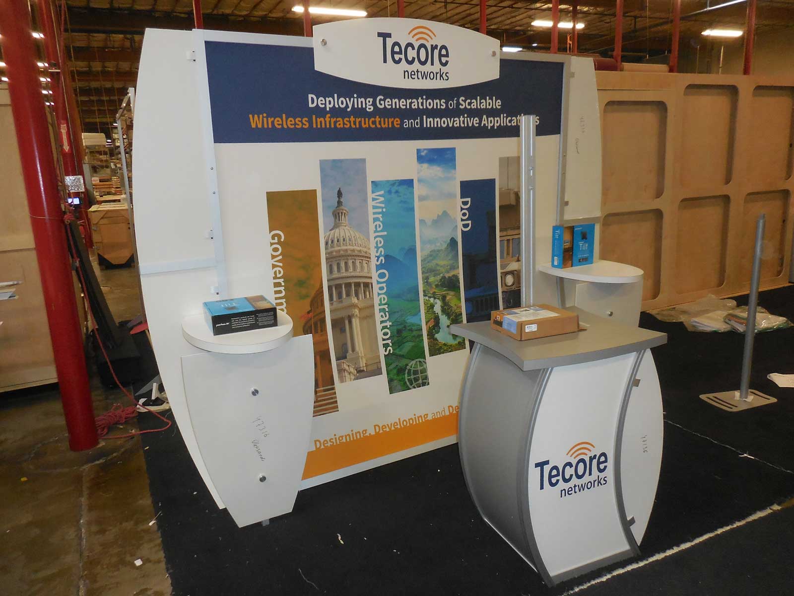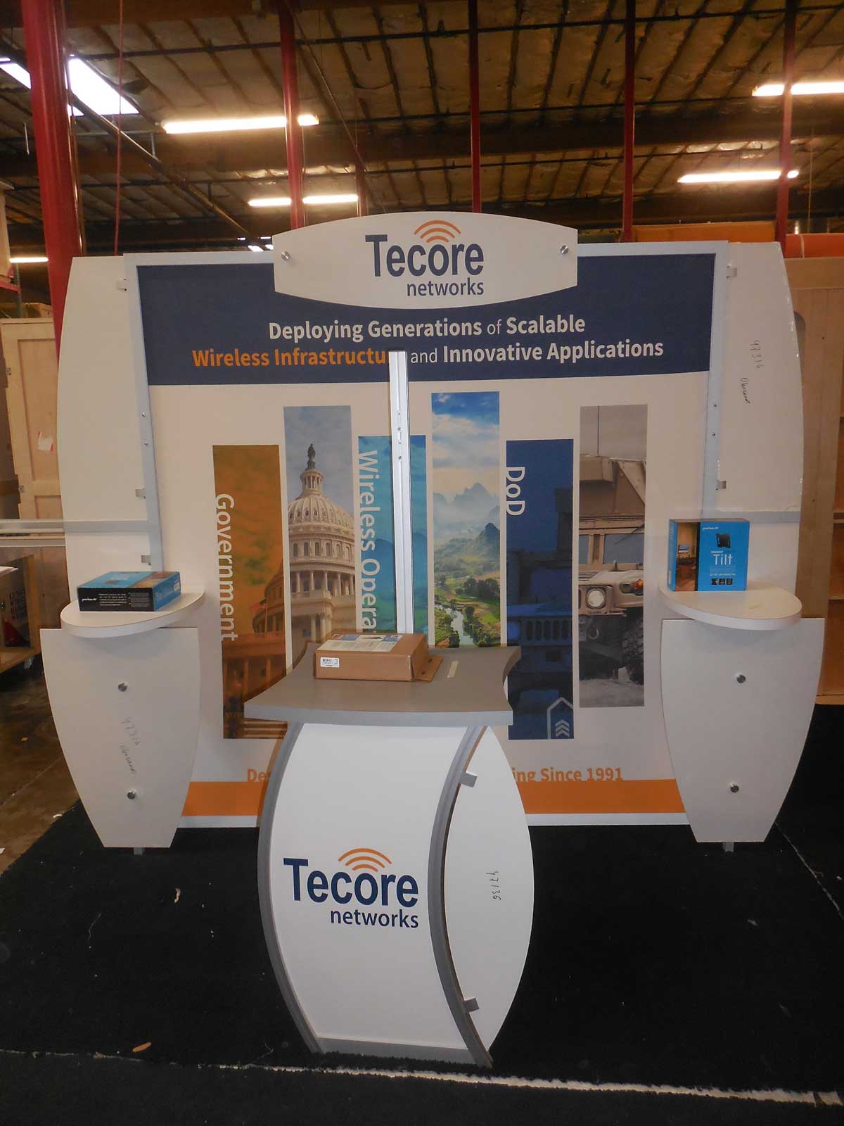 Laminated Product Shelves. Includes Tension Fabric Graphics