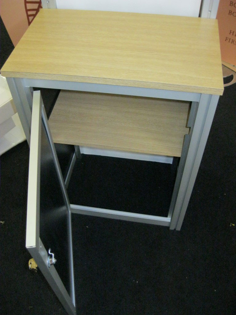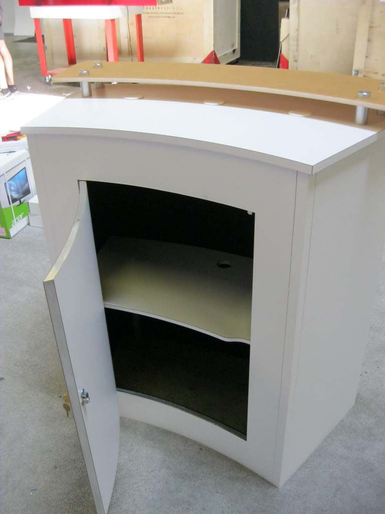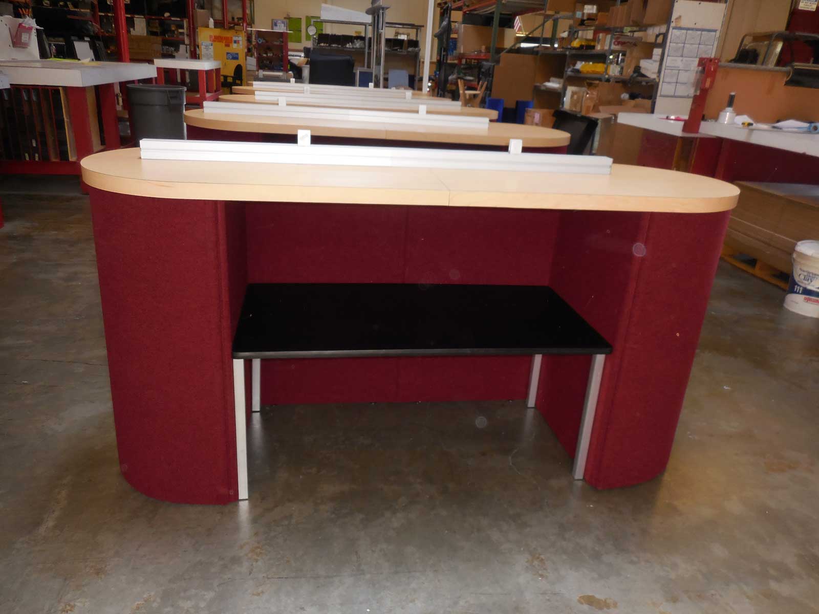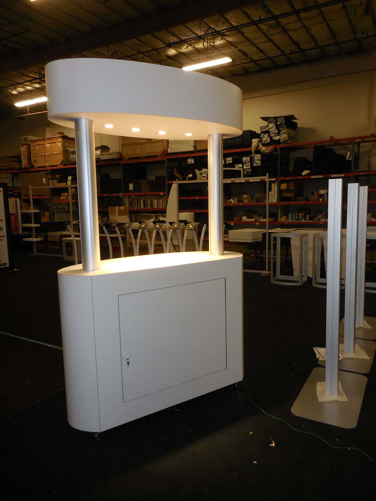 Custom Wood Kiosk with Overhead Lights, Storage, and Casters